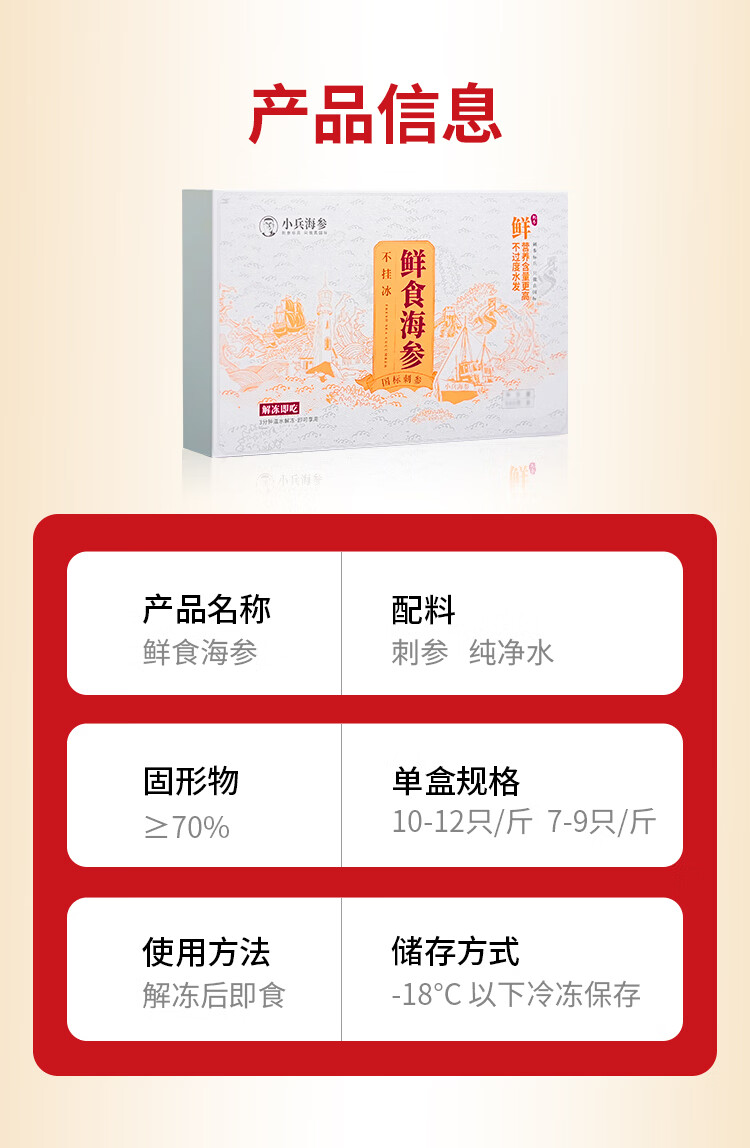 Xiaobing Sea Cucumber Fresh Ready-to-Eat Sea Cucumber Official Store Flagship Store New Year’s Gift Box Sea Cucumber Nutritious Gift for Elders 3Jin Jin equals 0.5kg (comes with ginseng and abalone juice) 7-9 pieces/Jin Jin equals 0.5kg