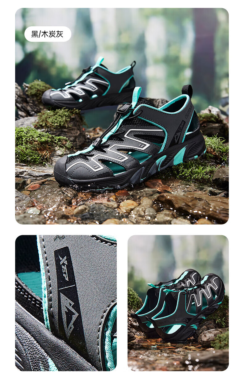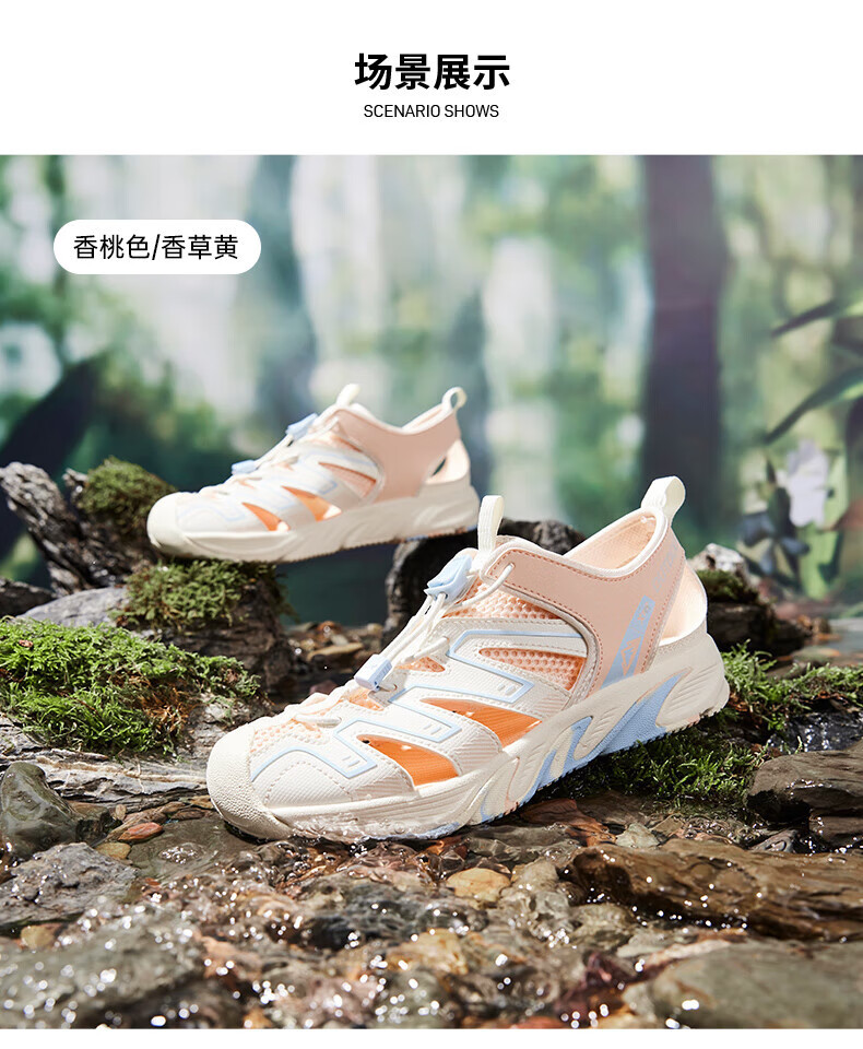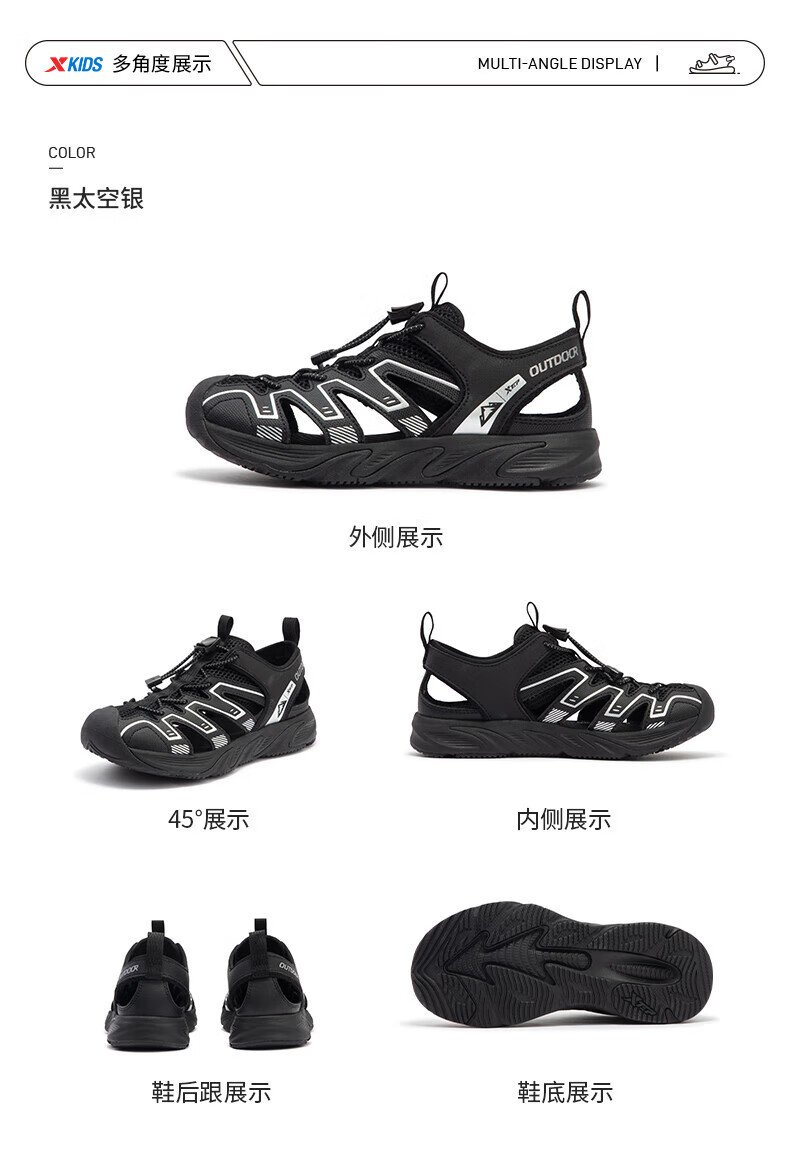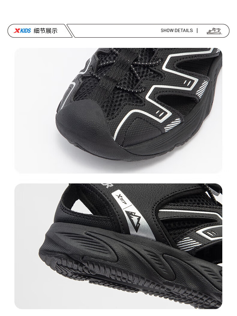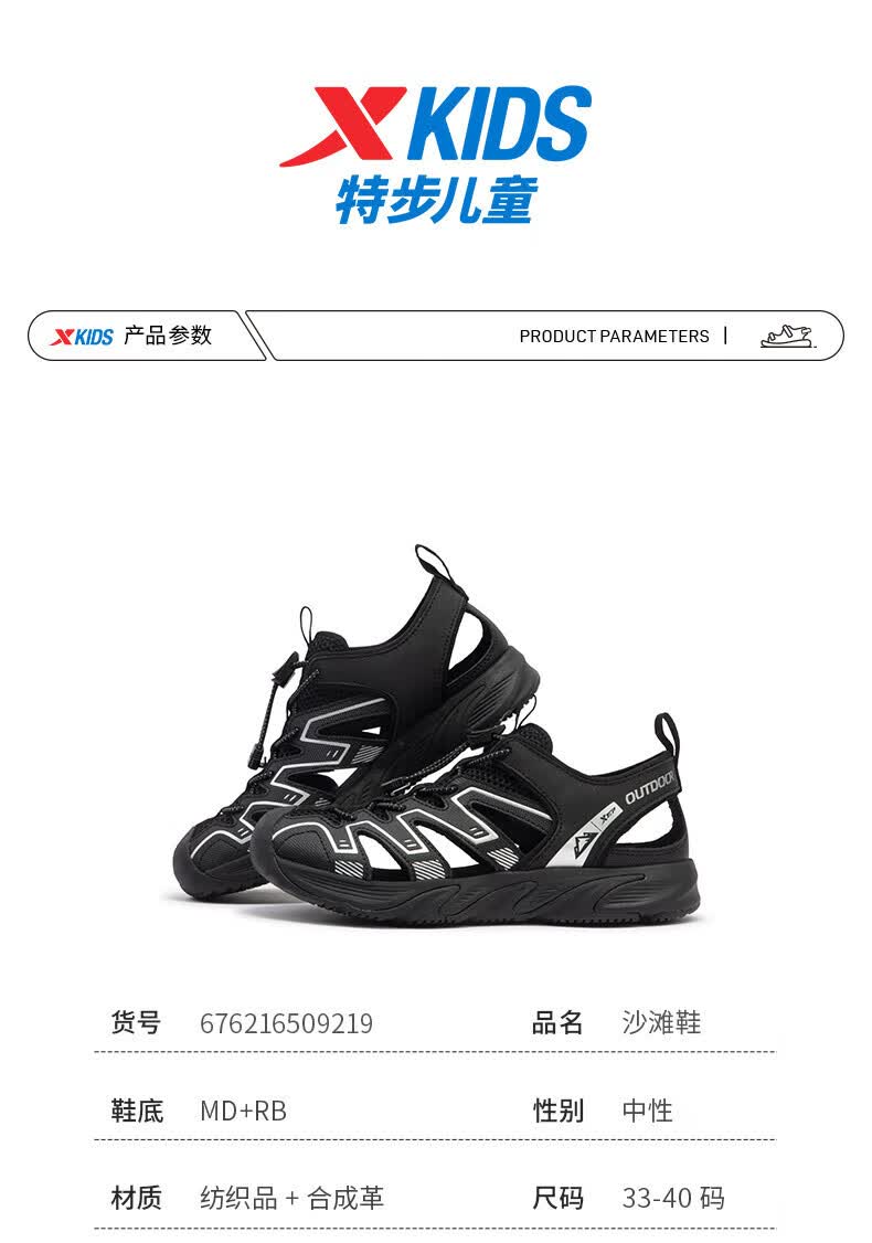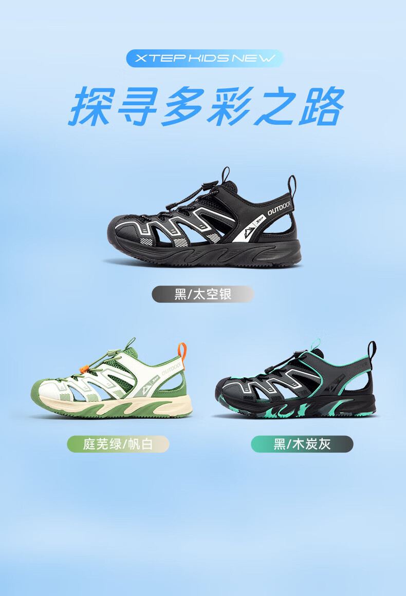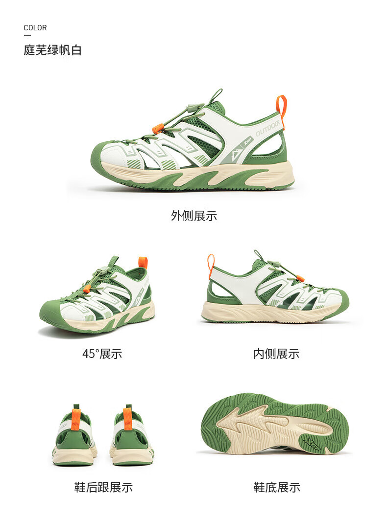 XTEP Children's Shoes 2025 Summer Mid-to-Big Children's Toe-Toe Sandals Tail Buckle Sports Beach Shoes Courtyard Green/Sail White 40