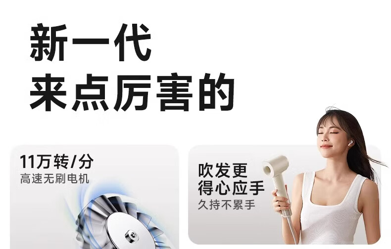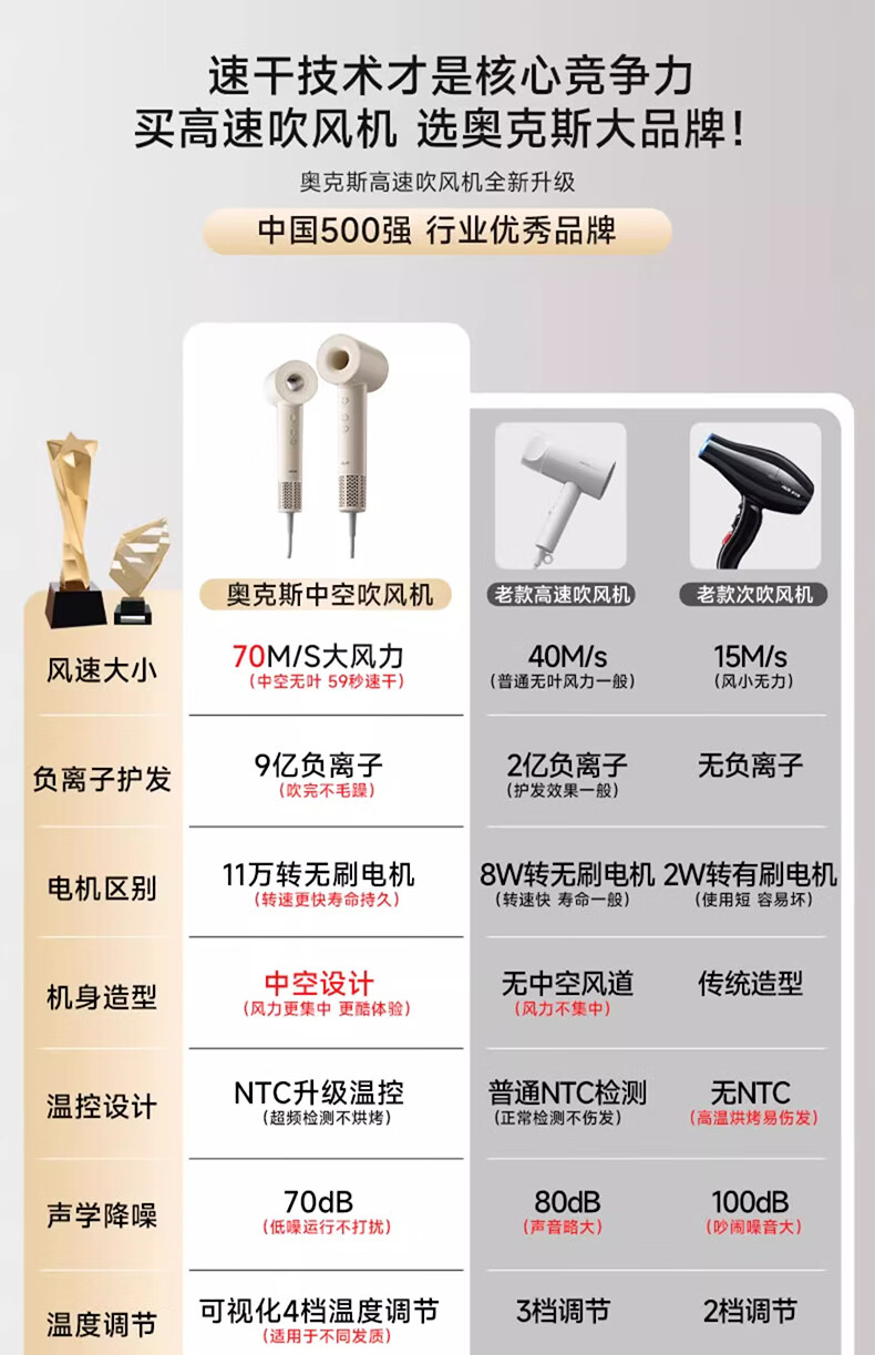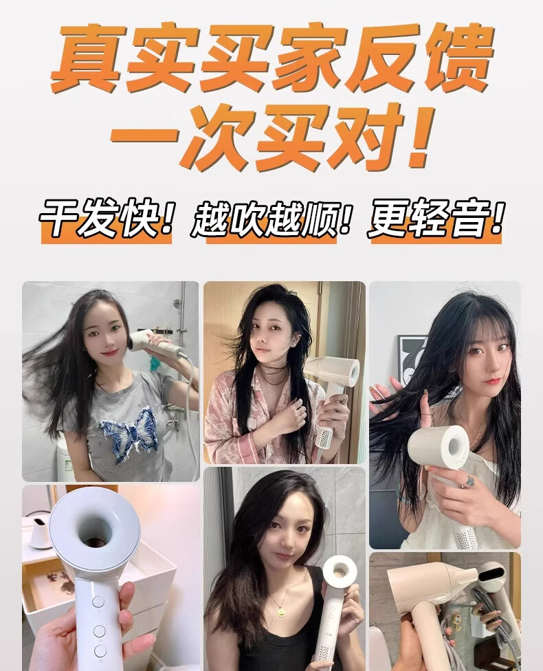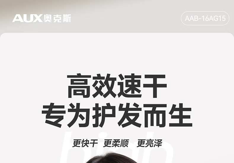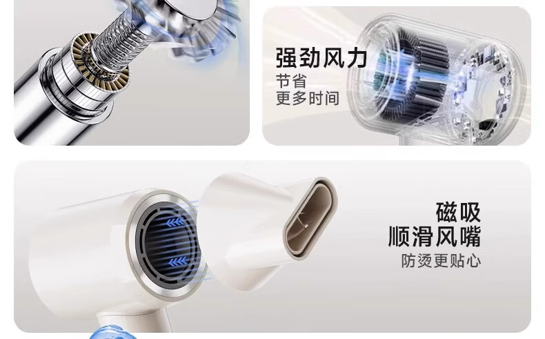 AUX high-speed hair dryer for home, silent negative ions, high power, no damage to hair, strong wind, quick drying, hollow hair dryer, portable high-end hair dryer, birthday gift for girlfriend, white, 900 million moisturizing negative ions + super fast drying + 6 blowing modes
