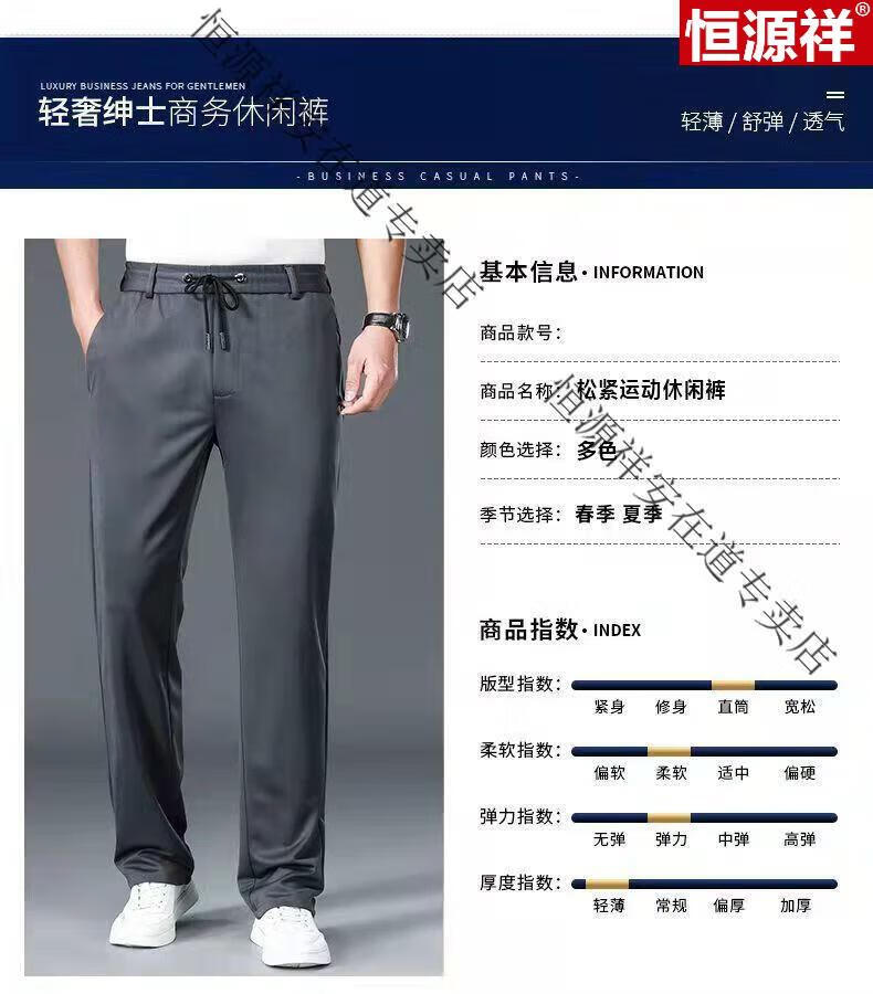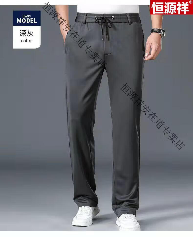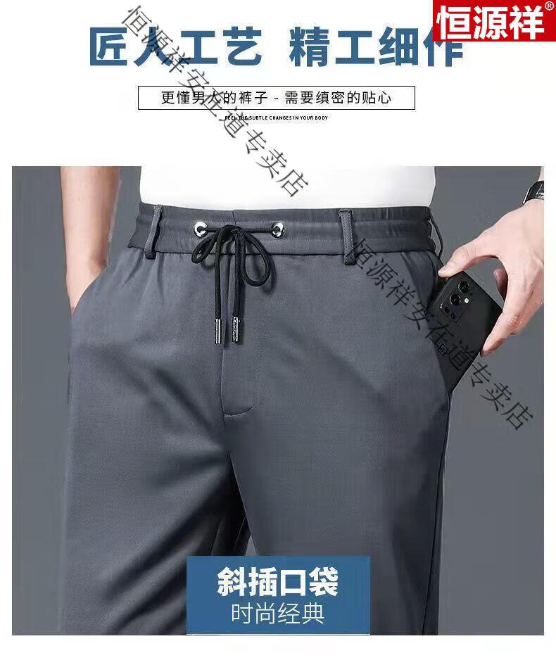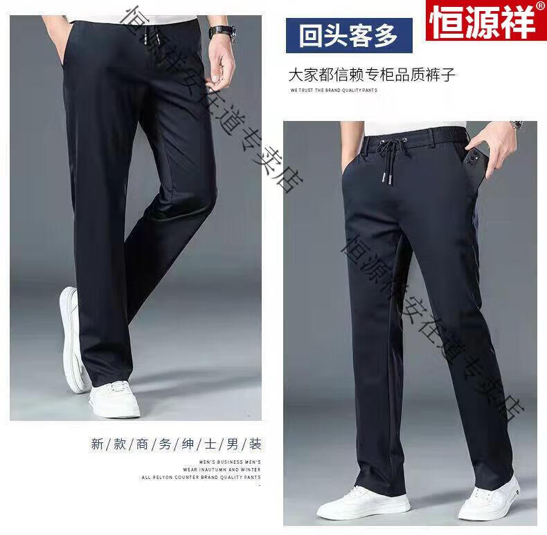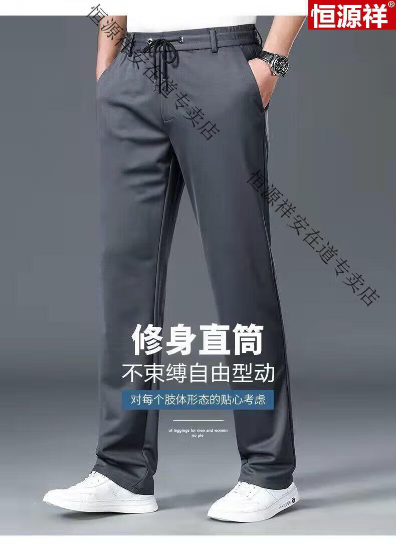 Hengyuanxiang (HYX) autumn new high elastic elastic waist sports pants straight loose men's pants versatile middle-aged business casual pants 6881 black spring and autumn thick stretch XL 120~140Jin Jin equals 0.5 kg