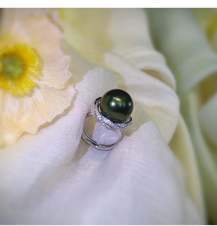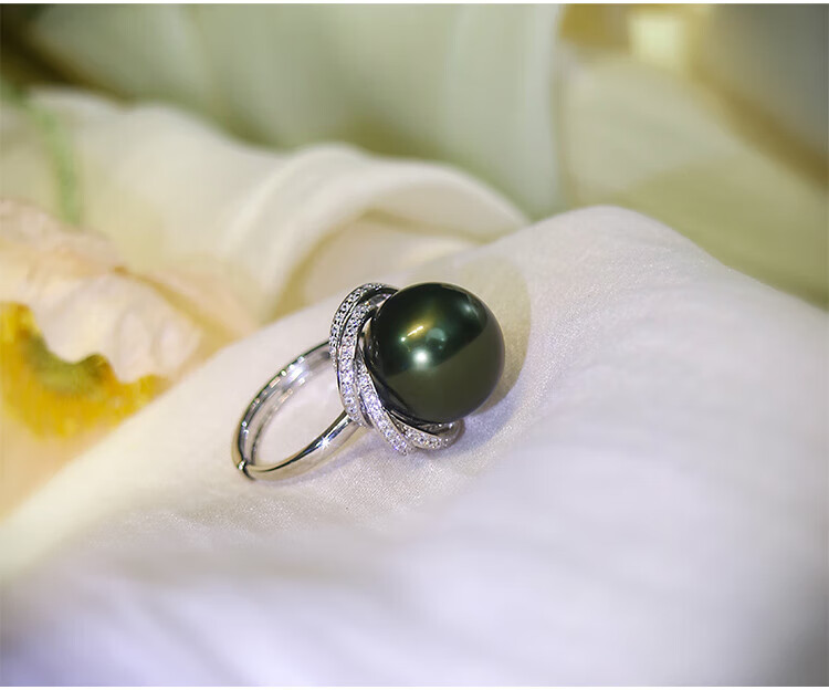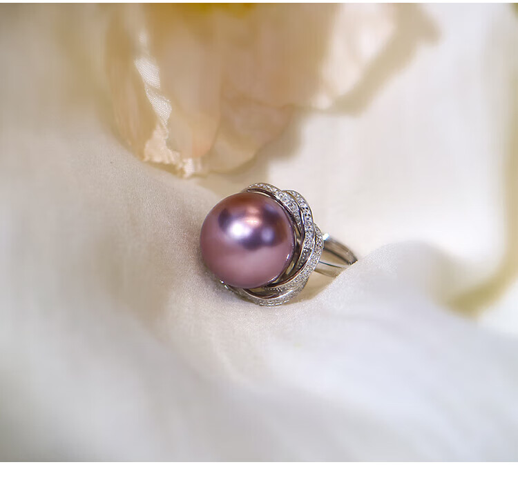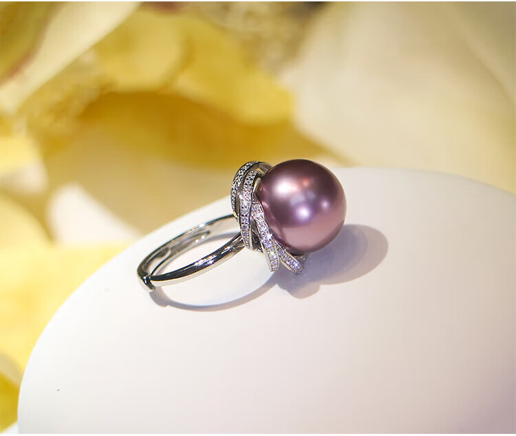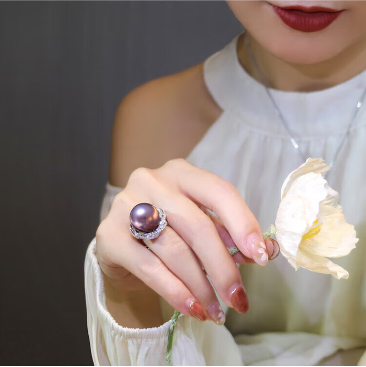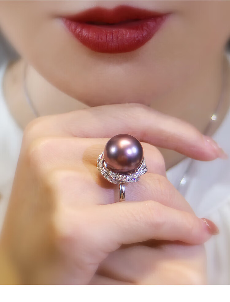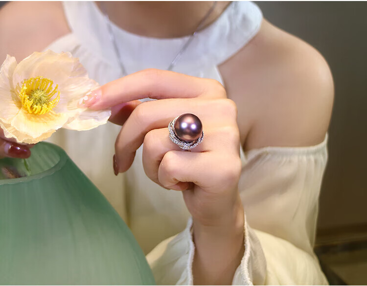 Ji Ge deep demon purple mother-of-pearl ring peacock green black pearl ring silver classic demon purple pearl ring live mouth adjustable size 14-14mm