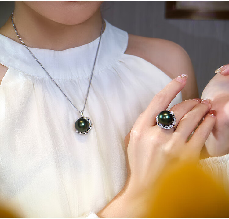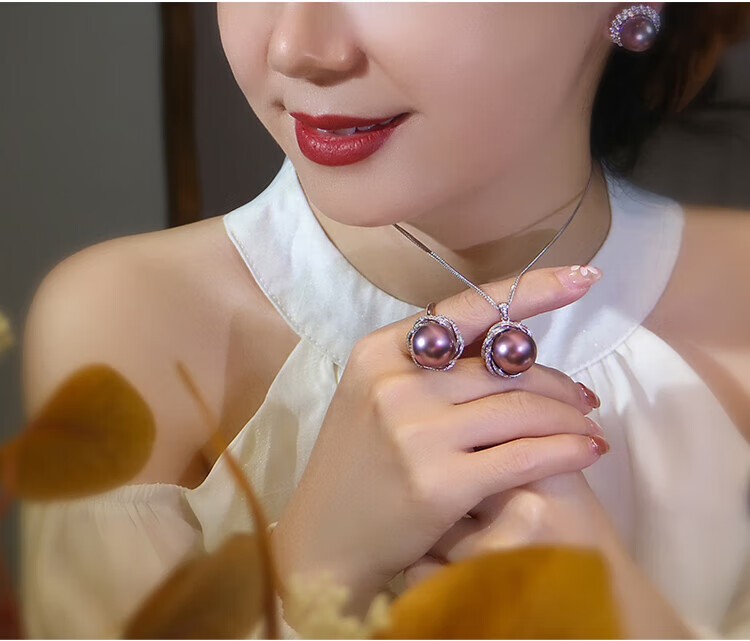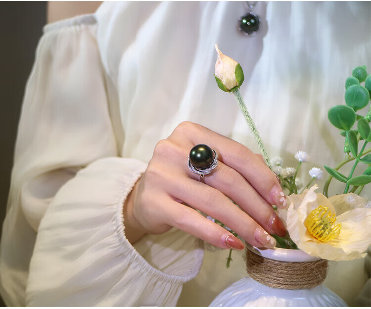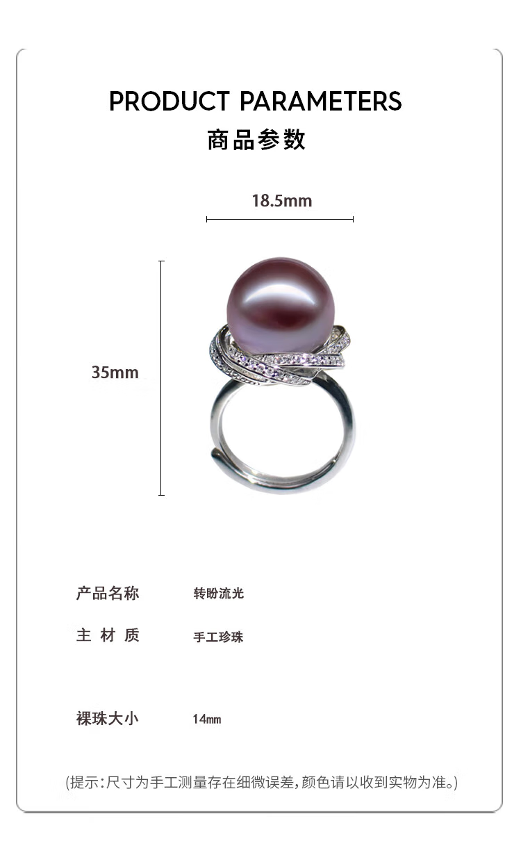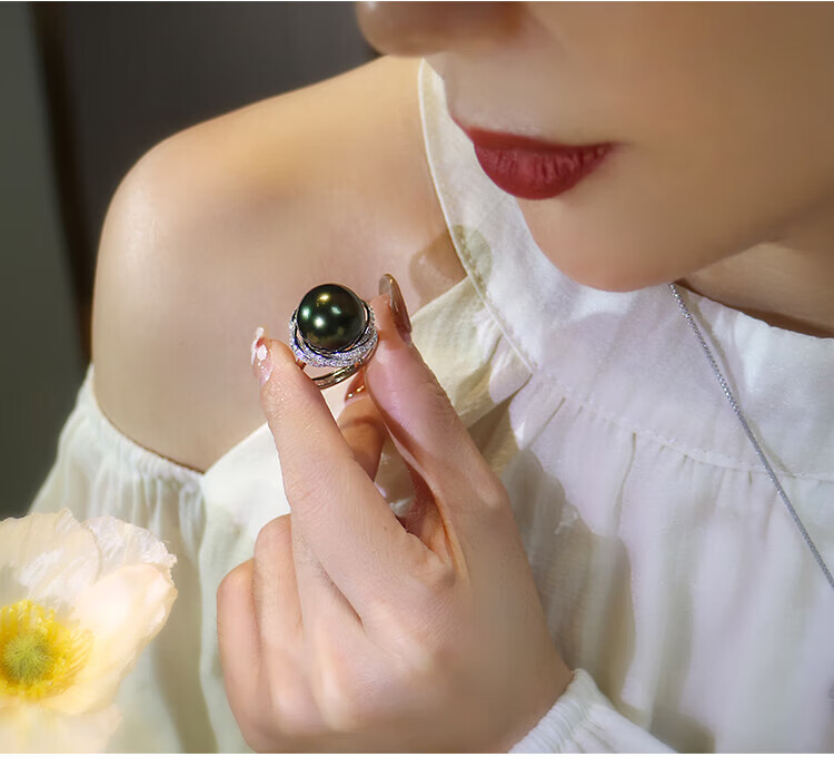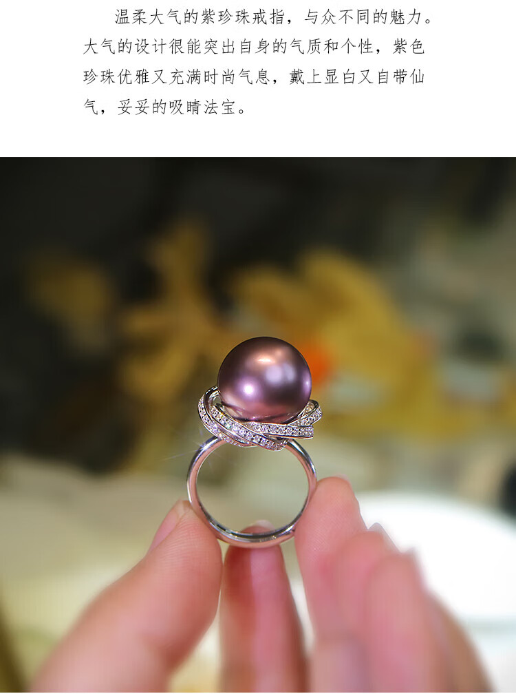 Ji Ge deep demon purple mother-of-pearl ring peacock green black pearl ring silver classic demon purple pearl ring live mouth adjustable size 14-14mm