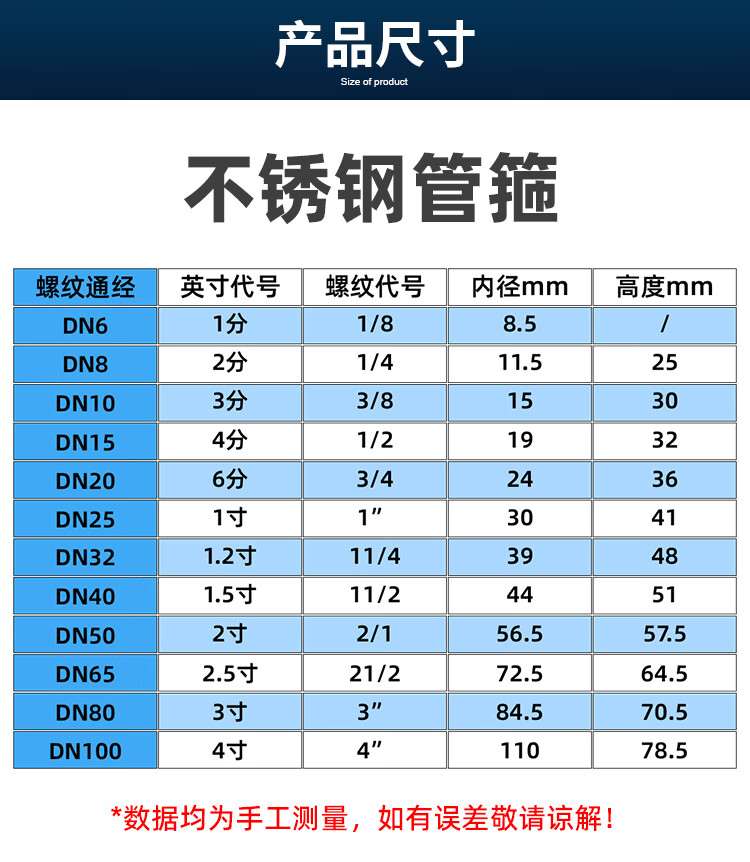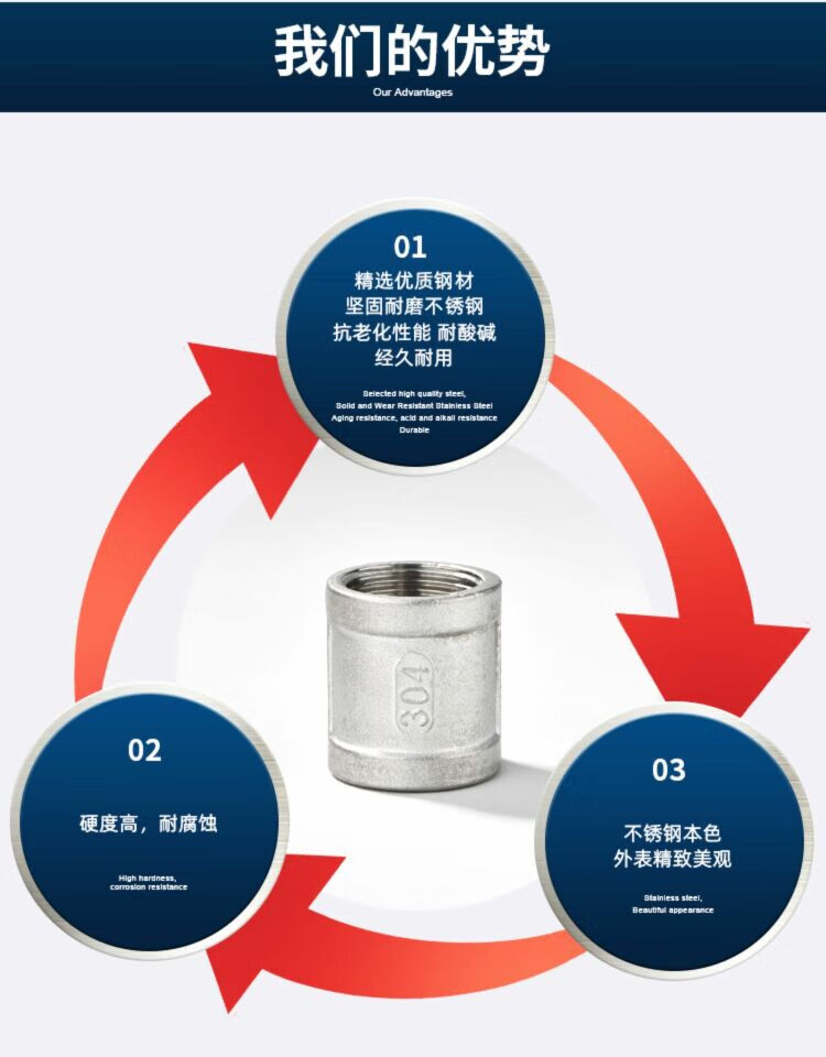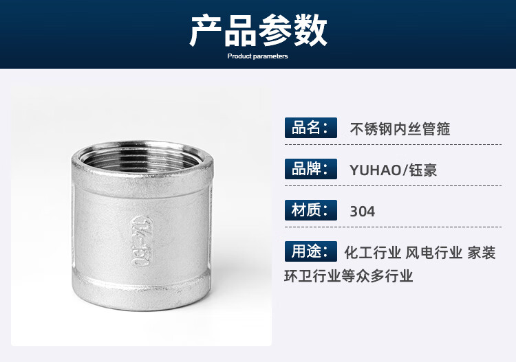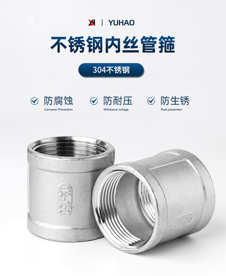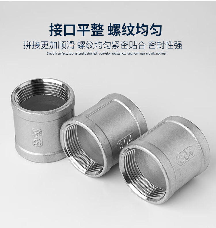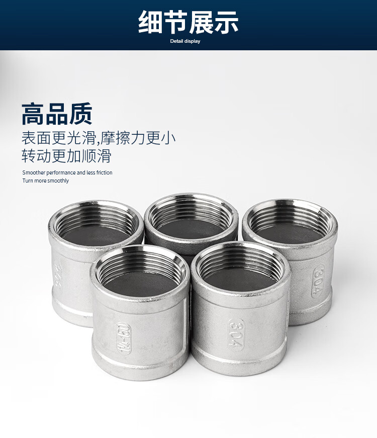 304 stainless steel inner wire pipe hoop plumbing direct accessories inner water pipe straight through double inner wire joint 4 minutes 6 minutes 1 inch 304DN15=4 points=1/2