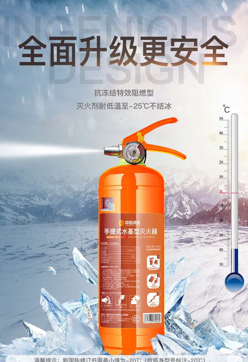 Subzero antifreeze water-based fire extinguisher certified portable water agent store home equipment set orange