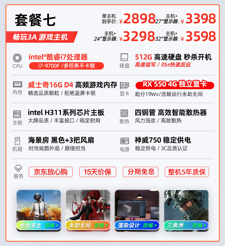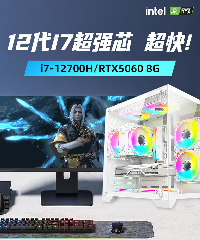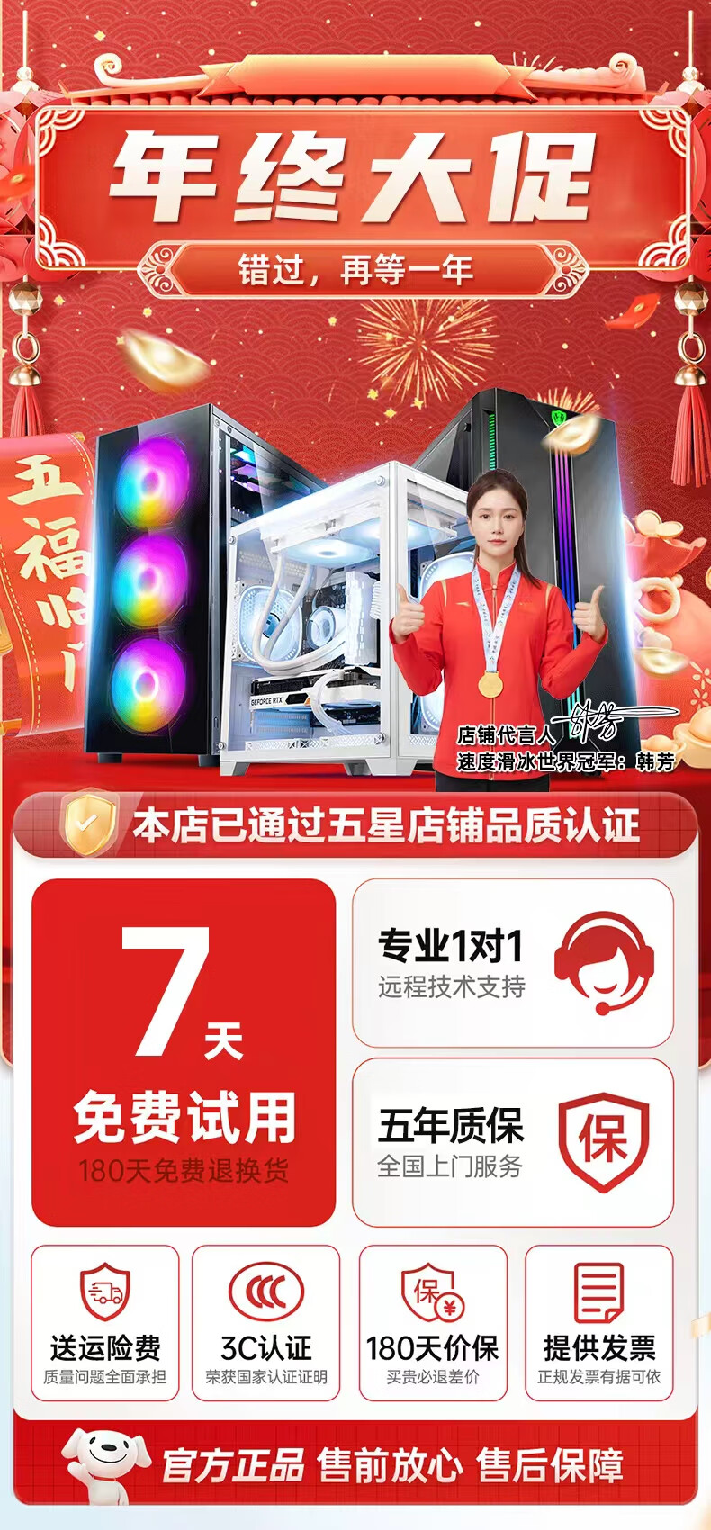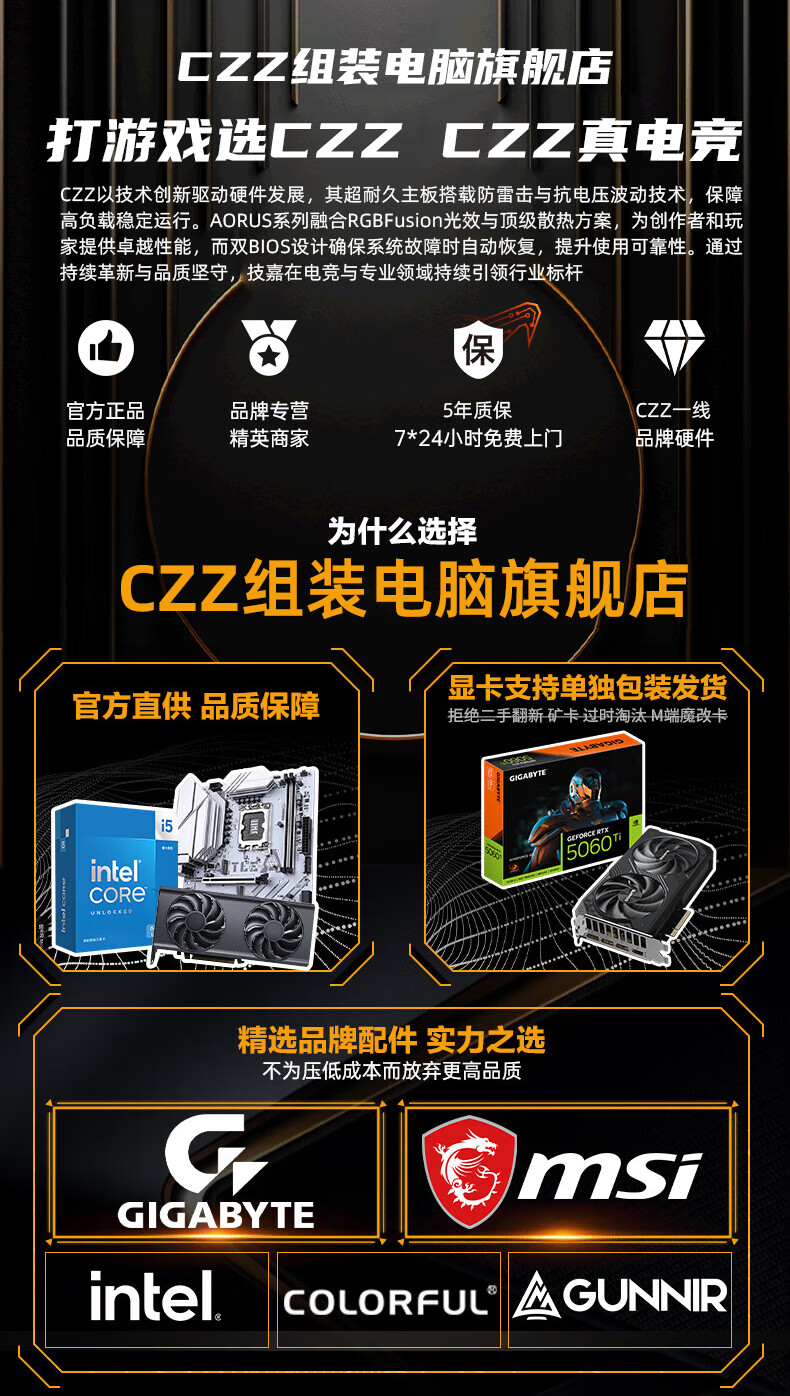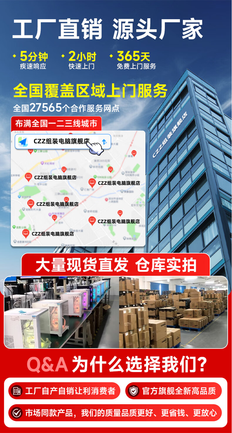 CZZ Intel i5 Core i7 twelve-core RTX5060/5050 independent graphics office host computer desktop live broadcast design rendering complete machine e-sports assembly game host set of seven i7-9700F/RX550 smooth chicken game host