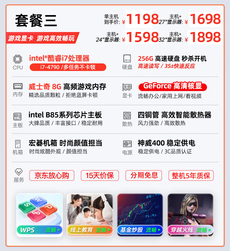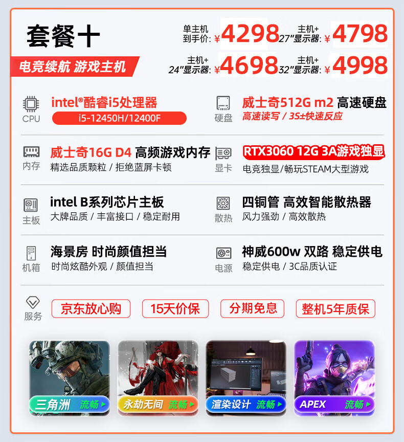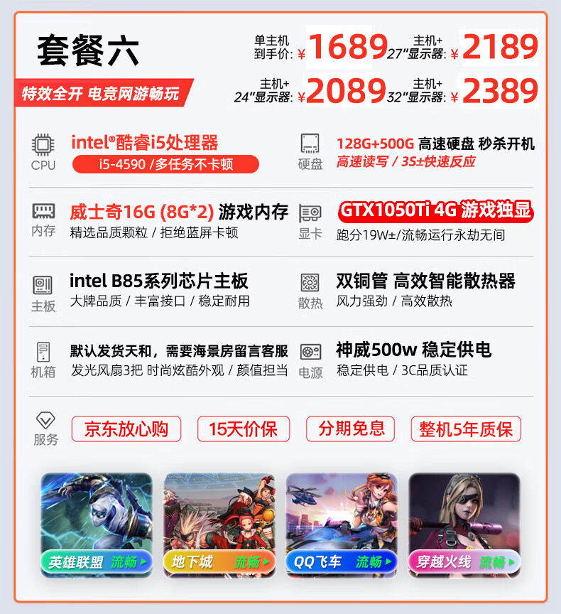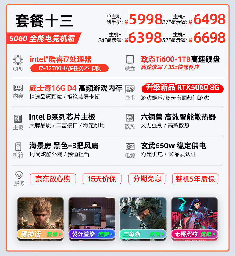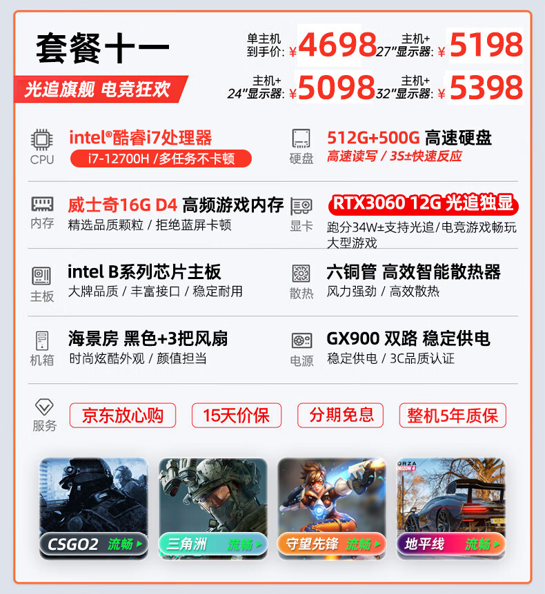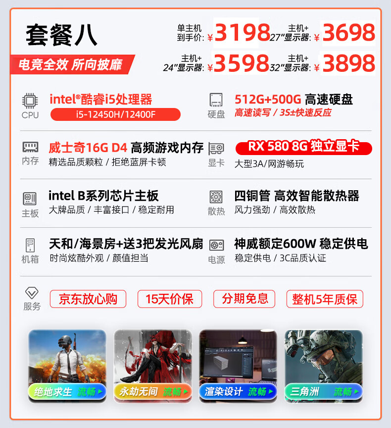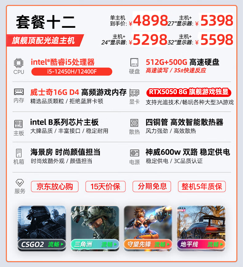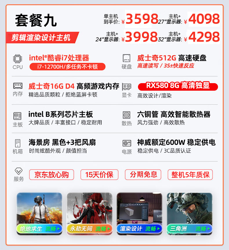 CZZ Intel i5 Core i7 twelve-core RTX5060/5050 independent graphics office host computer desktop live broadcast design rendering complete machine e-sports assembly game host set of seven i7-9700F/RX550 smooth chicken game host