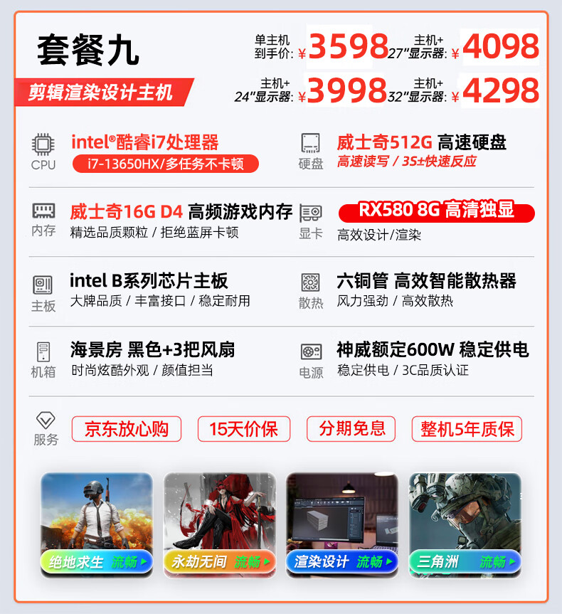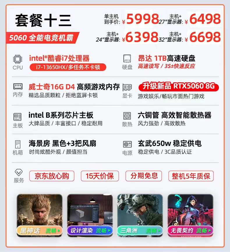 CZZ Intel i5 Core i7 twelve-core RTX5060/5050 independent graphics office host computer desktop live broadcast design rendering complete machine e-sports assembly game console 10-i7-12700H/3060 12G design rendering host + 24-inch high-brush monitor