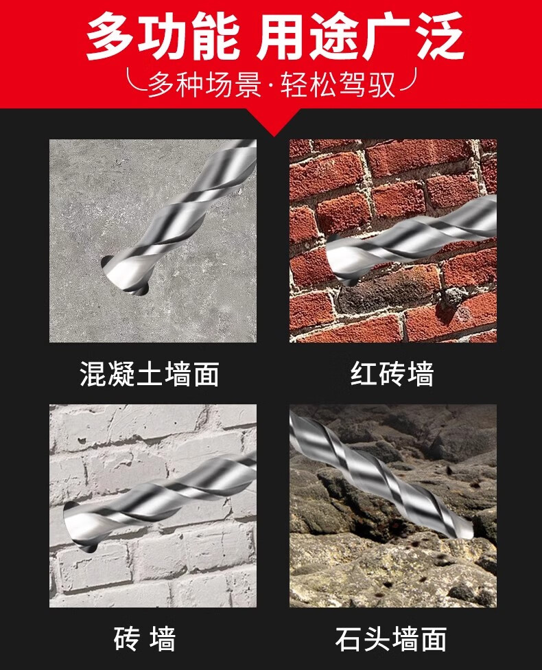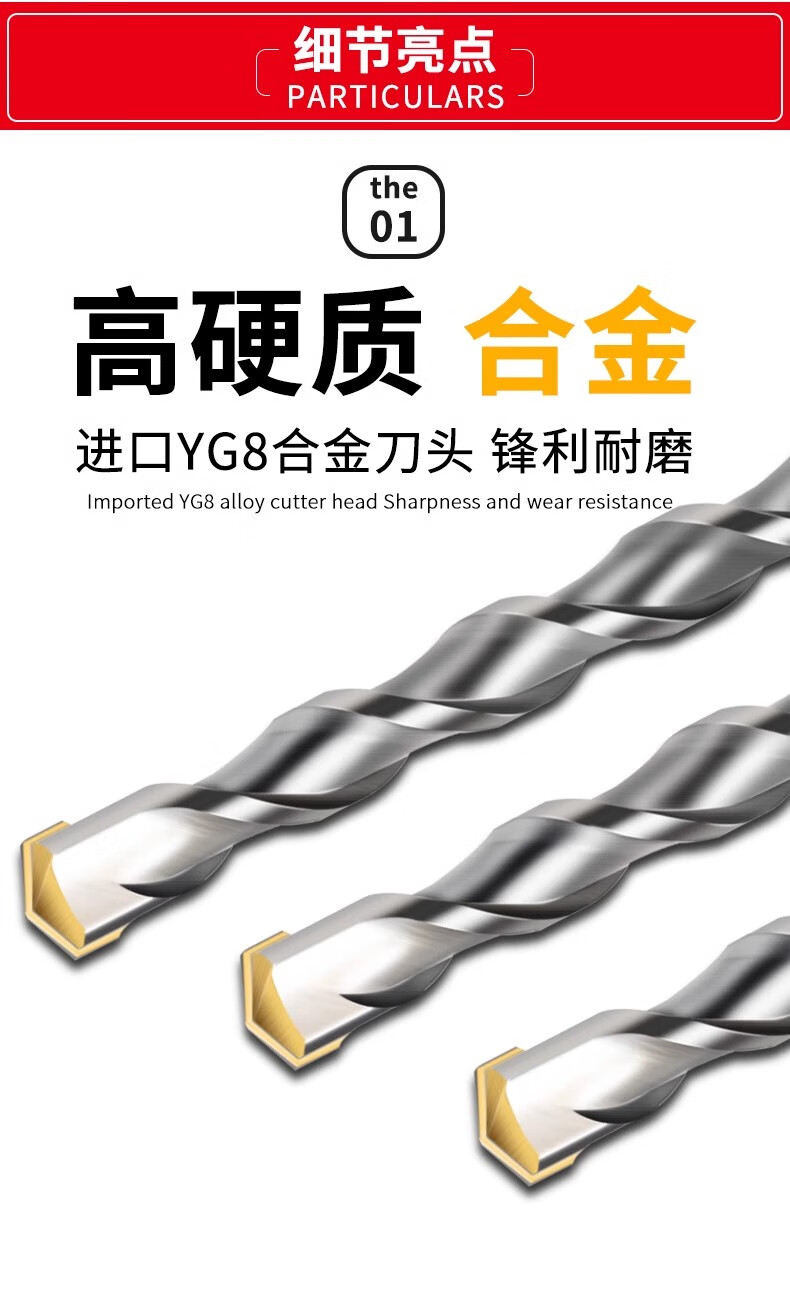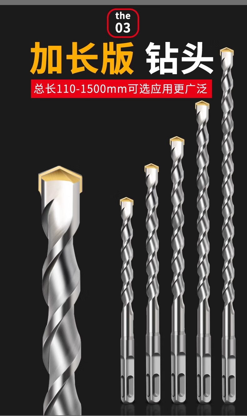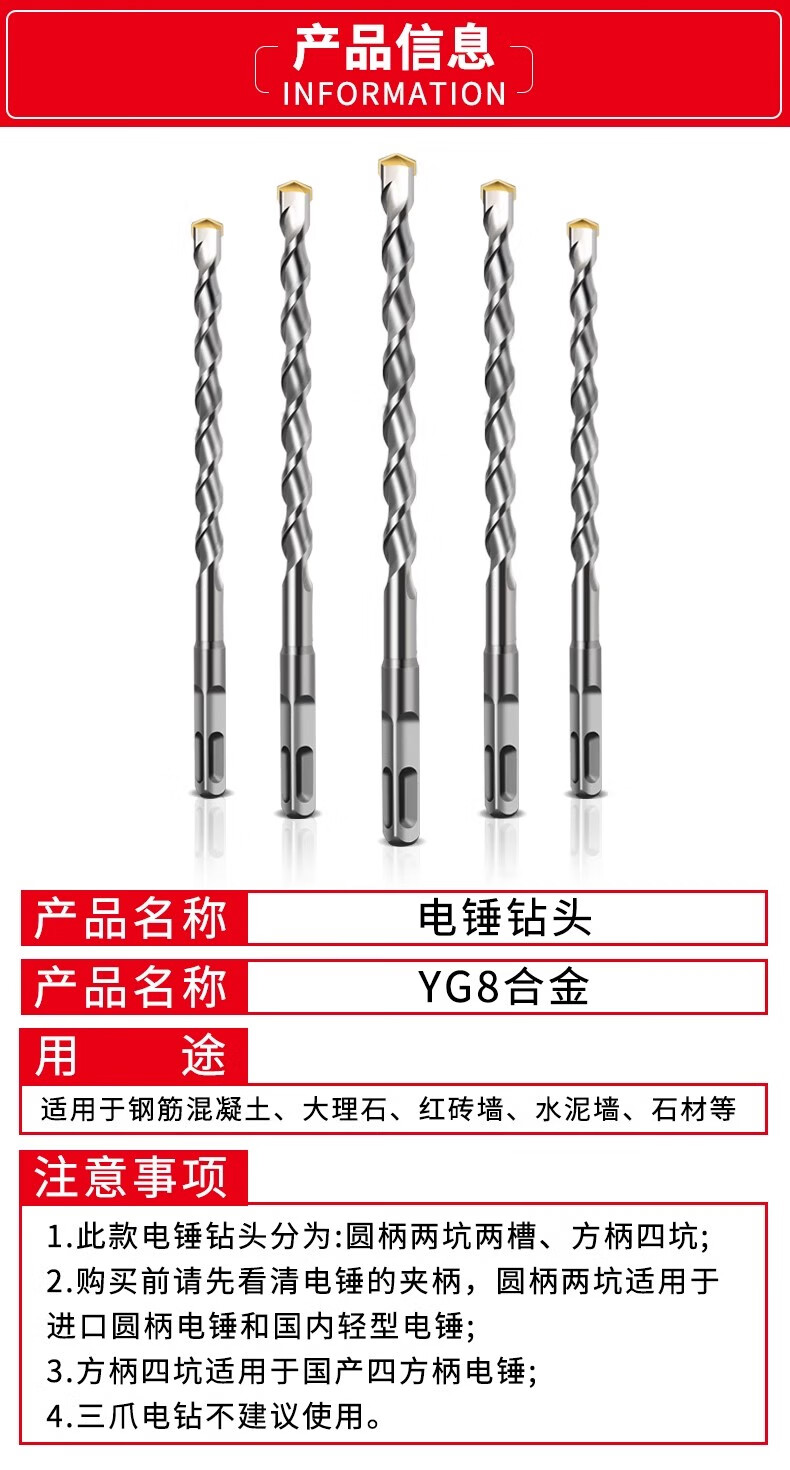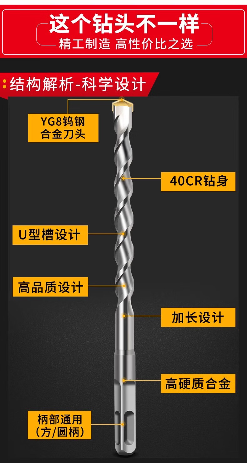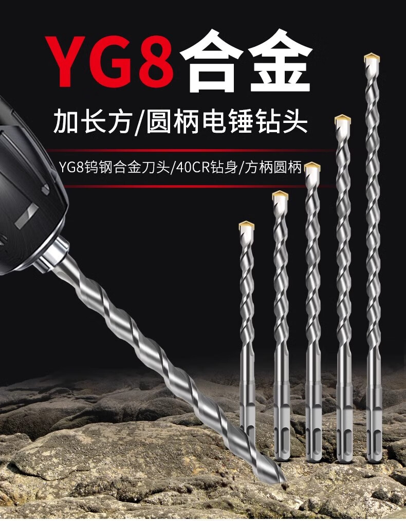 Electric hammer drill bit extension drill bit wall drilling impact drill bit brick wall concrete square handle round head alloy drill bit square handle four pits 12*500