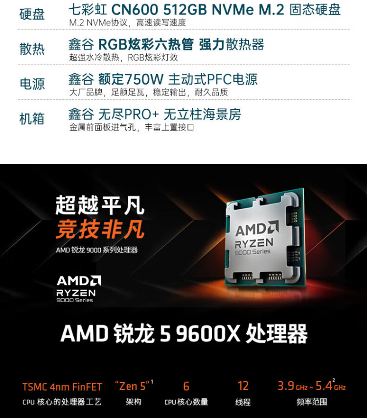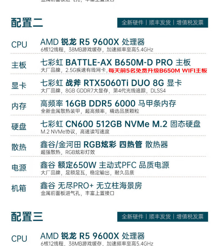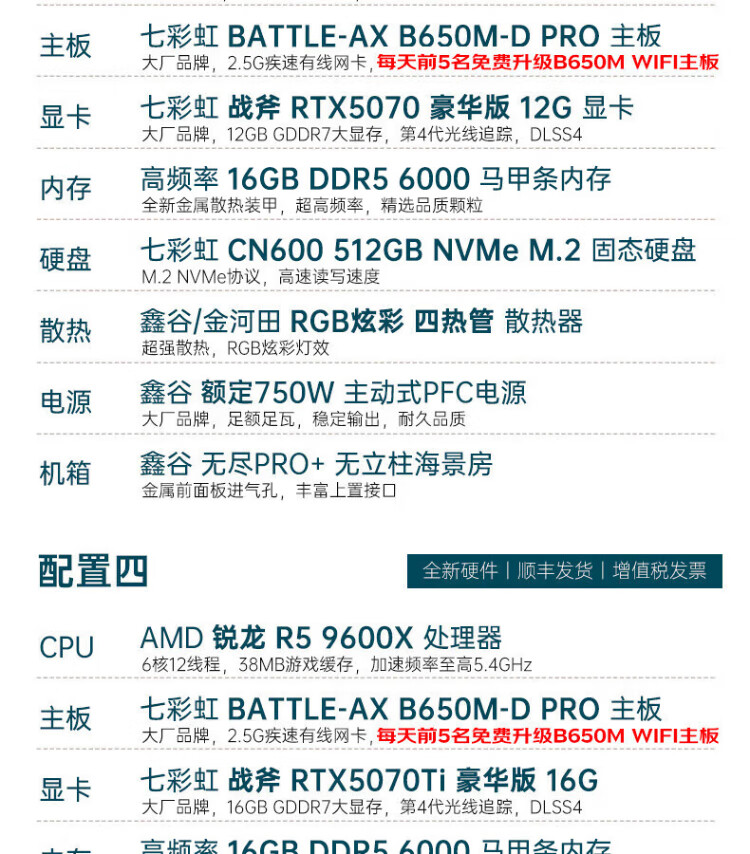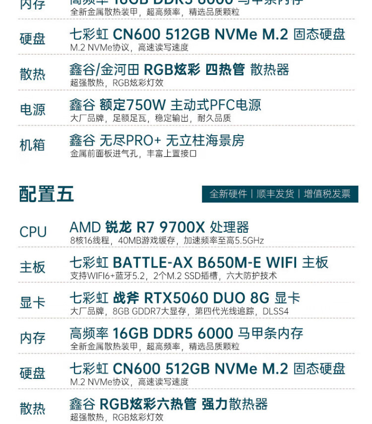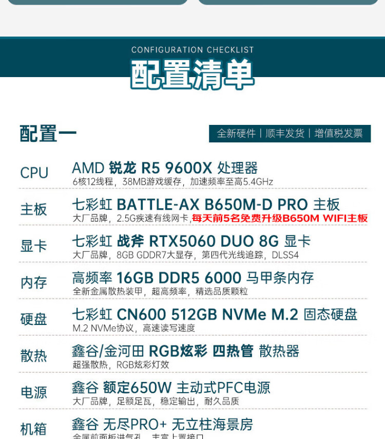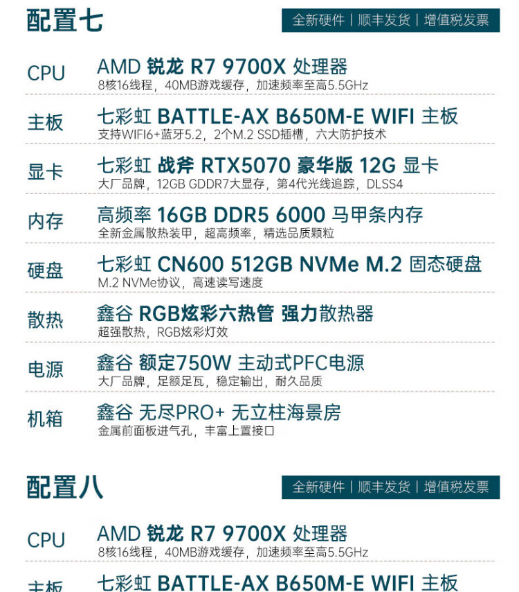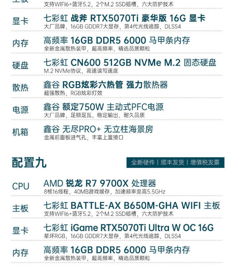 Colorful Ryzen R7 9700X/R5 9600X RTX5070Ti/32G desktop AI computer 5080 game AI rendering design DIY computer assembly complete machine with six 9700X丨D5丨RTX5060Ti