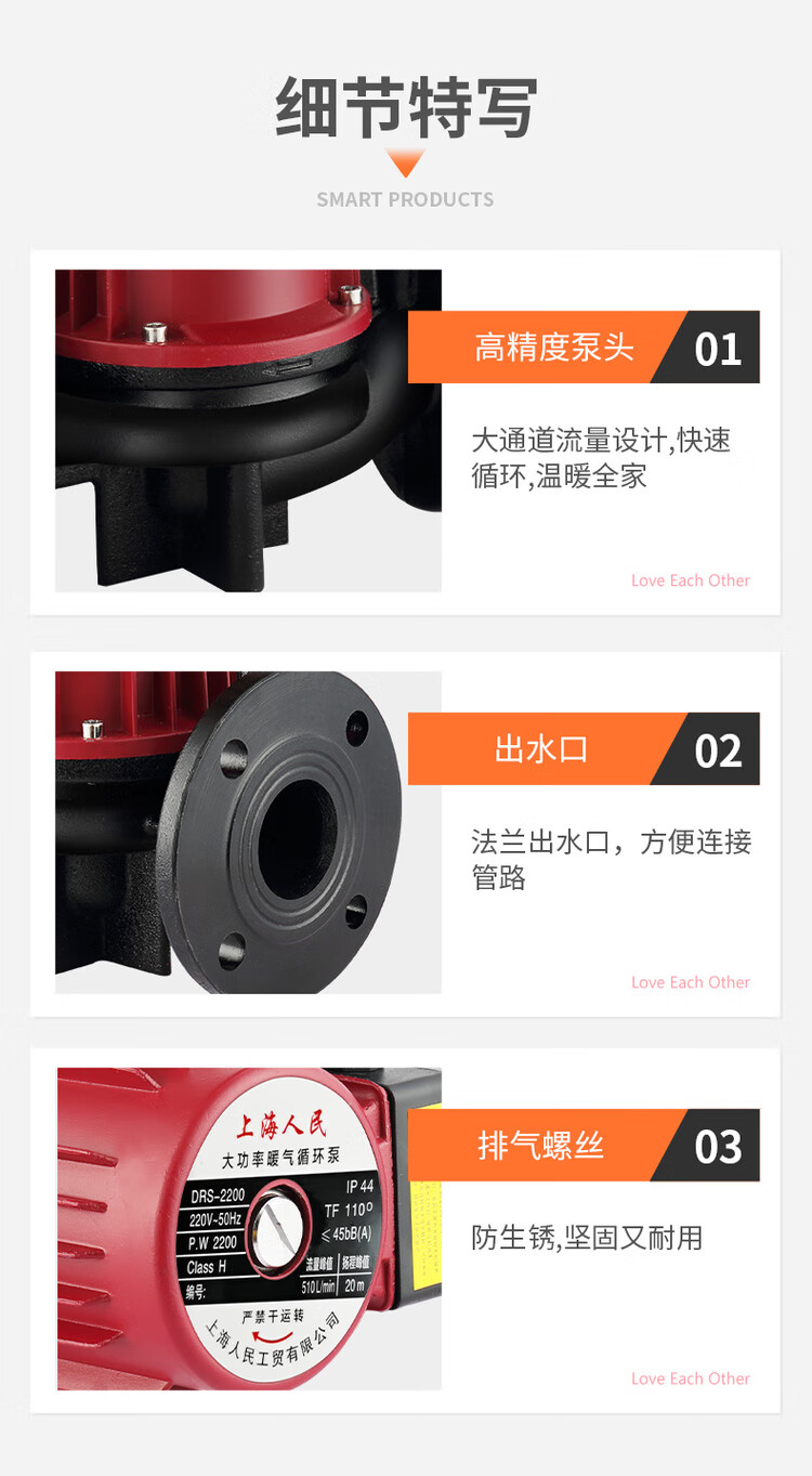 Shanghai hot water circulation pump heating boiler floor heating floor heating pipe pump 220v high power shield pump 550 watt 1.5 inch outer wire port