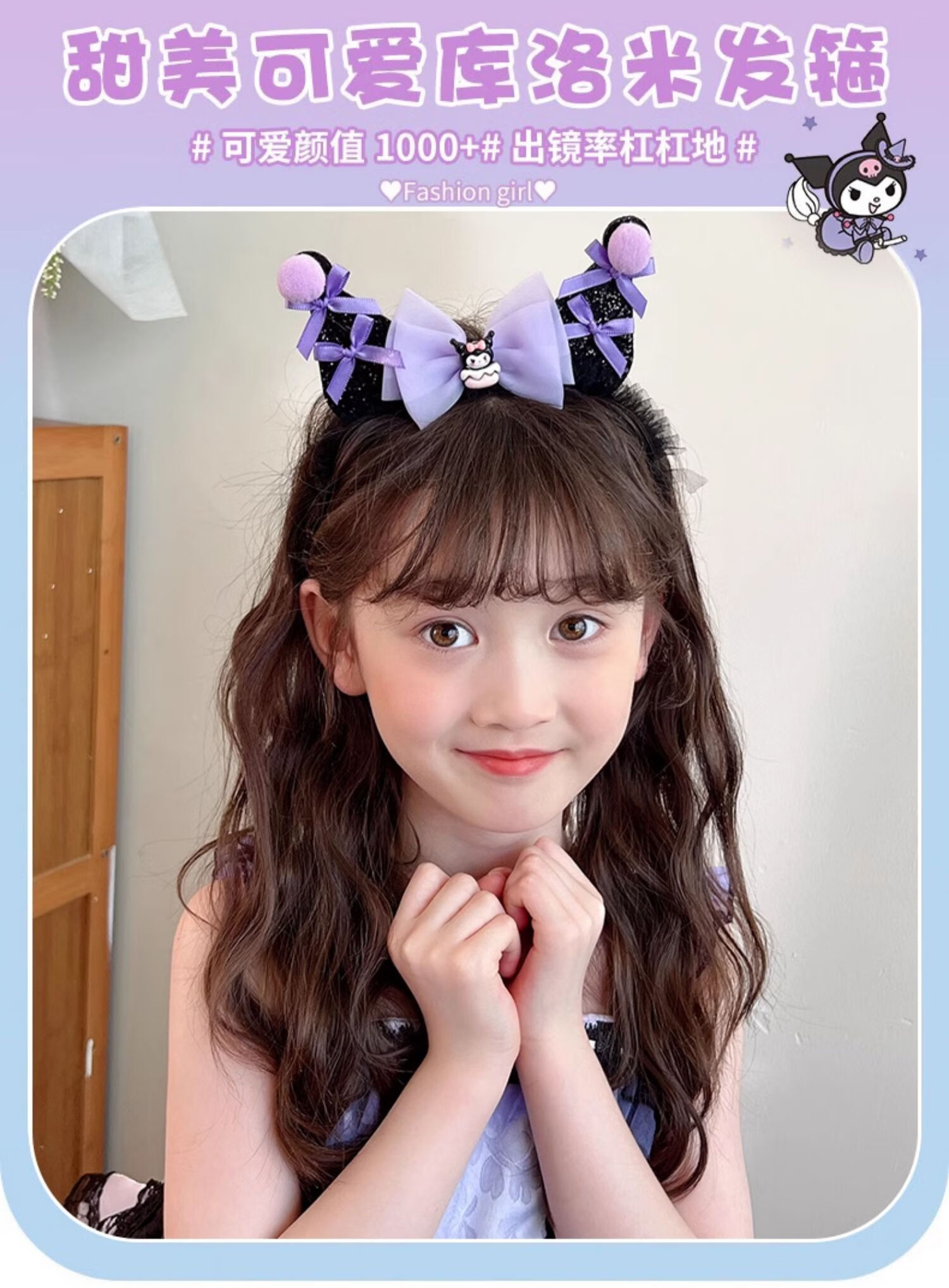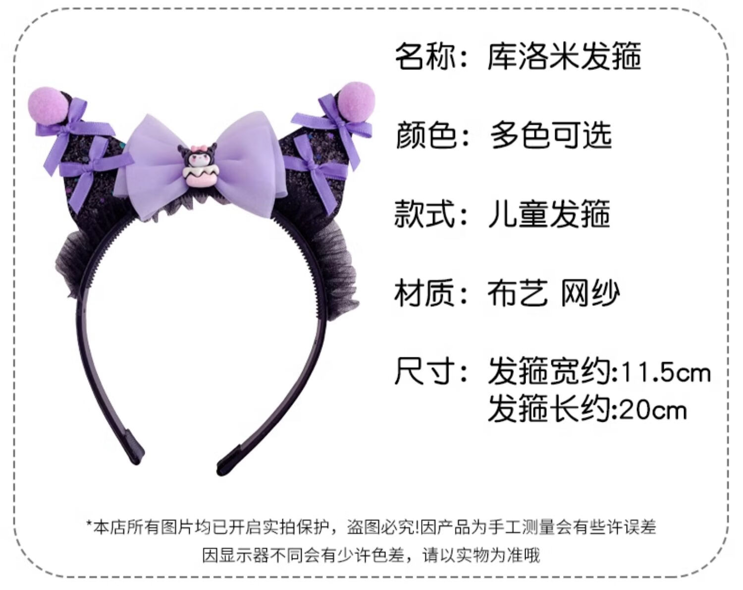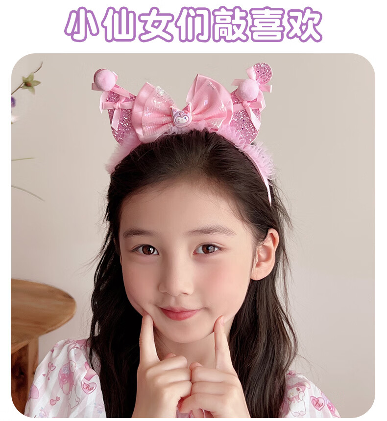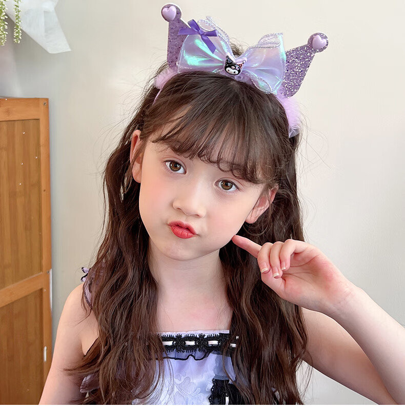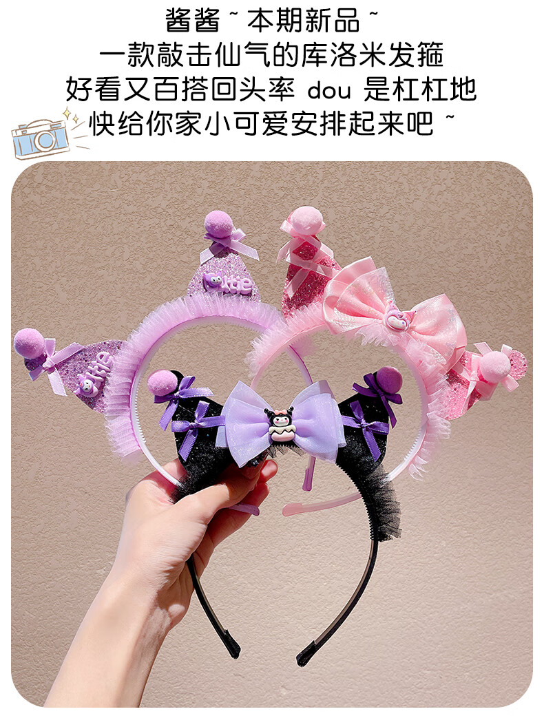 Lexicong children's hairbands, girls' baby non-slip headbands, cute Kuromi hair accessories, girls' bow mesh hairpin headband, black bow Kuromi