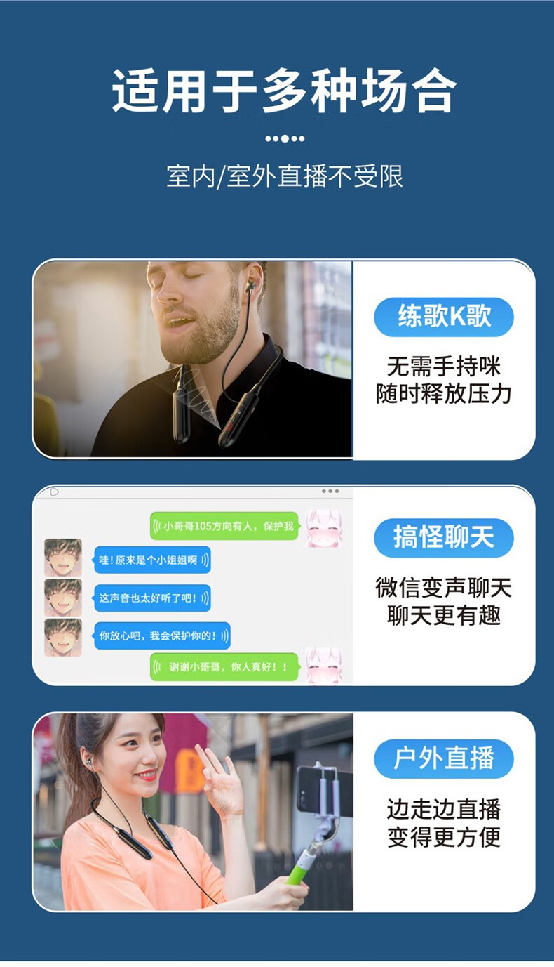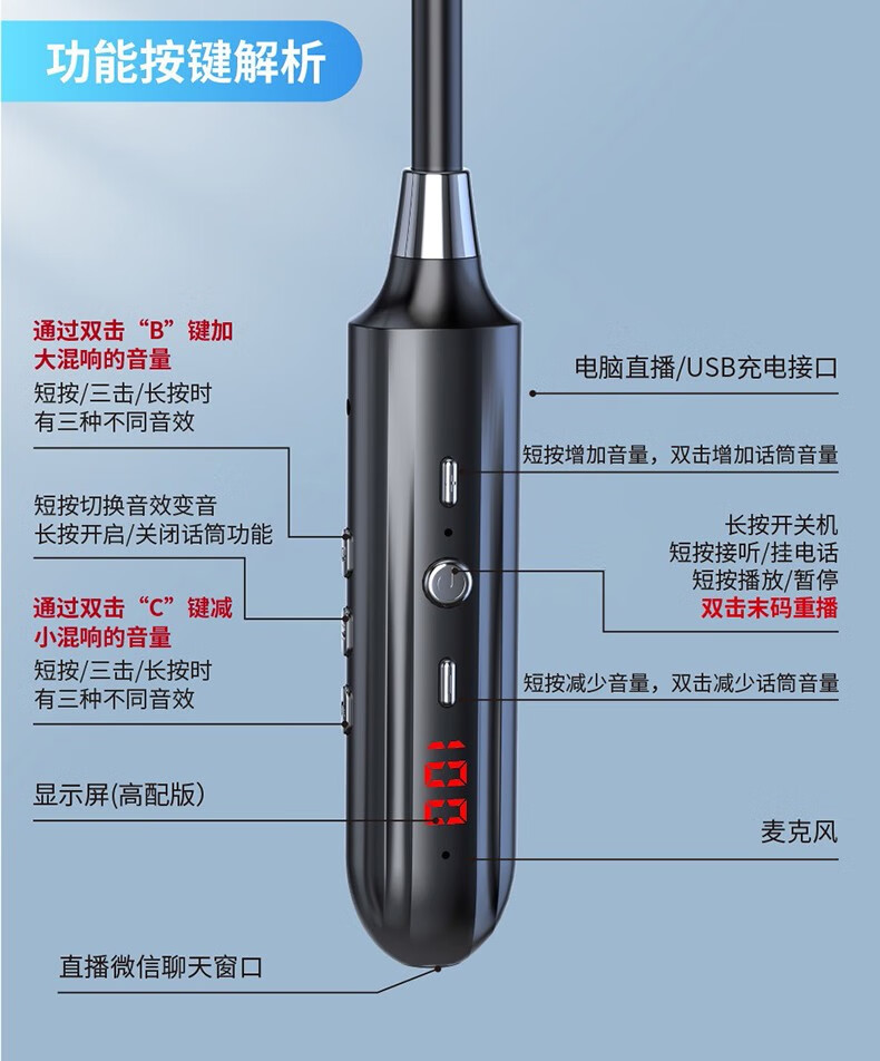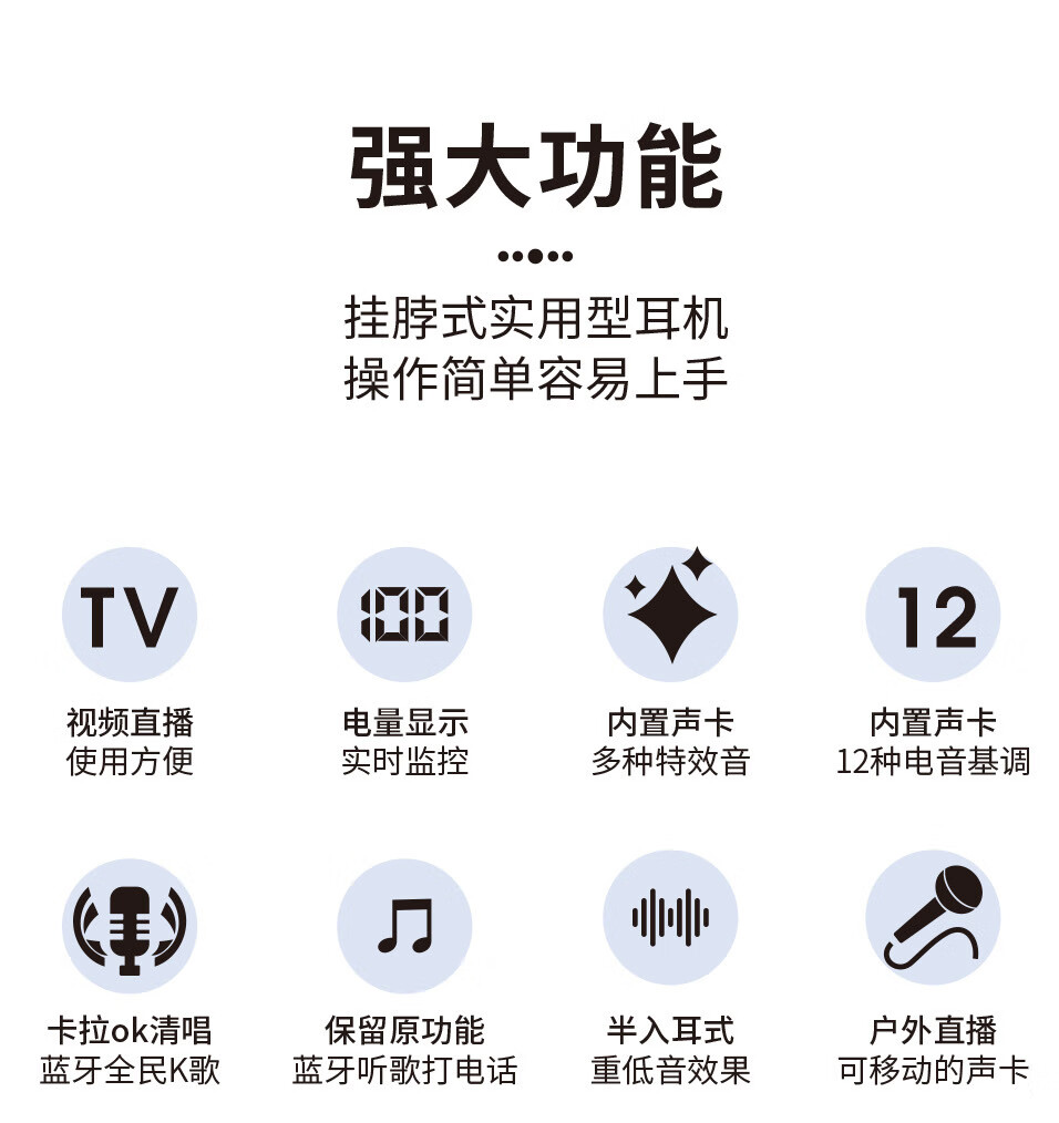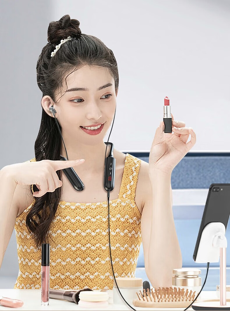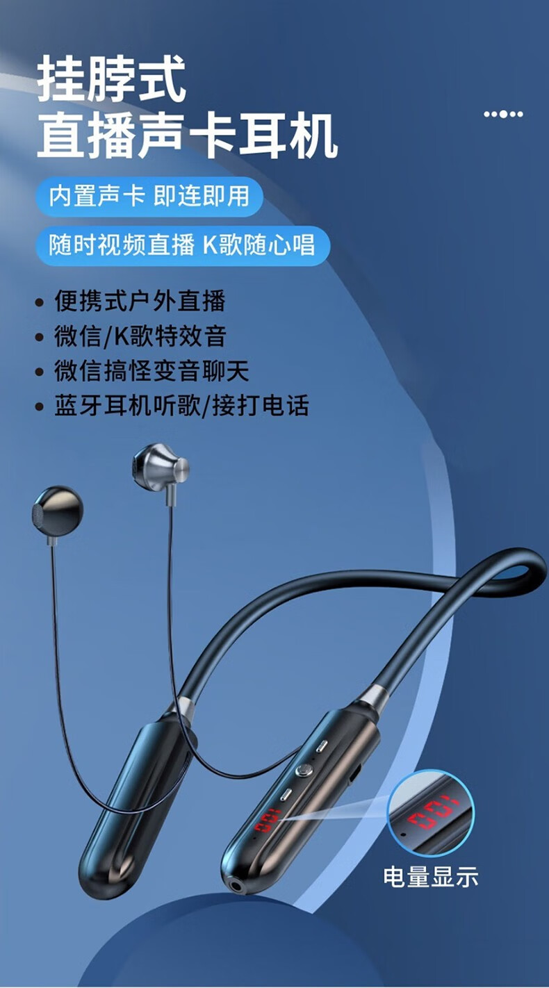 Pinshi Professional Live Broadcast Headset Live Sound Card Headset Wireless Monitoring In-Ear Return Equipment Full Set Bluetooth Hanging Neck Douyin Band Goods K Song Noise Reduction Suitable for Apple Android J3 Sound Card Headphones + Special Effects Sound Remote Control + Monitoring