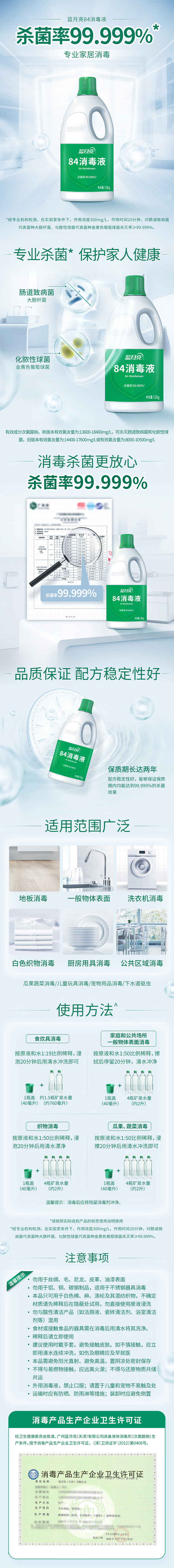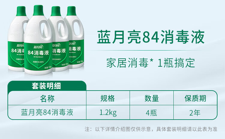 Blue Moon 84 Disinfectant Household Disinfectant Multi-Purpose Disinfectant Sodium Hypochlorite Disinfectant Street Disinfection 1.2kg*2 Bottles