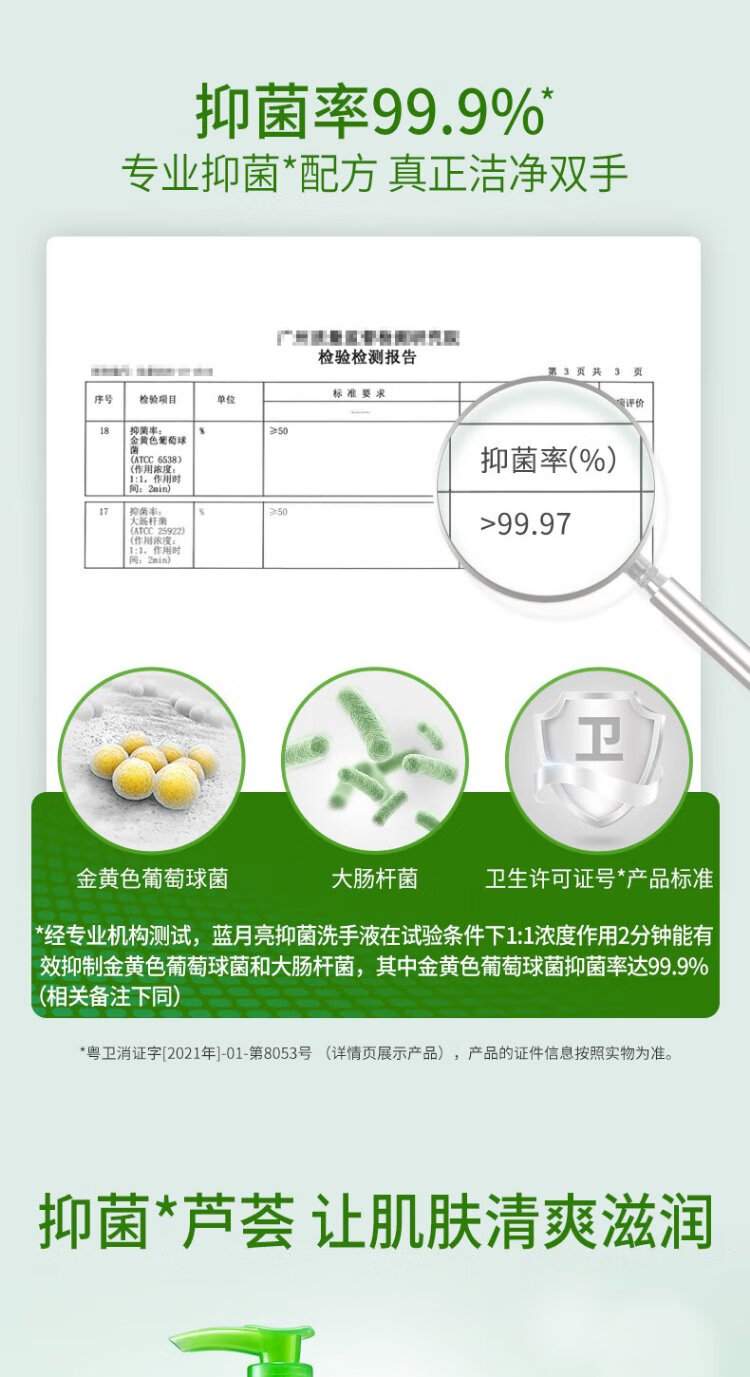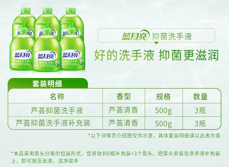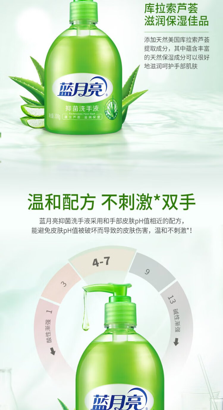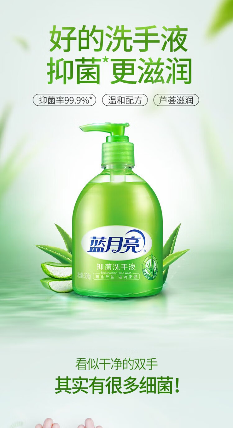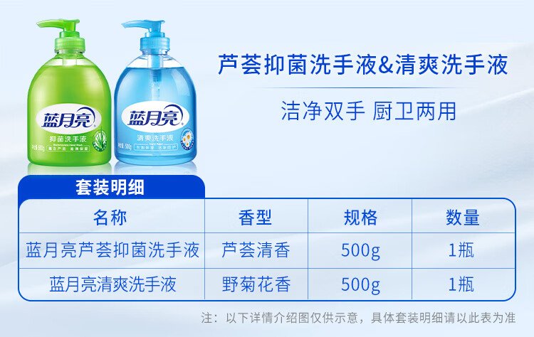 Blue Moon Aloe Antibacterial Hand Sanitizer Set, antibacterial rate 99.9%, moisturizing, suitable for children and babies, 500g aloe vera + 500g wild chrysanthemum
