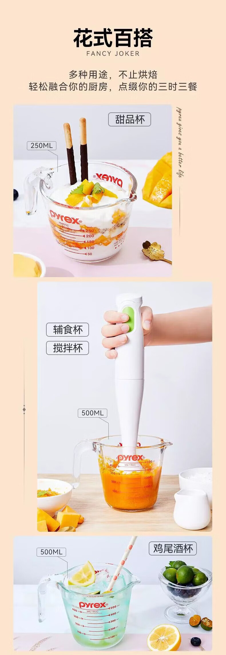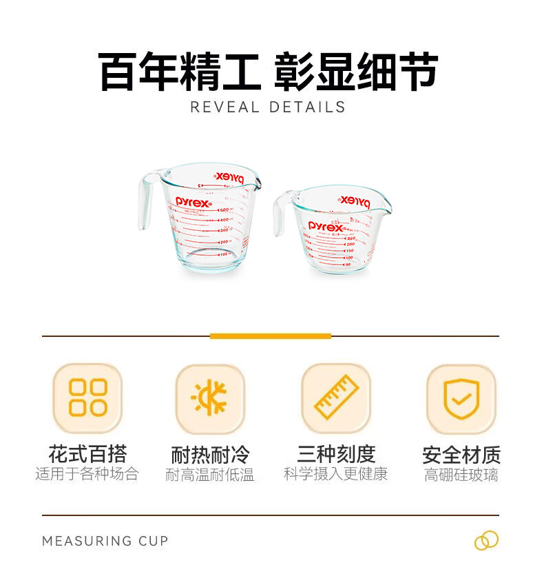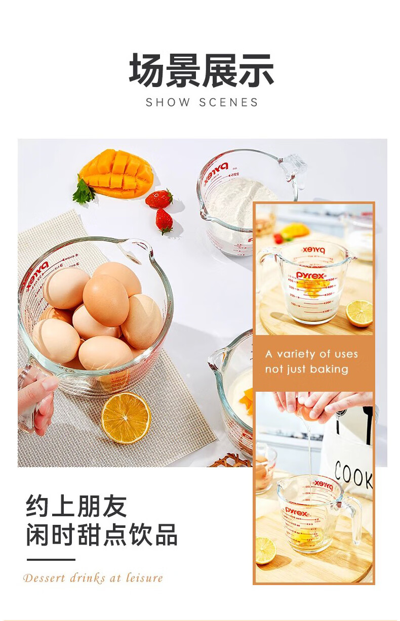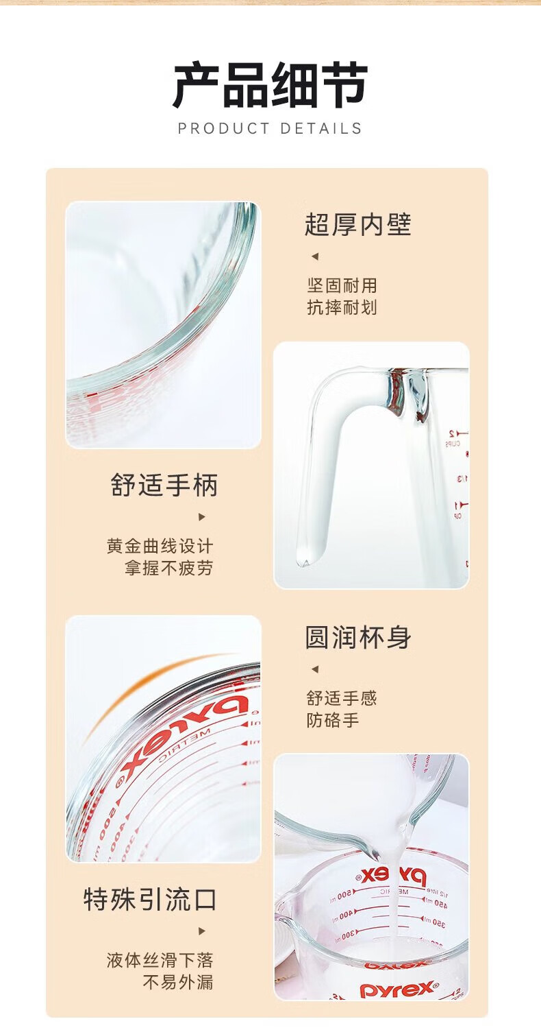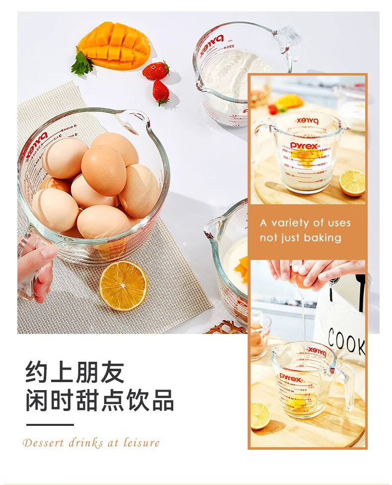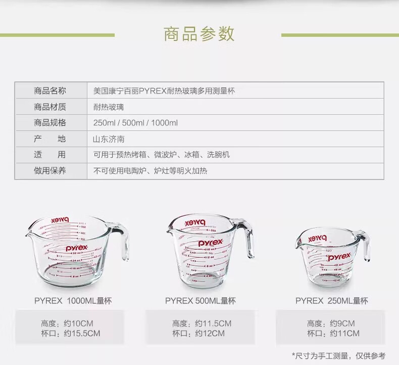 PYREX Corning measuring cup with scale children's breakfast cup brewing milk cup milk tea cup heat-resistant glass water cup graduated glass measuring cup 500ml
