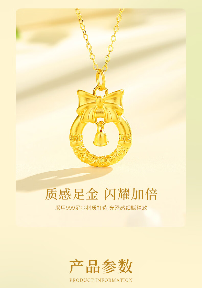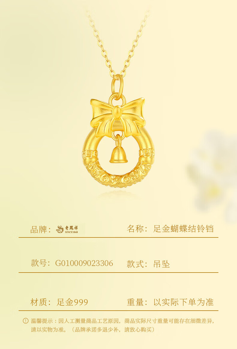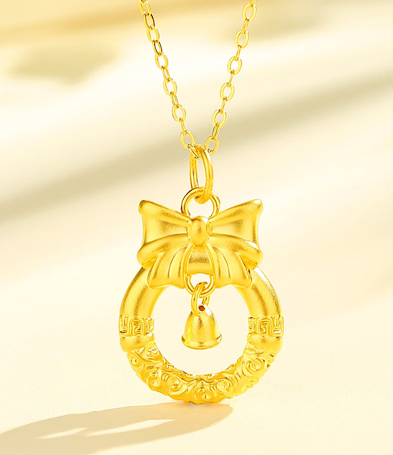 Lao Fengxiang gold necklace women's pure gold bow pendant pure gold jewelry Christmas Eve Christmas birthday gift for women pure gold pendant about 0.8g * free silver chain * free gift box