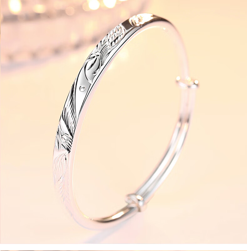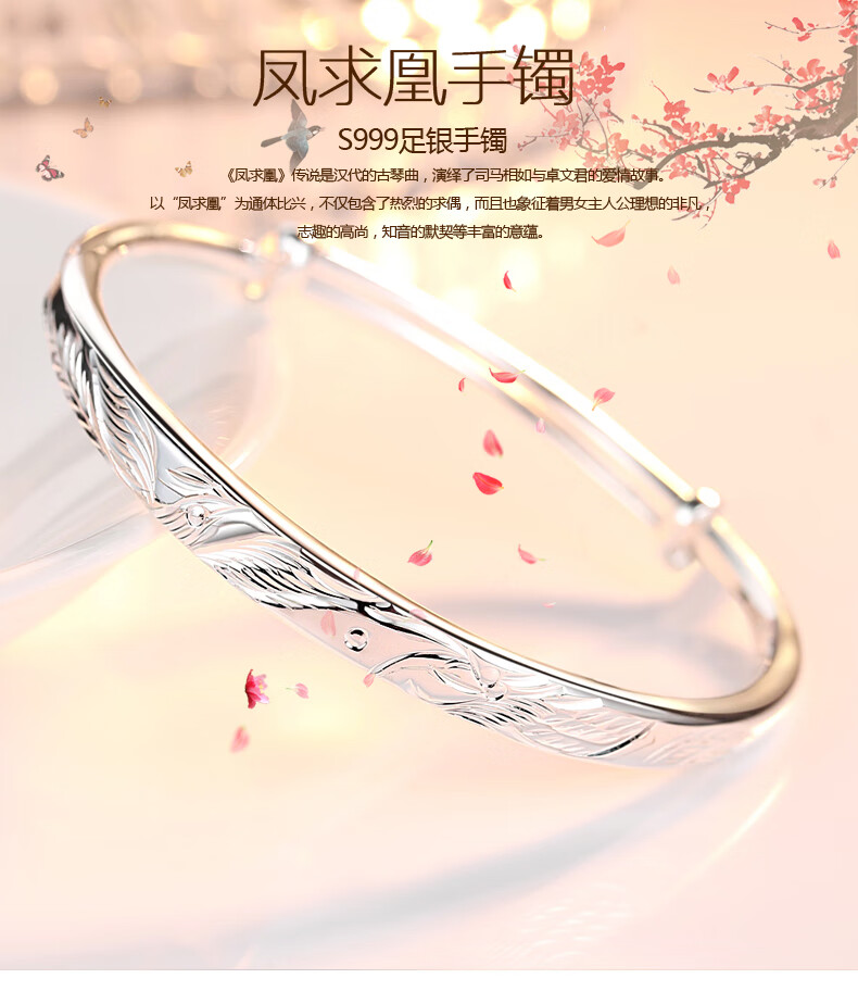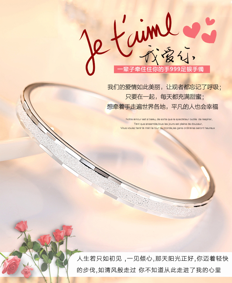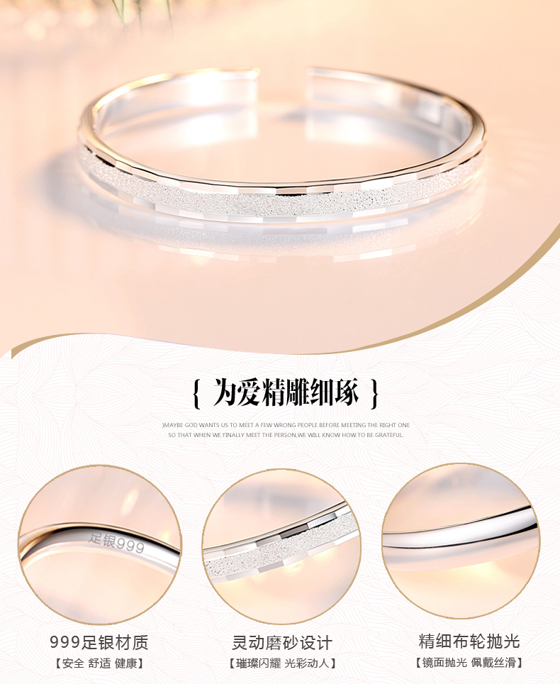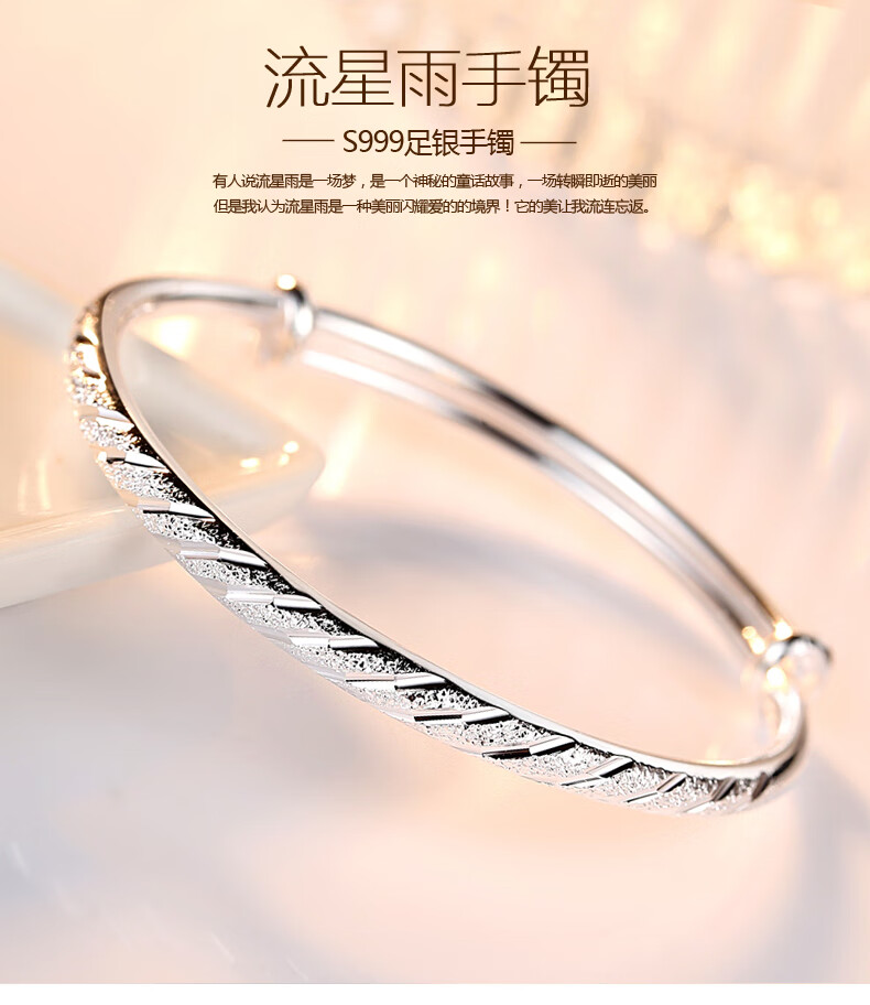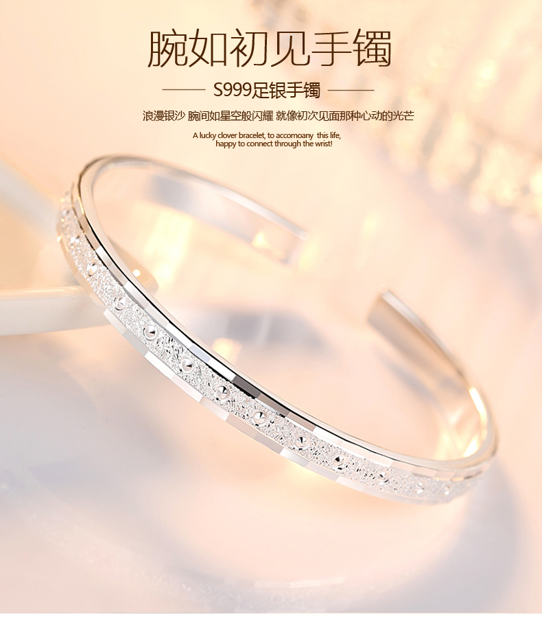Ji Ge 999 Pure Silver Bracelet Women's Open Simple Fashion Bracelet Bracelet Girls Couple Hand Jewelry Birthday Valentine's Day 520 5201314 Bracelet About 30 Grams (Rose Gift