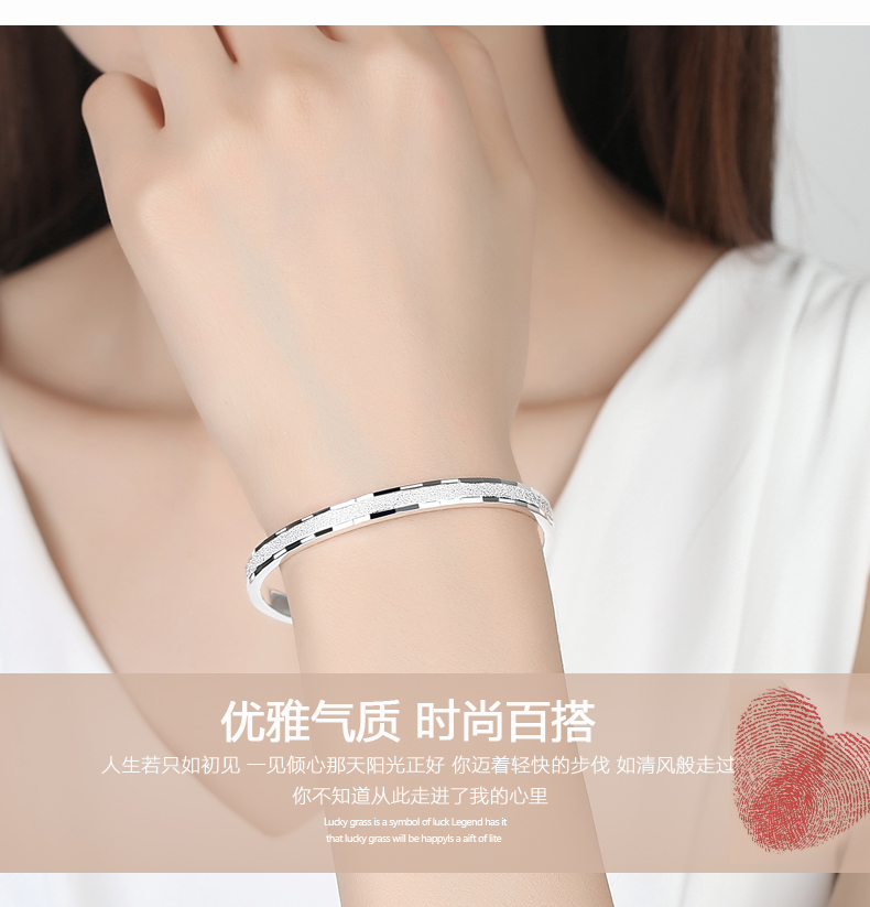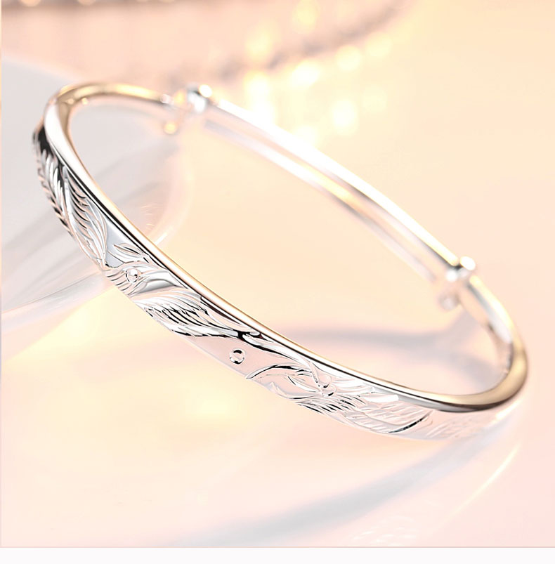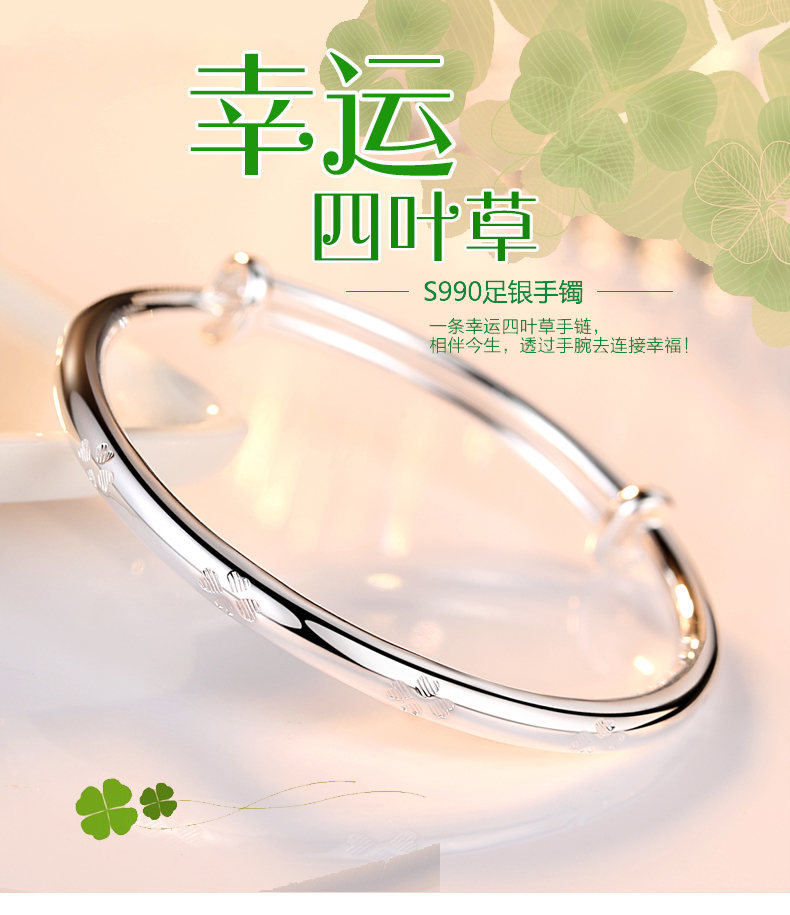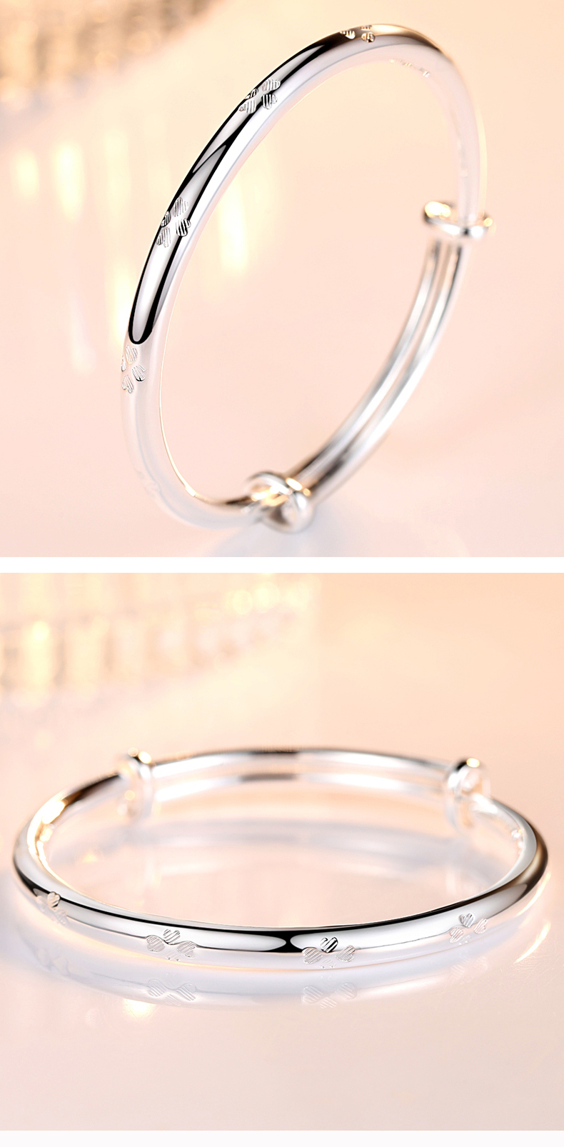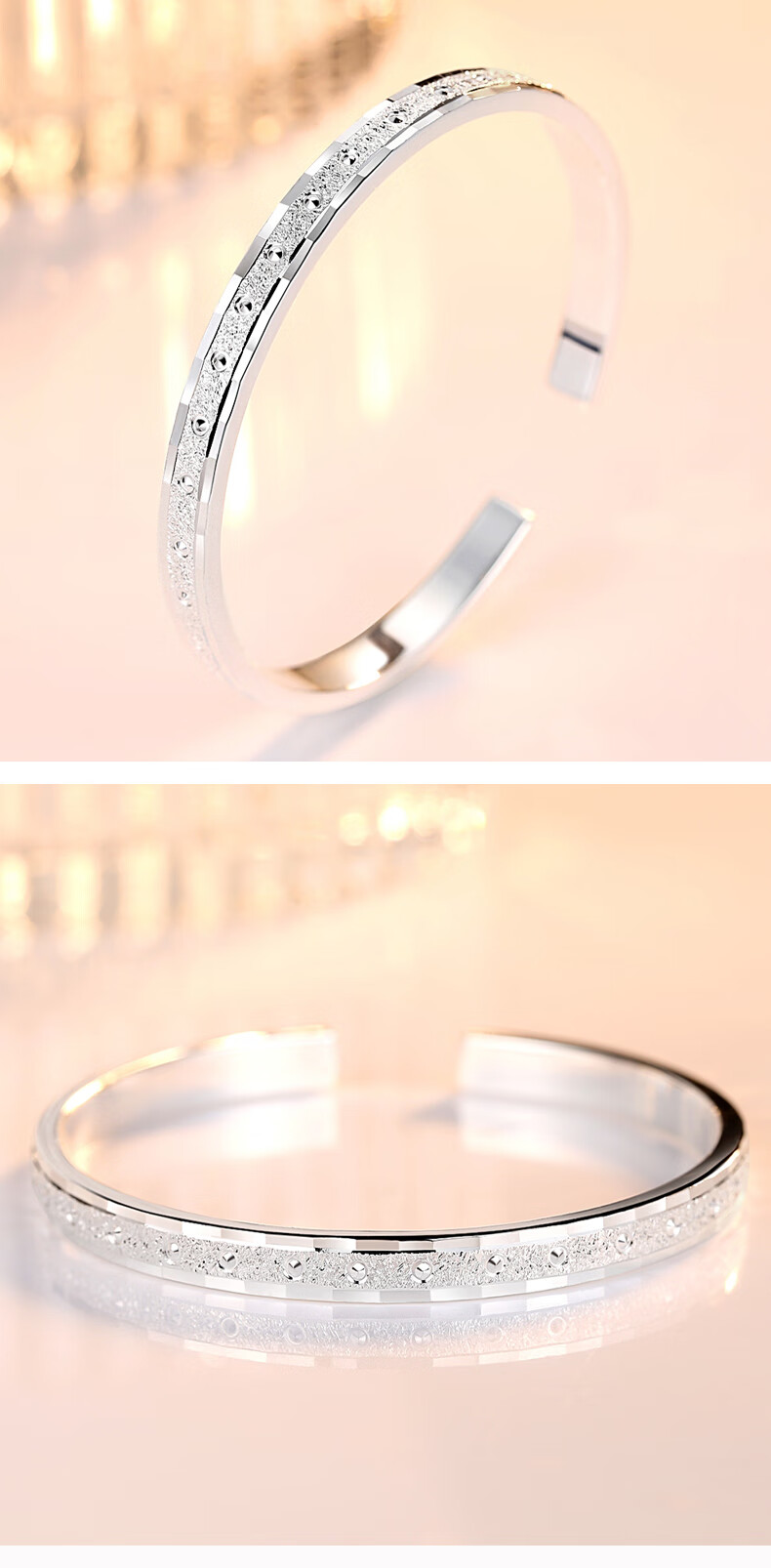 Ji Ge 999 Pure Silver Bracelet Women's Open Simple Fashion Bracelet Bracelet Girls Couple Hand Jewelry Birthday Valentine's Day 520 5201314 Bracelet About 30 Grams (Rose Gift
