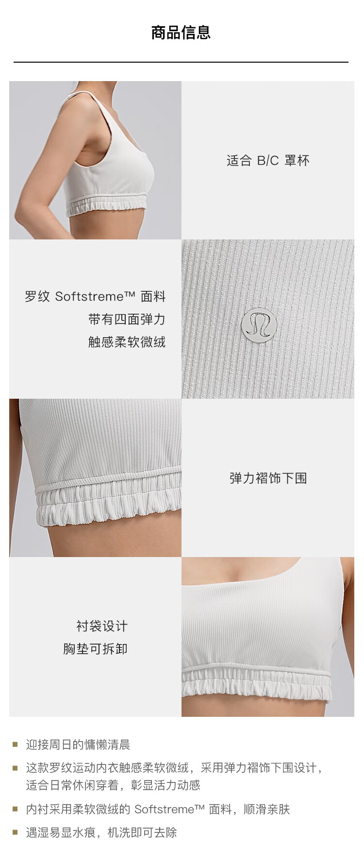 Lululemon丨Ribbed Softstreme Women's Ribbed Scoop Neck Bra LW2E08S Black S