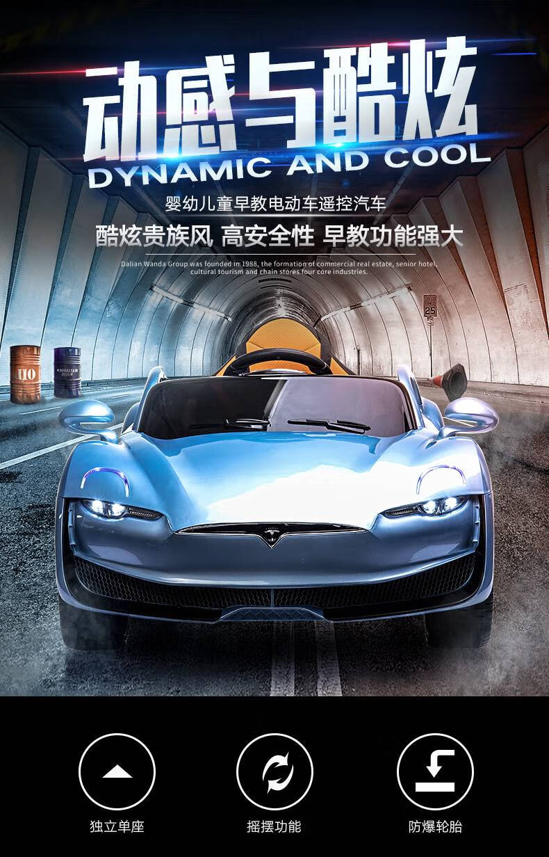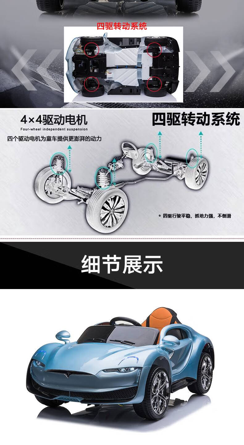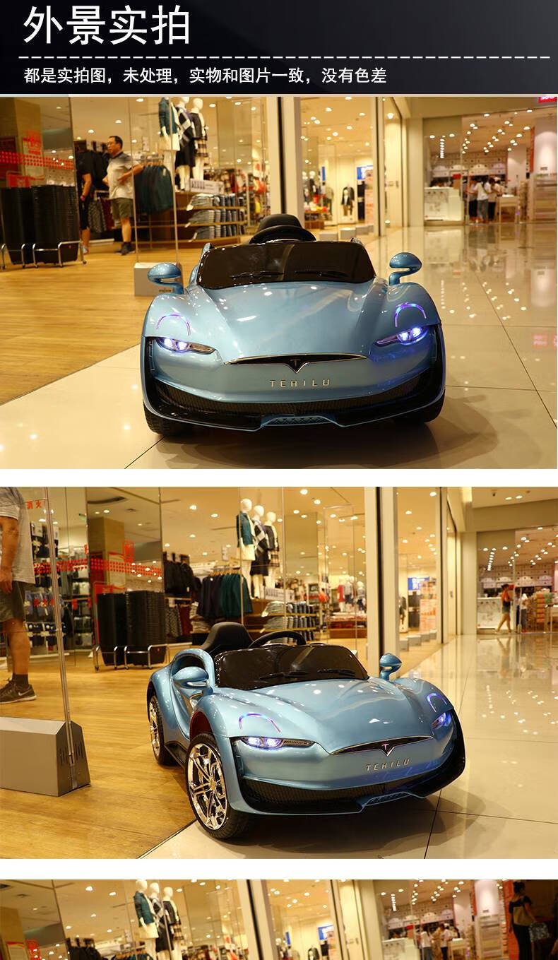 AWZ Tesla children's electric car, four-wheeled car, baby toy battery car, can sit on an adult-controlled stroller, white + four-wheel drive 12V6A + swing + leather seat, music, lifetime warranty