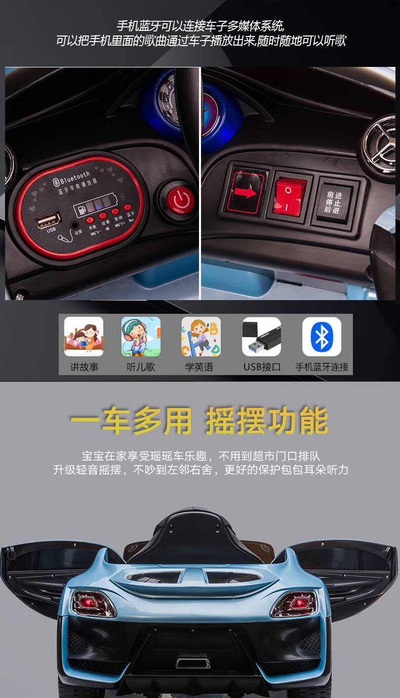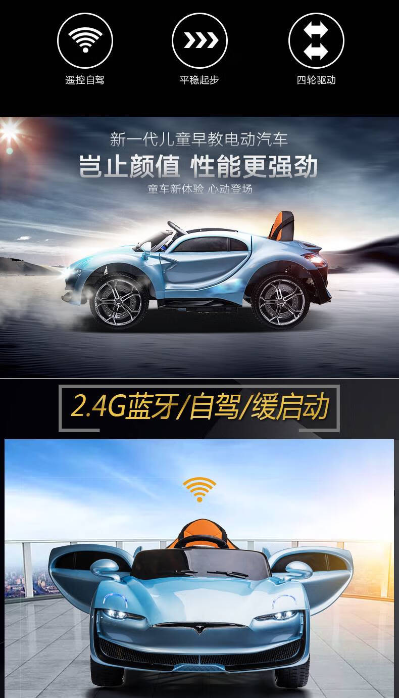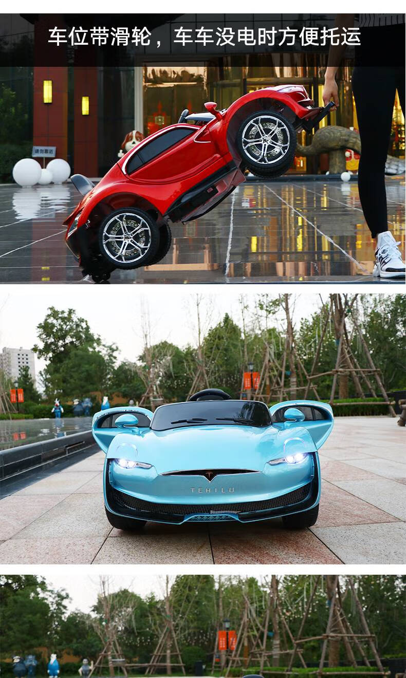 AWZ Tesla children's electric car, four-wheeled car, baby toy battery car, can sit on an adult-controlled stroller, white + four-wheel drive 12V6A + swing + leather seat, music, lifetime warranty
