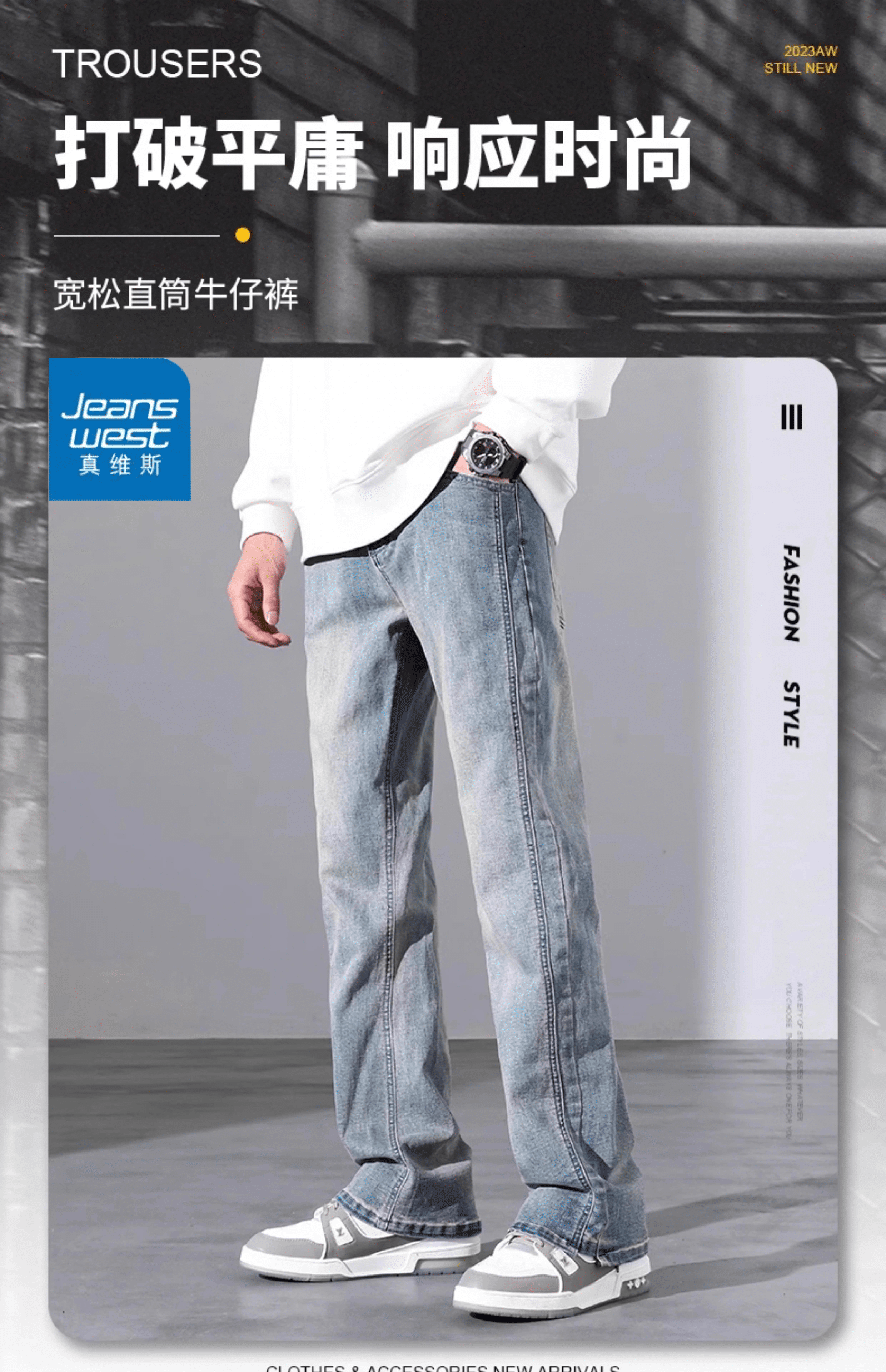 Jeanswest retro jeans men's autumn and winter new loose straight micro-flared men's pants versatile casual long pants men XW99 nostalgic blue 30 2 feet 3-recommended 115-125 Jin Jin equals 0.5 kg to wear