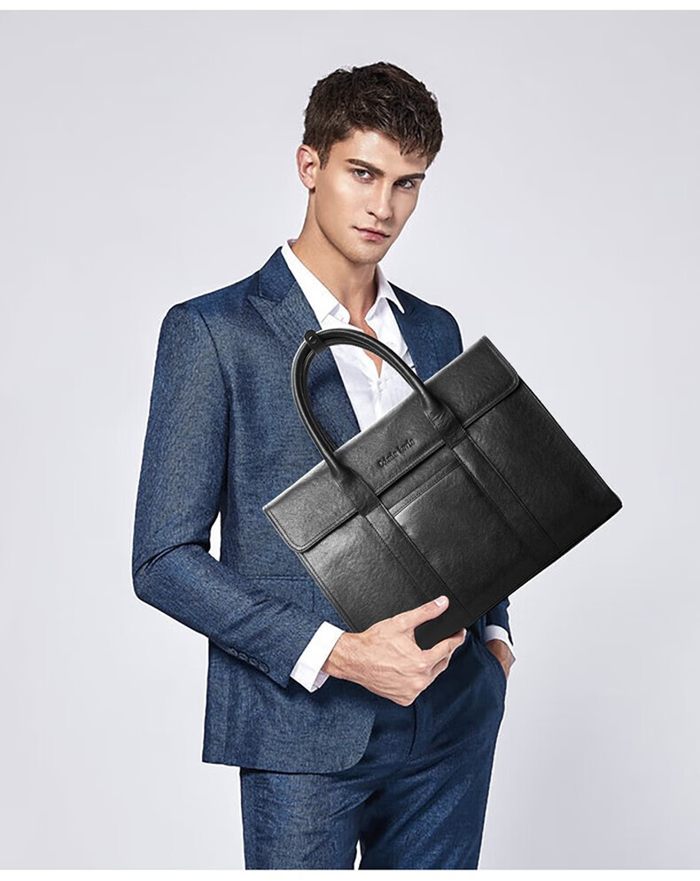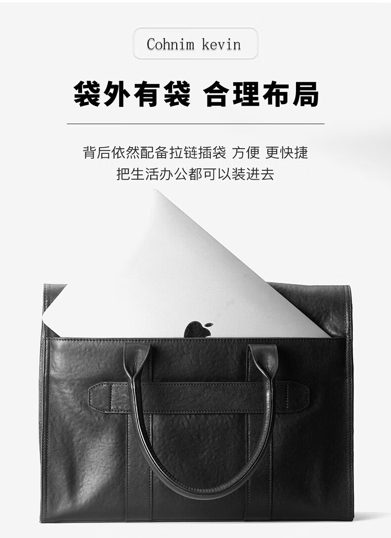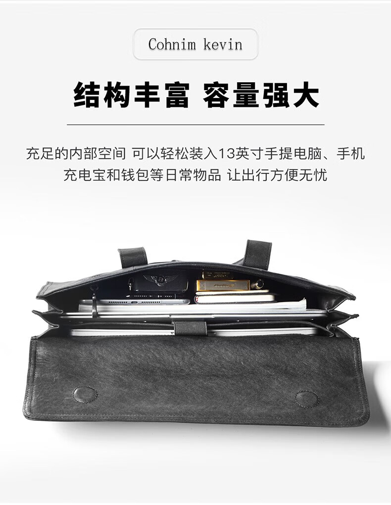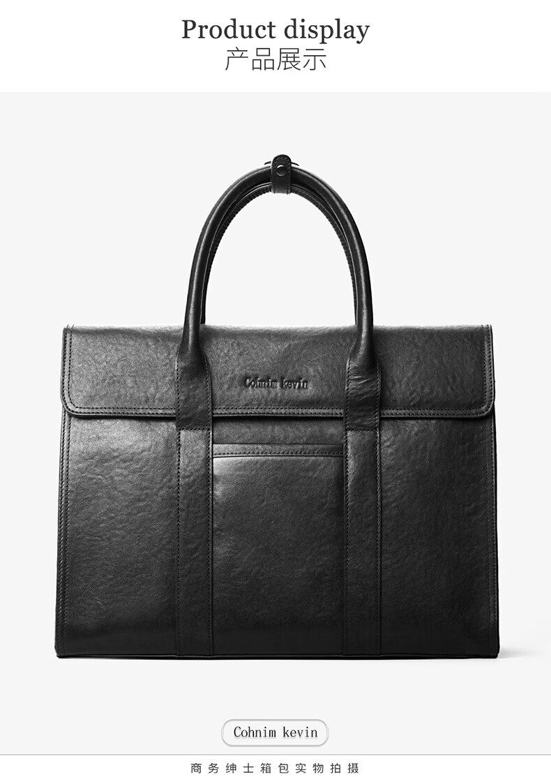 Cohnim kevin genuine leather briefcase luxury brand men's laptop document cross-body bag as a Valentine's Day gift for boyfriend and father, first-layer cowhide c01875 dark black, medium bag 14 inches