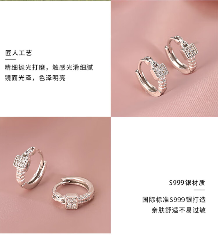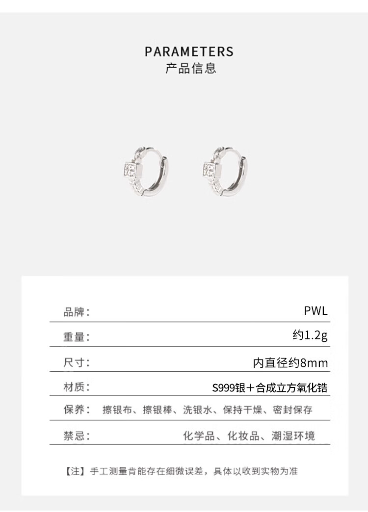 PWL999 Pure Silver Earrings Women's Ear Piercing Earrings 2025 New Niche Design Earrings Micro-embellished Earrings Hot Style Earrings 999 Pure Silver Pair of Earrings
