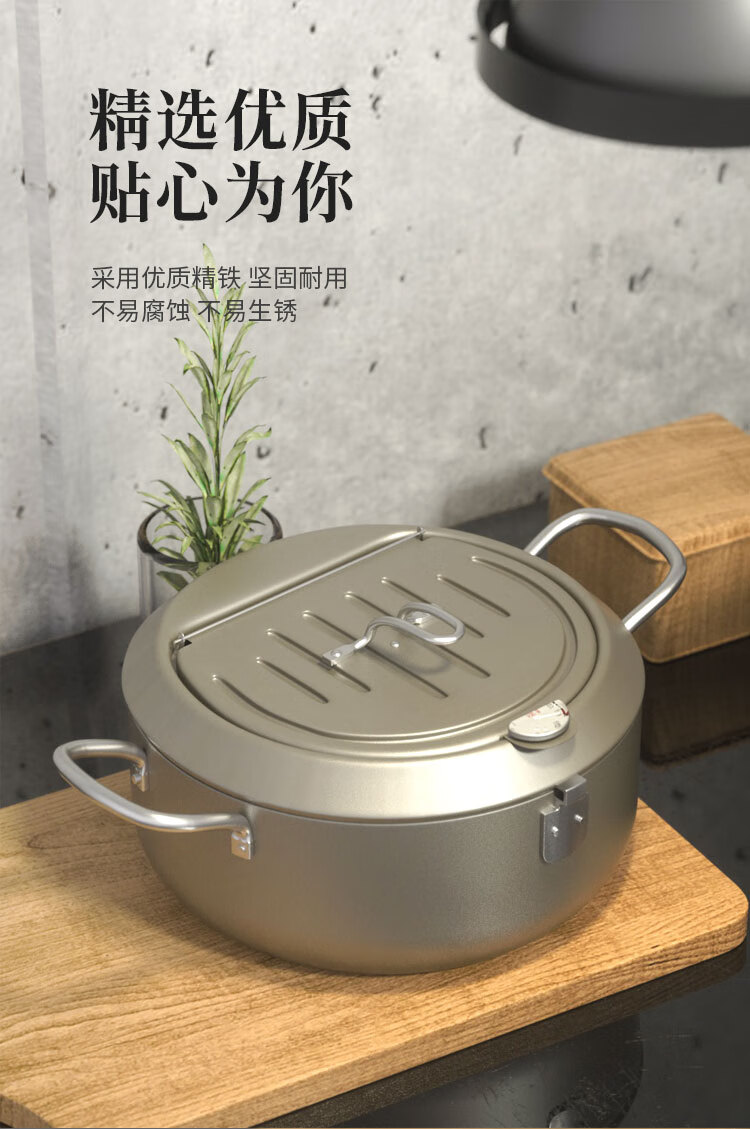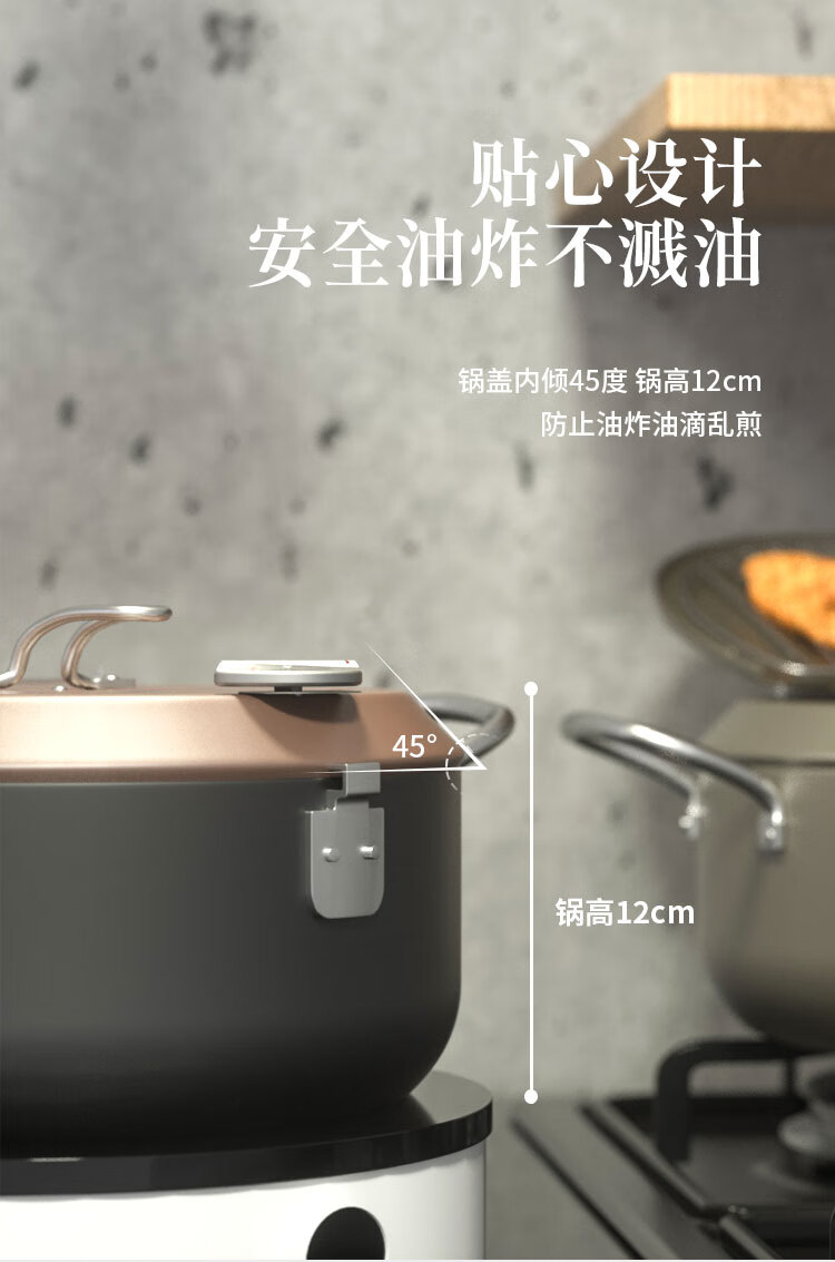 Molosun Japanese-style frying pan household small mini deep temperature control gas gas fuel-saving Japanese small frying pan moonlight silver flip cover 20cm