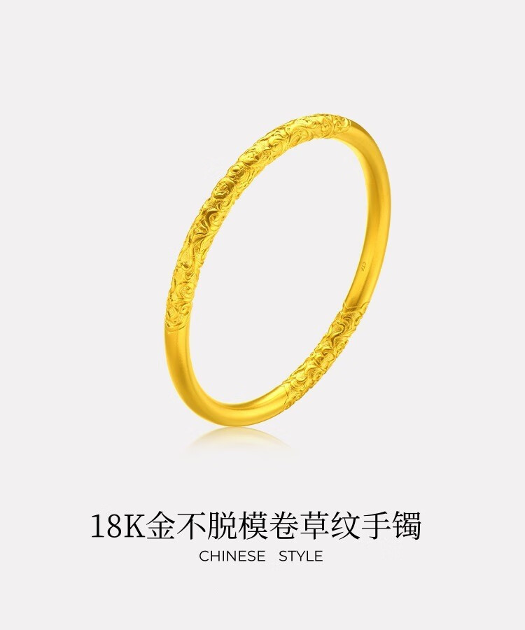 Feiyu 18K gold curly grass pattern bracelet for women Au750 color gold double flower solid bracelet gold bracelet for girlfriend birthday gift