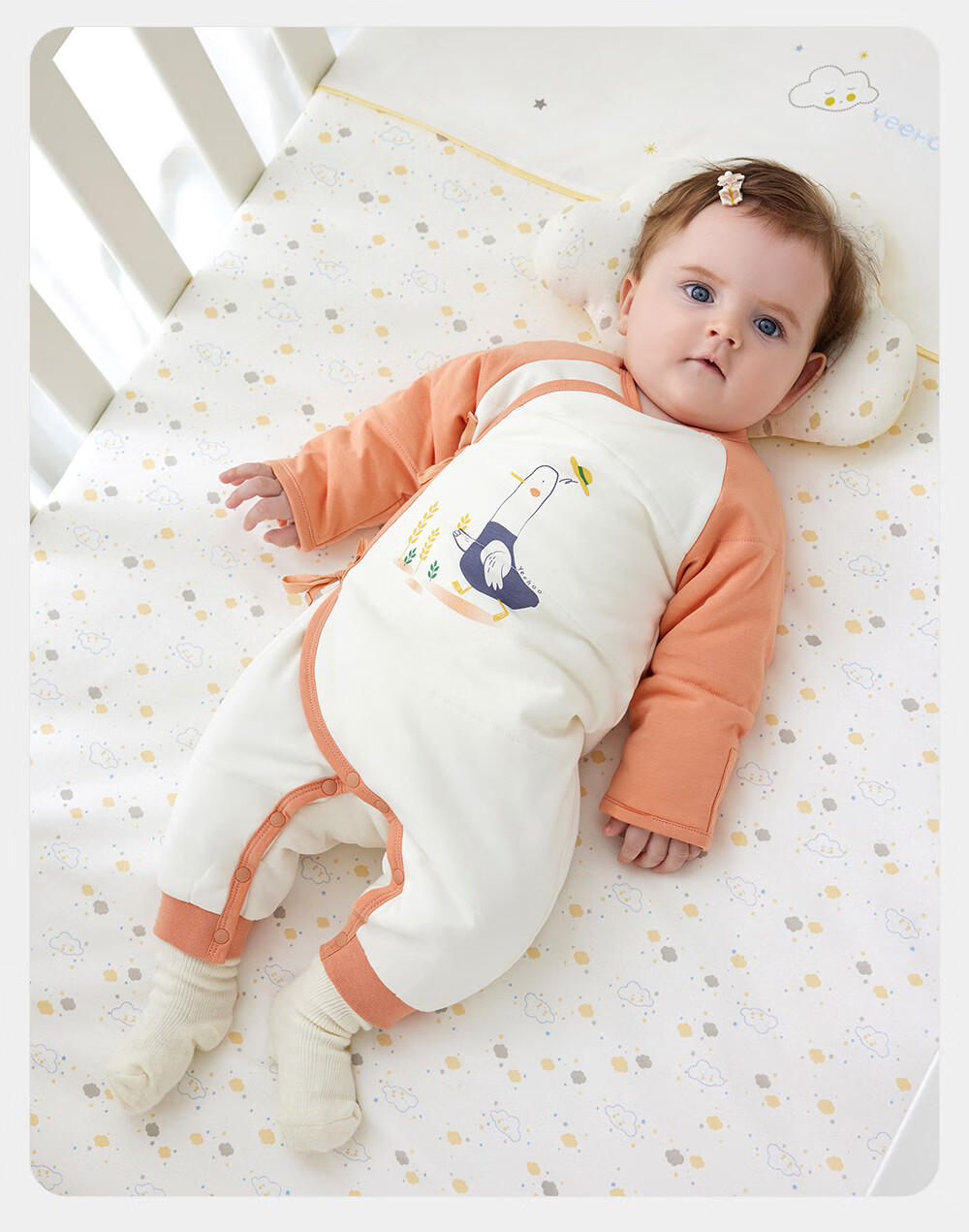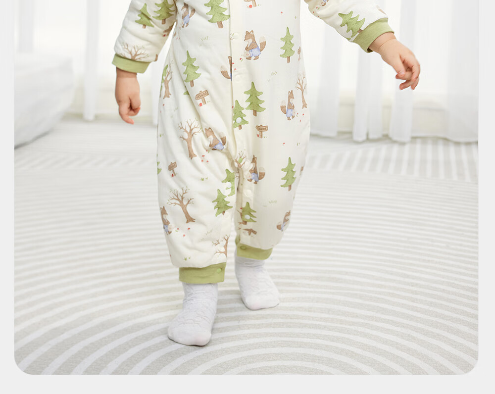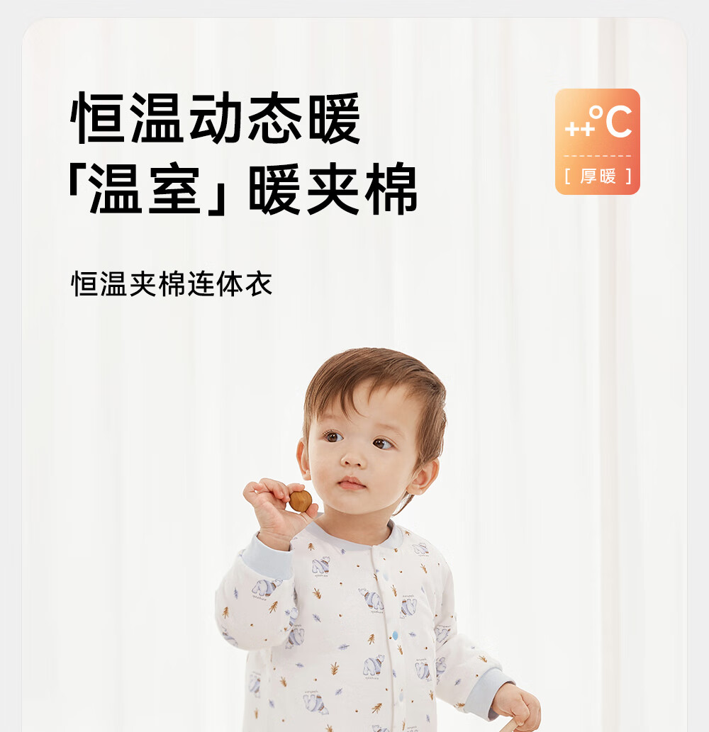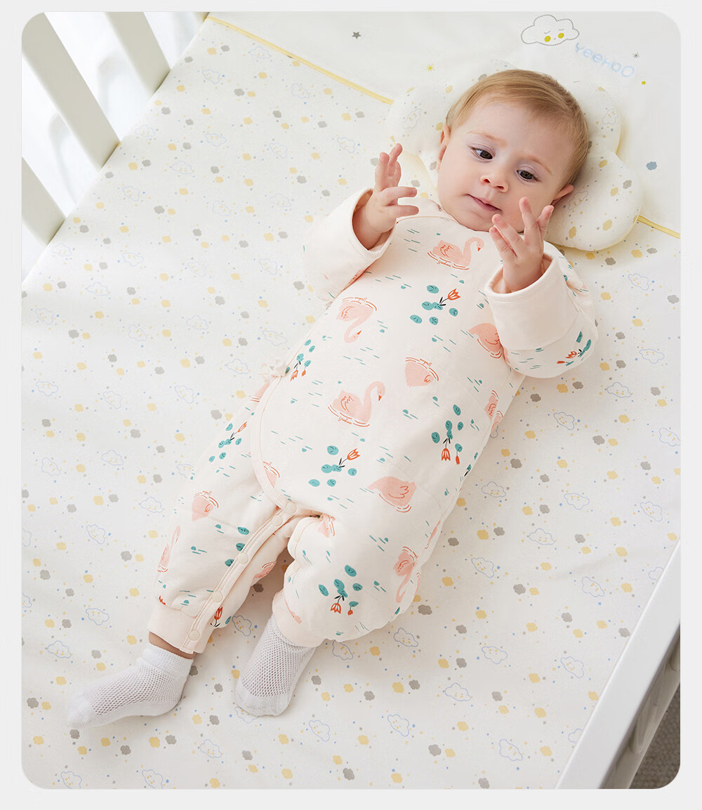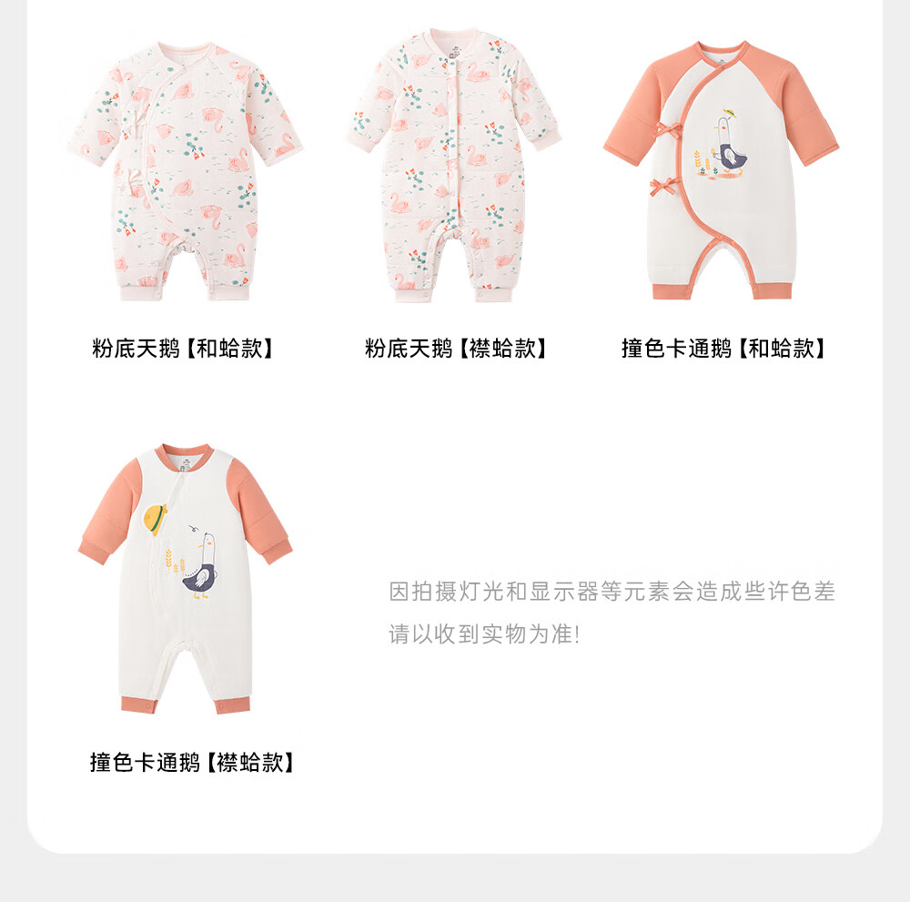 YEEHOO baby quilted one-piece autumn and winter warm long-sleeved baby underwear for girls and boys, baby clothes, foundation swan, lapel style 73cm (recommended for 6-9 months)