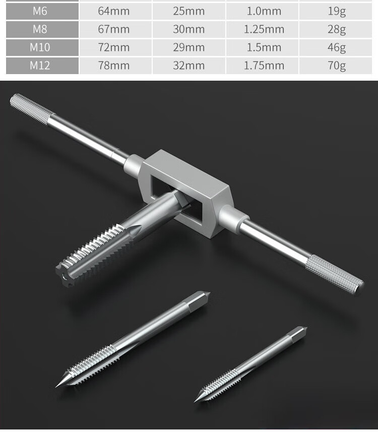 Jingeyu hand tap and die set M3-M12 manual tapping tool tapping wrench wrench thread screw repair 7-piece set