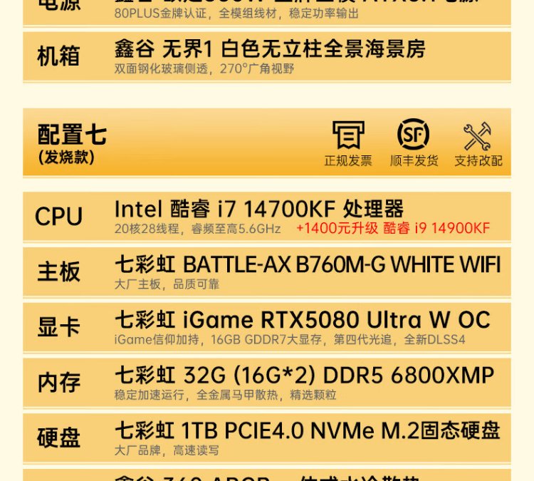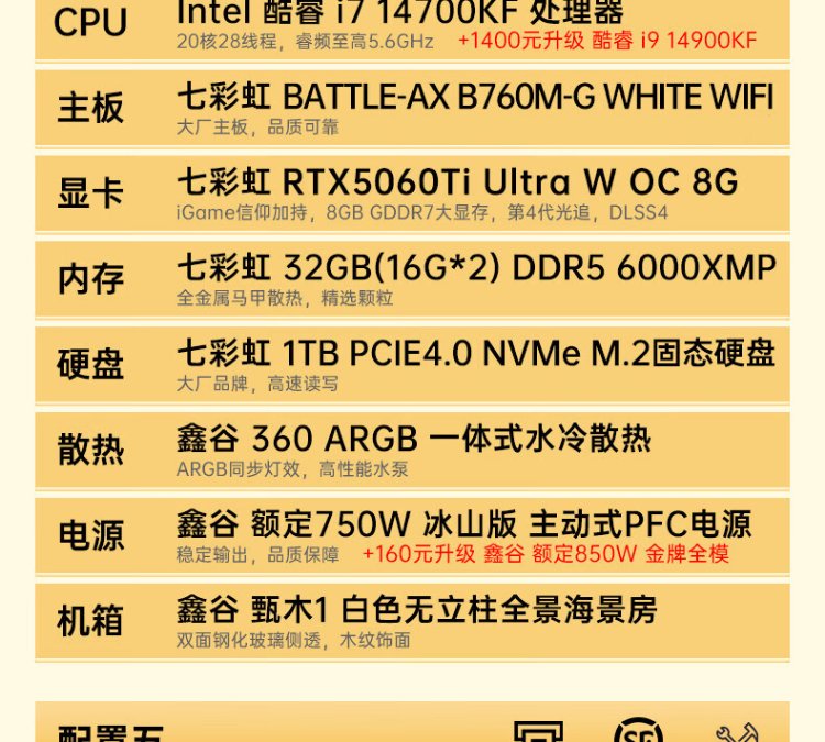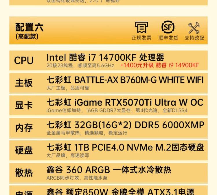Colorful Core i7 14700KF/RTX5080 desktop water-cooled AI computer host RTX5060Ti design rendering Black Myth Wukong game DIY assembly machine with three 14700KF丨32G memory丨RTX5060