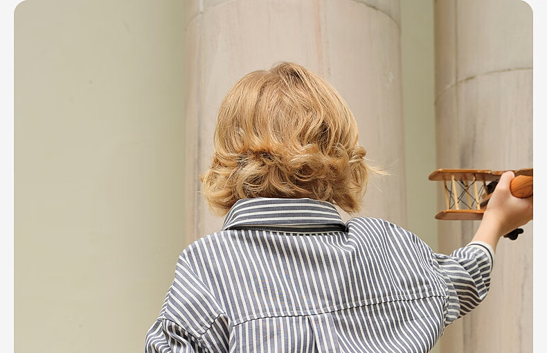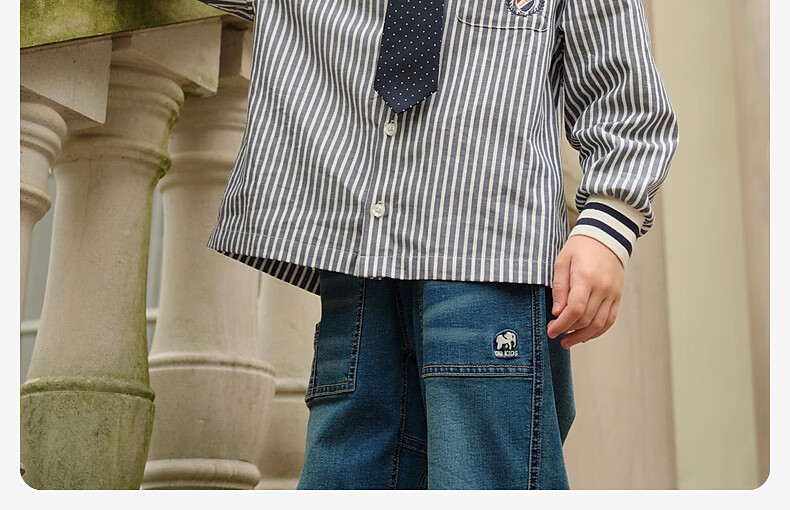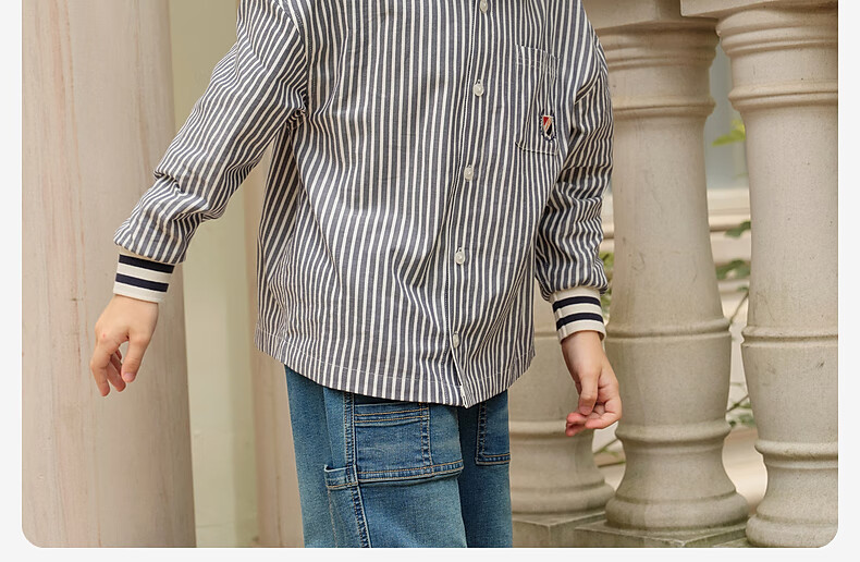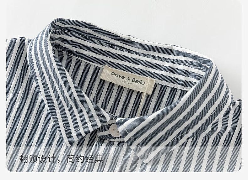 DAVE&BELLA medium and large children's clothes, college style children's shirts, little boys striped shirts, spring new children's clothing, boys' bottoming shirts, navy stripes, in stock 110 cm (recommended height 100-110cm)