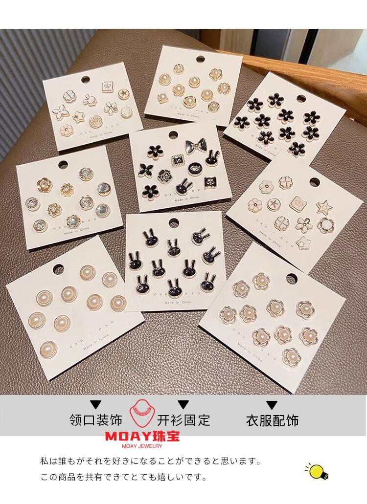 Fat Donglai's same style neckline anti-exposure brooch button hidden buckle, no sewing artifact, invisible female pin to fix the breast of clothes, five-petal flower (pack of 10)