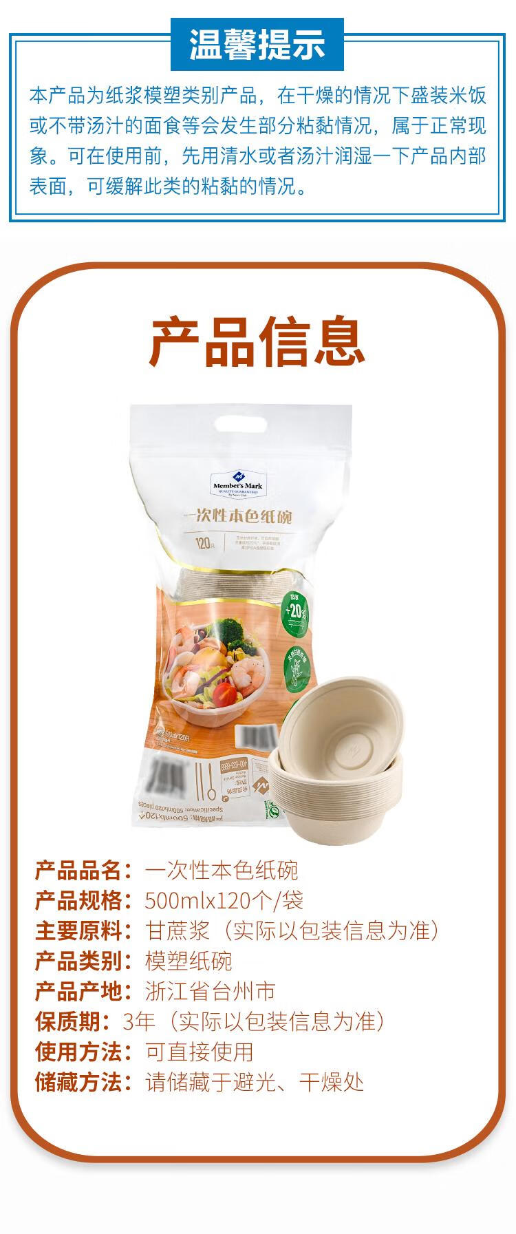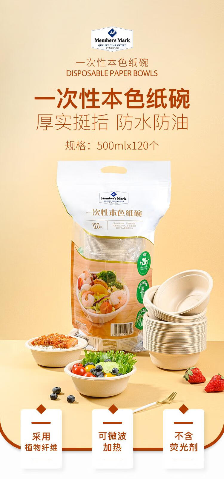 Member s Mark disposable natural paper bowl 500ml*120 pieces/bag 120 pieces/set