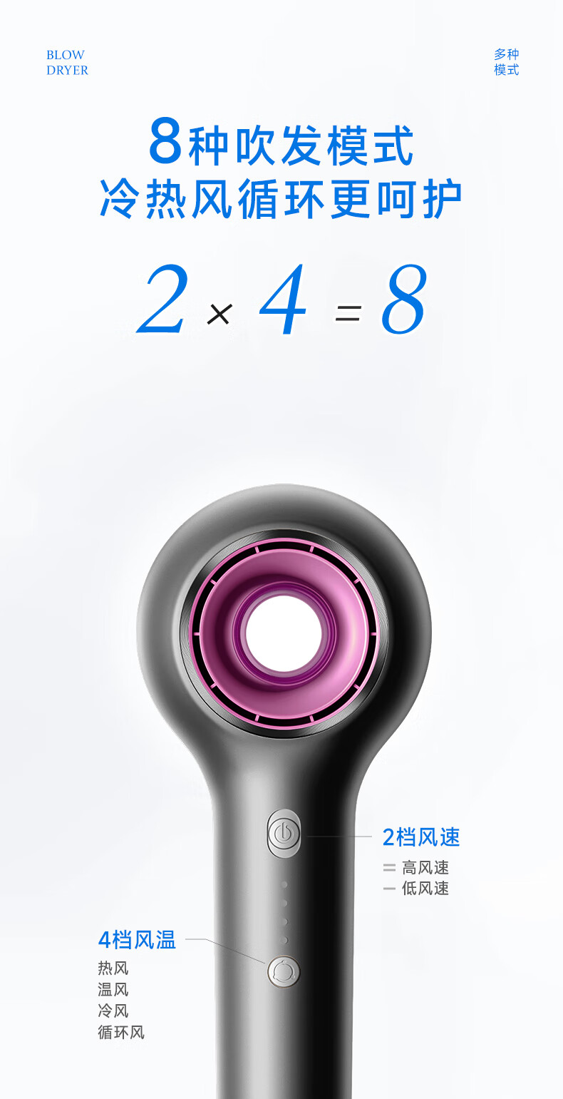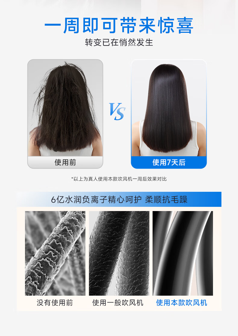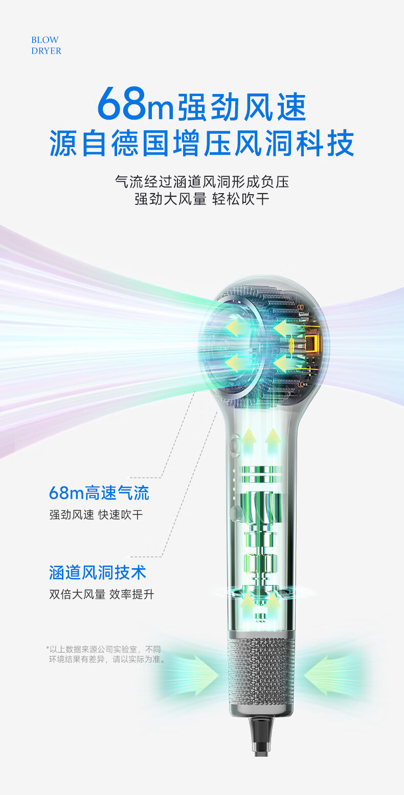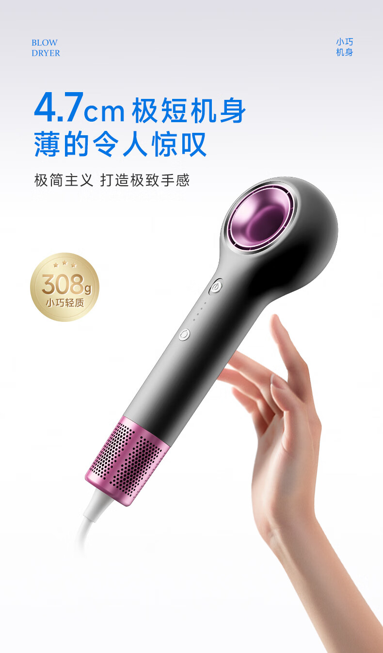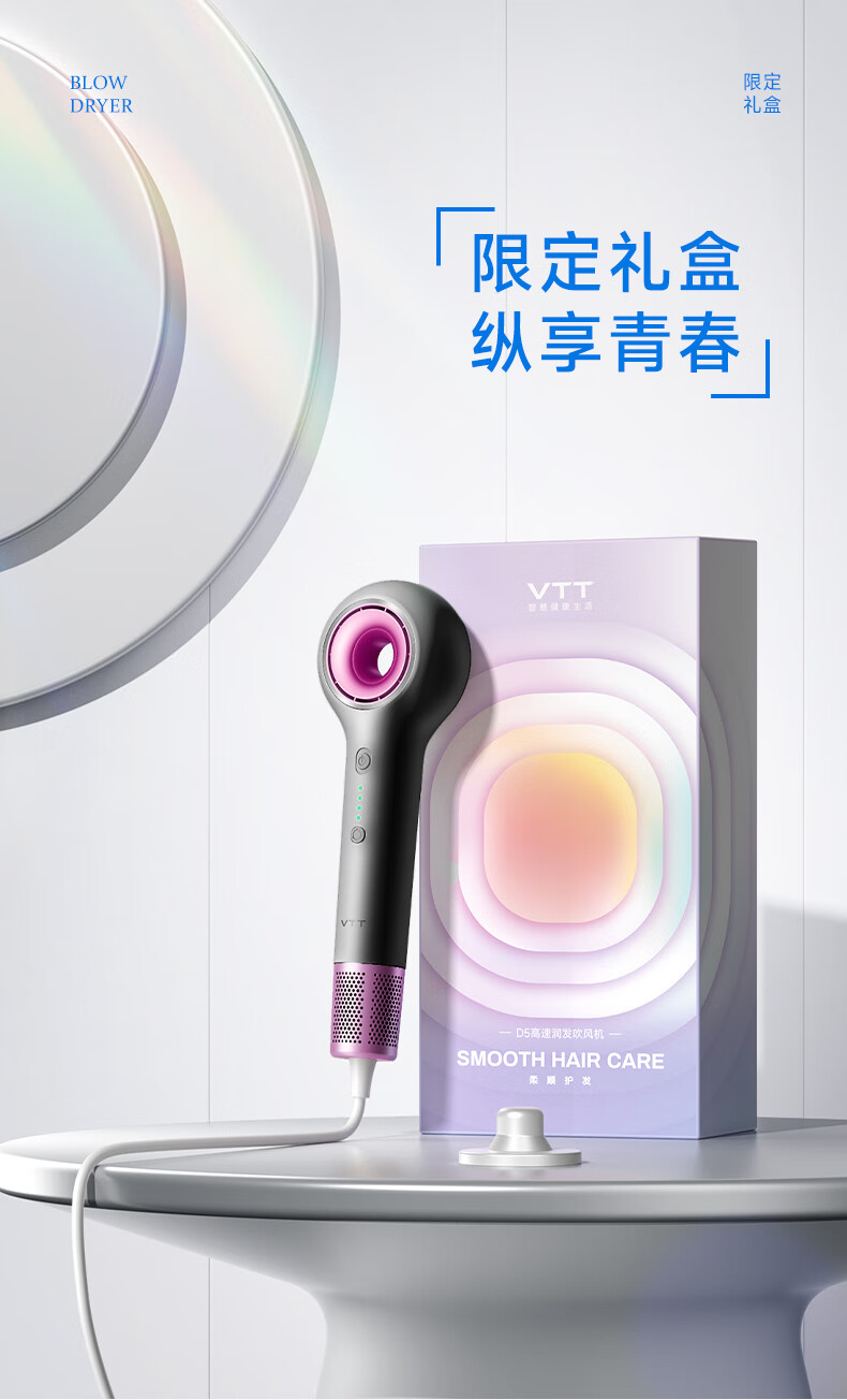 VTT Germany high-speed hair dryer household mute negative ions high power does not hurt the power generation hair dryer students hair drying quick dry leafless hair dryer girlfriend birthday gift Diamond White Pro Mini