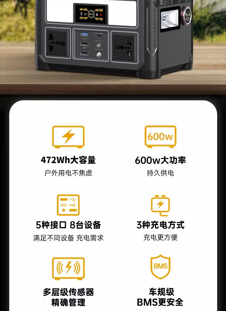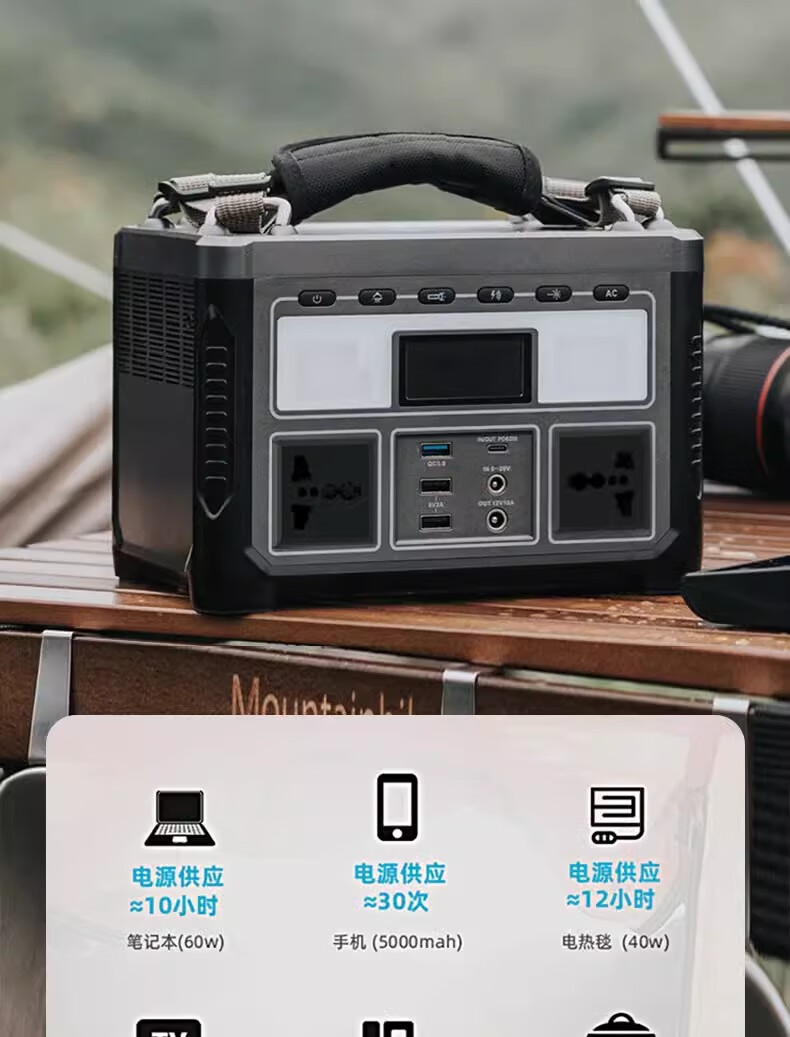 Biejing outdoor power supply 220V college student dormitory game notebook ups power supply emergency backup power supply energy storage small power station power reduction with socket charge and discharge technical secondary school battery 600W 360Wh/0.36 kWh mobile office model