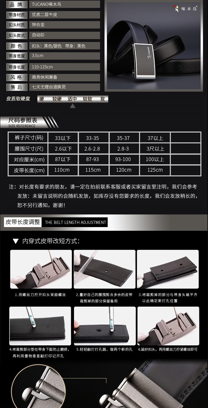 Woodpecker (TUCANO) new model automatic buckle belt men's leather belt business casual cowhide trouser belt inner wear style 1