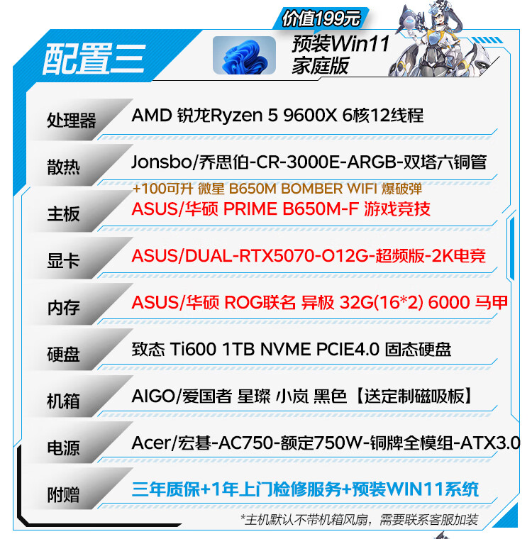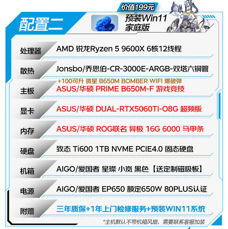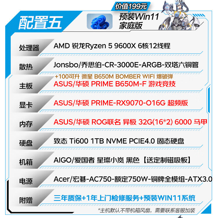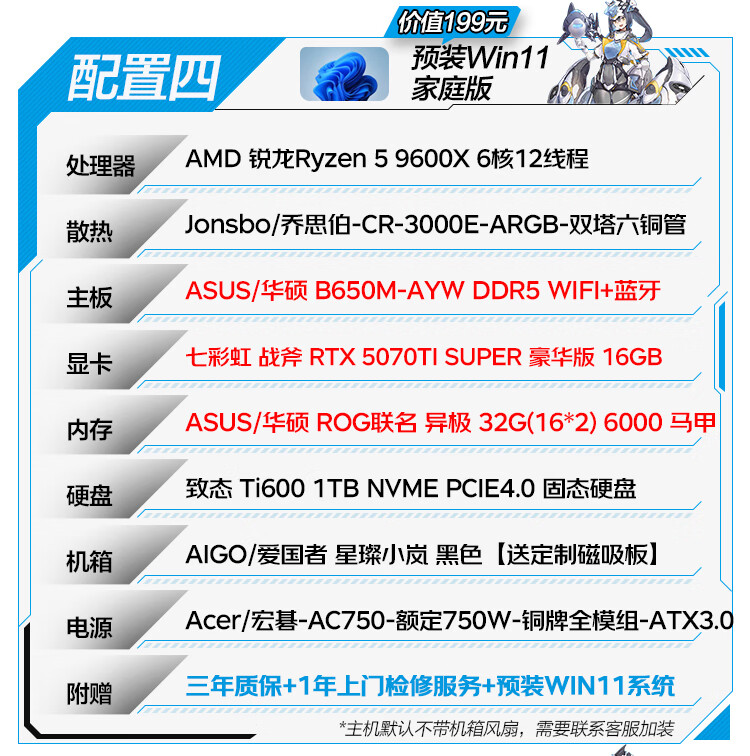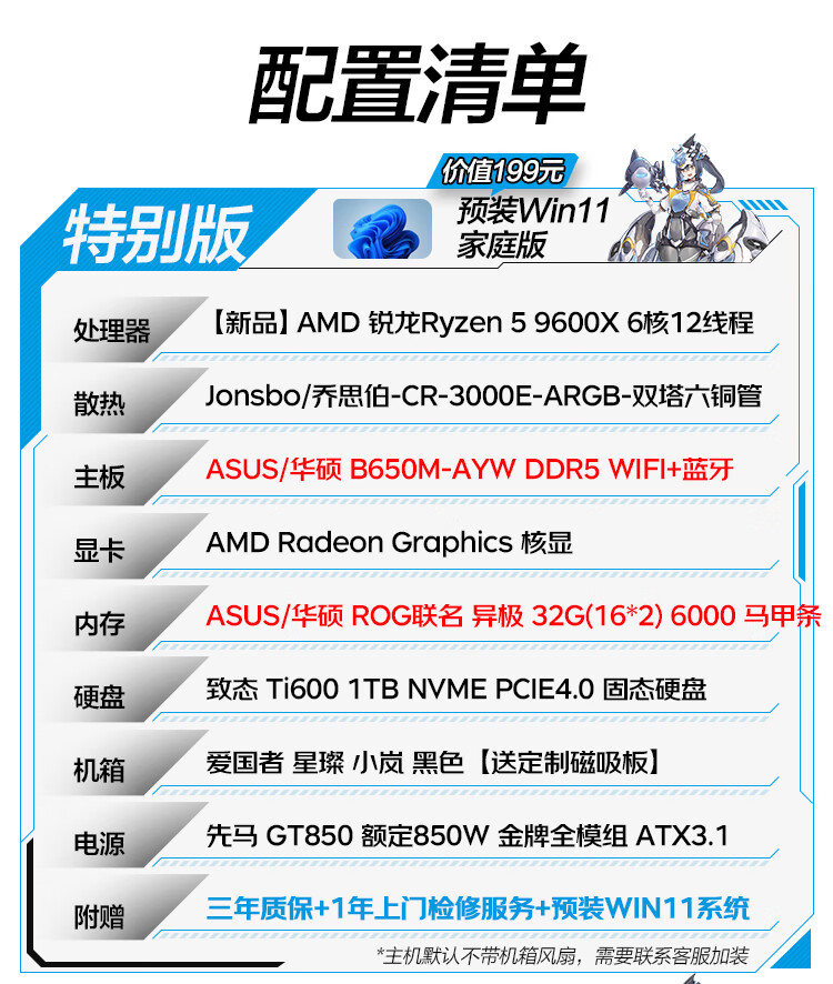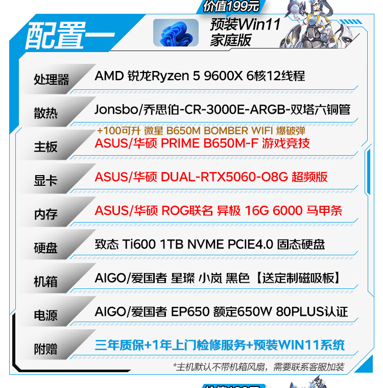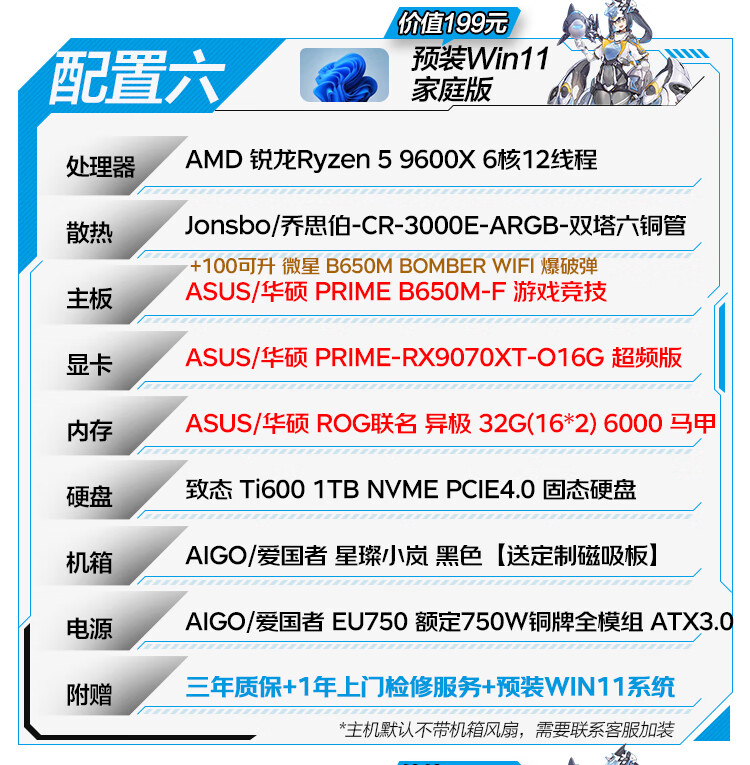 ASUS family bucket R5 9600X host RTX5060TI host ROG Helios host water-cooled game live broadcast 4K rendering modeling assembly computer game console with one R5 9600X+RTX5060