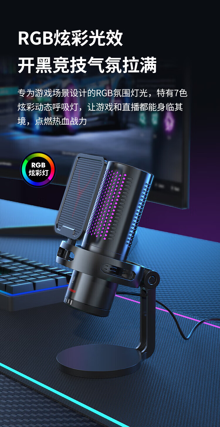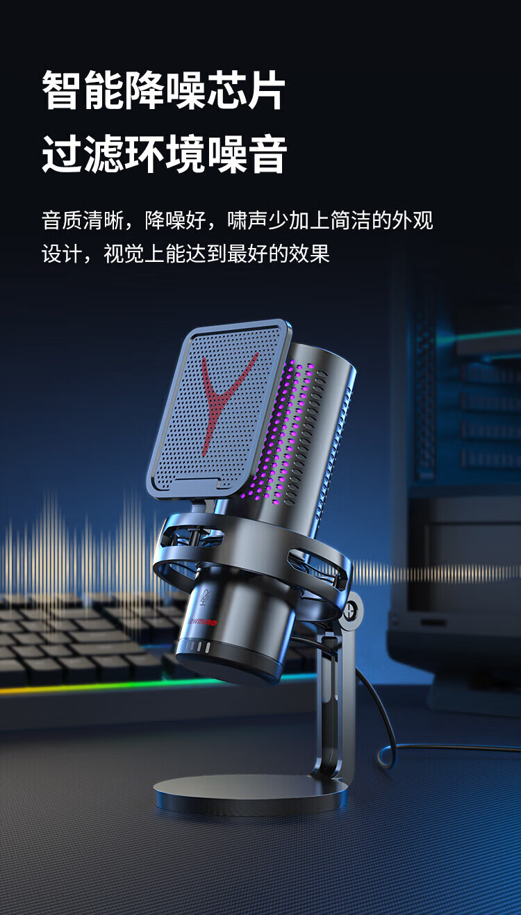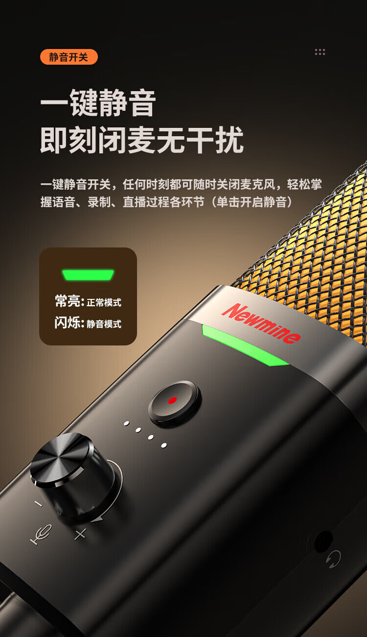 Newmine computer microphone desktop condenser microphone desktop notebook USB game voice live broadcast karaoke video conference dubbing suitable for e-sports professional collection noise reduction external microphone ZM09E e-sports model one-click to turn off the microphone | plug and play
