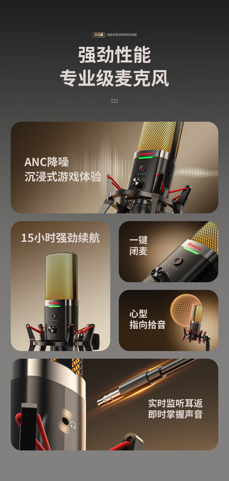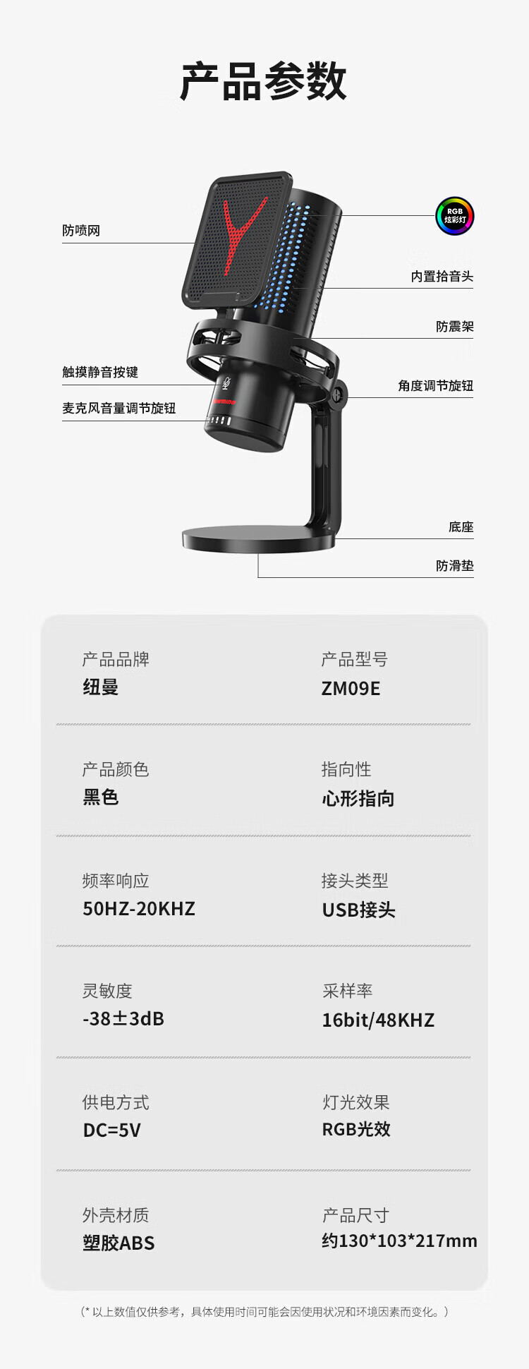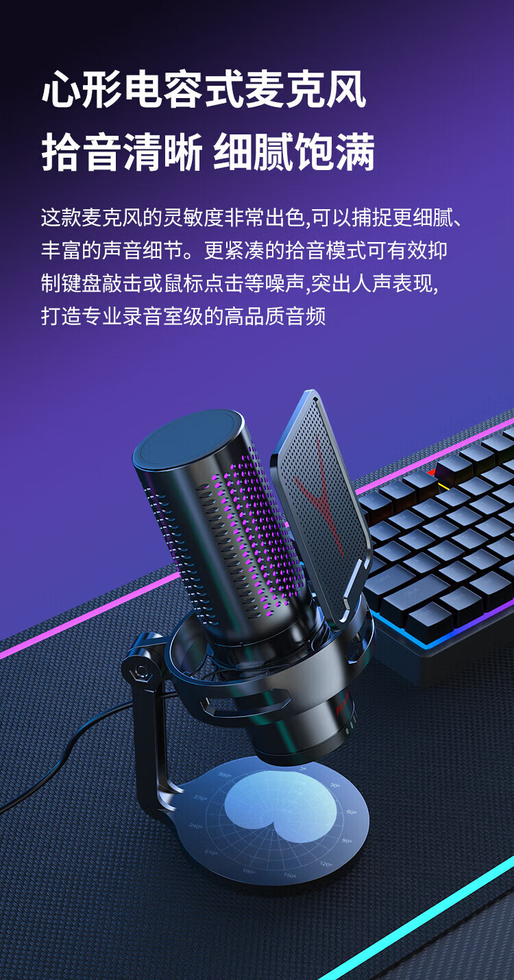 Newmine computer microphone desktop condenser microphone desktop notebook USB game voice live broadcast karaoke video conference dubbing suitable for e-sports professional collection noise reduction external microphone ZM09E e-sports model one-click to turn off the microphone | plug and play
