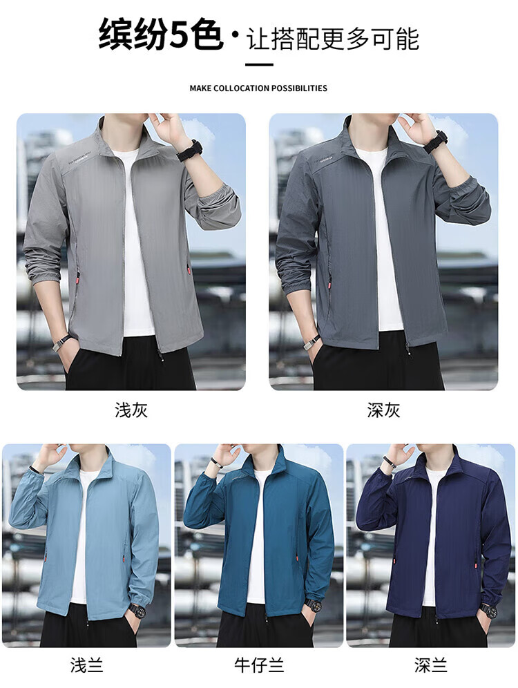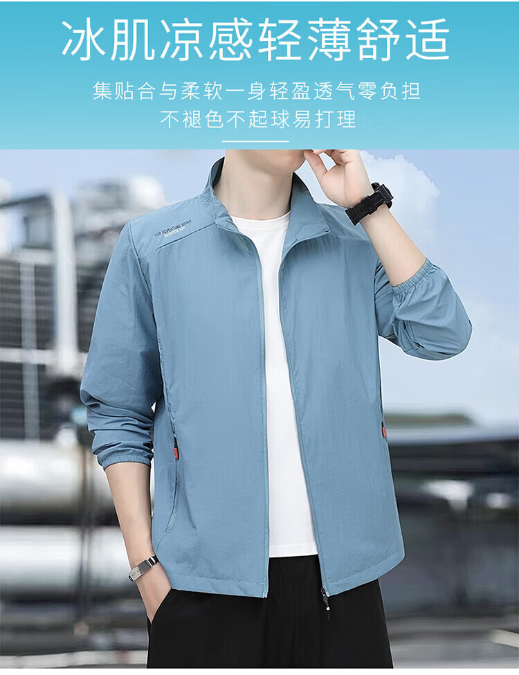 ROMON summer sun protection clothing men's thin ice silk quick-drying breathable windbreaker loose large size stand collar fishing sun protection clothing dark gray 5XL recommended 185-200Jin Jin equals 0.5 kg