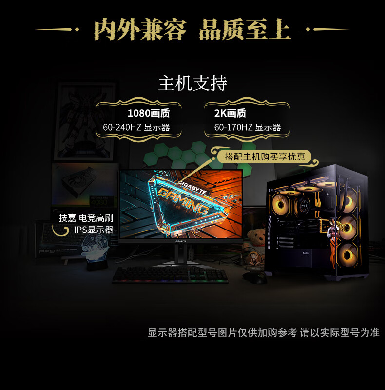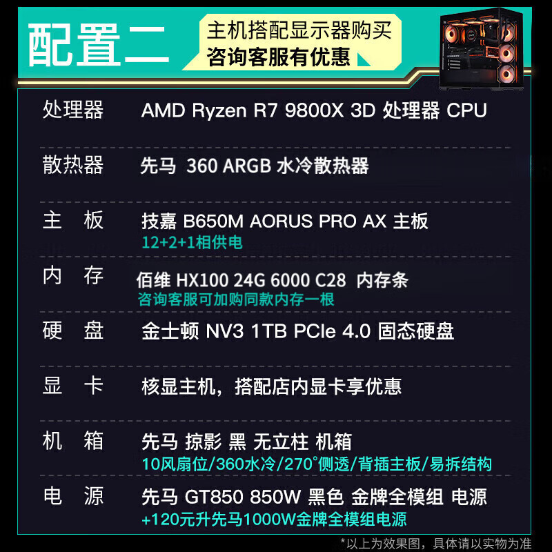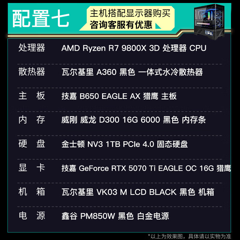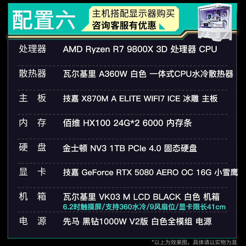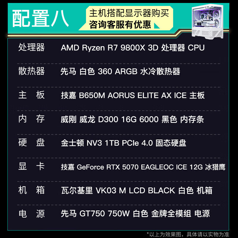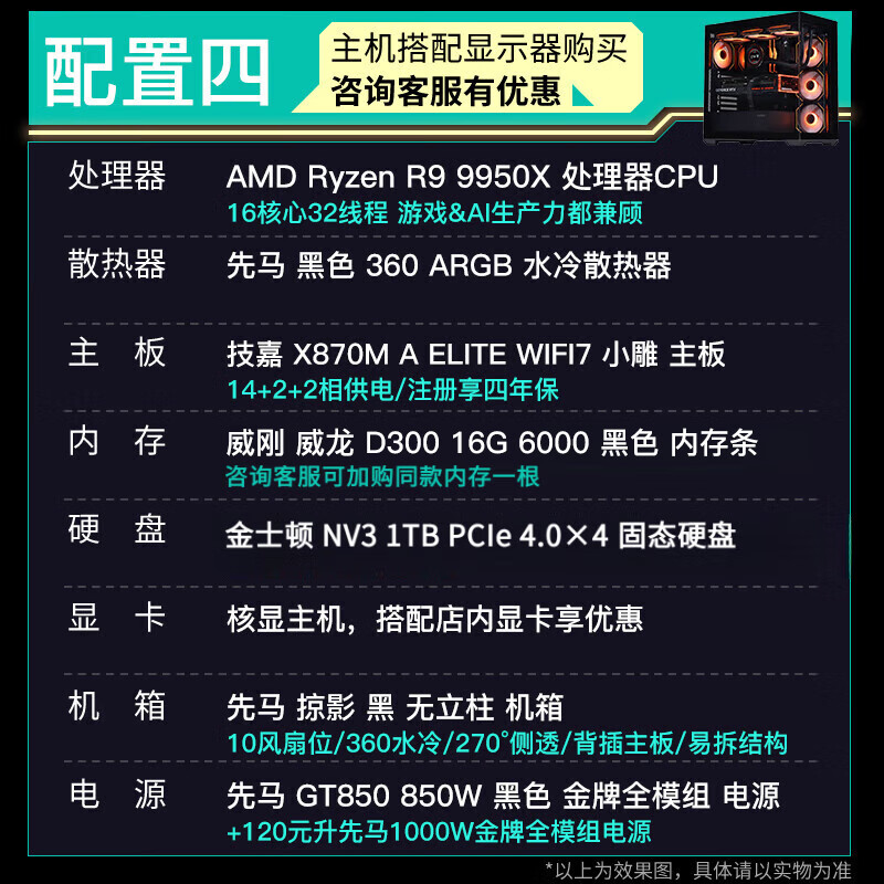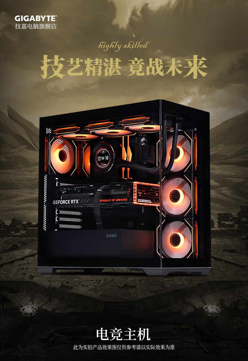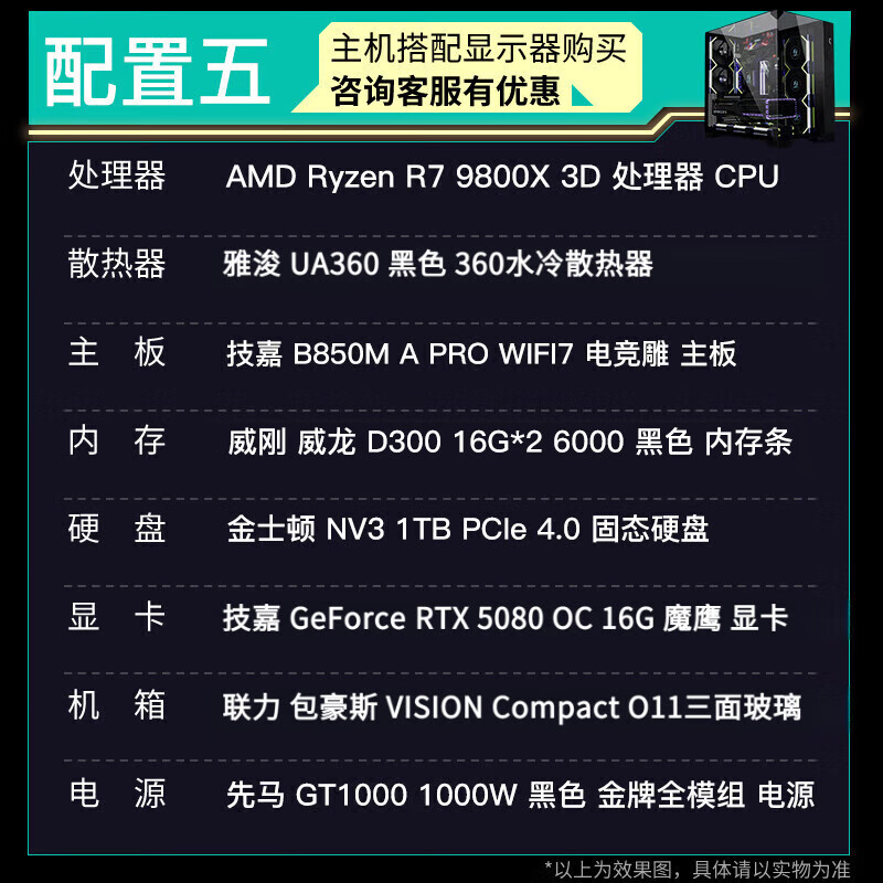 GIGABYTE 5080 host AMD core display 9800X3D/9900X/9950X assembled computer e-sports game machine black myth rendering design desktop computer with an R9 9900X core display host