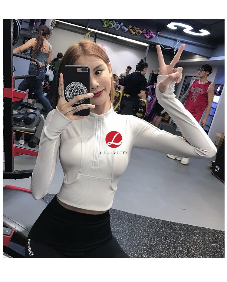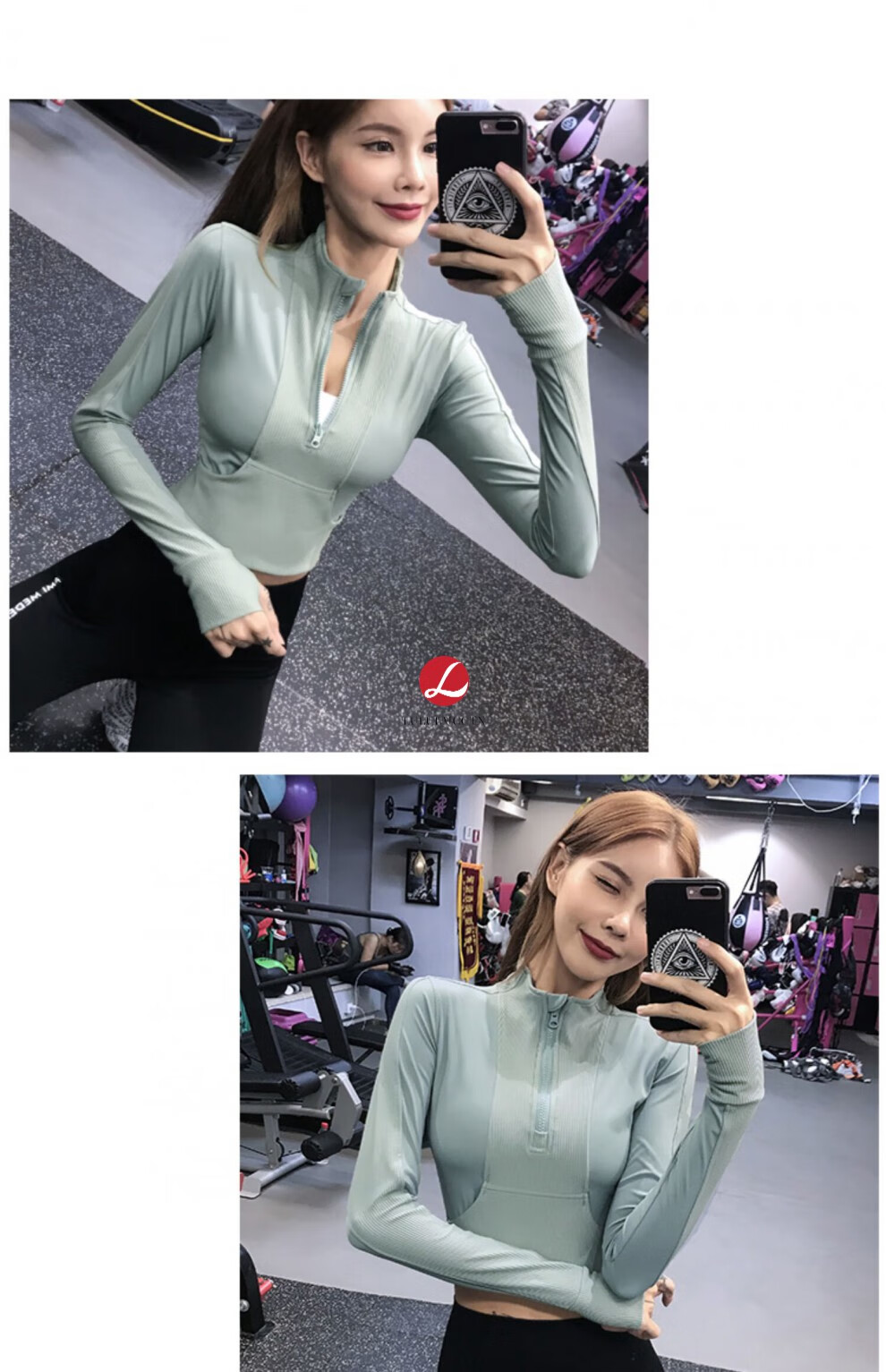 LULULMCCTN Yoga Wear Women's Long Sleeve Half-Zip Running Fitness Wear Top Pilates Professional Training Sports Jacket Light Green (Ready Stock) M