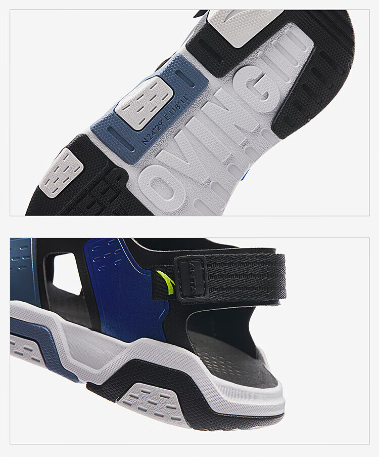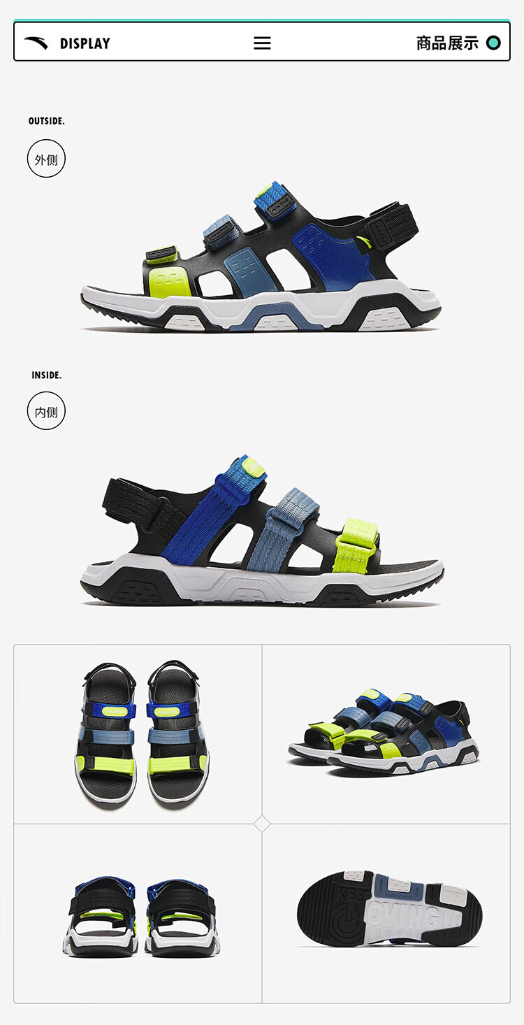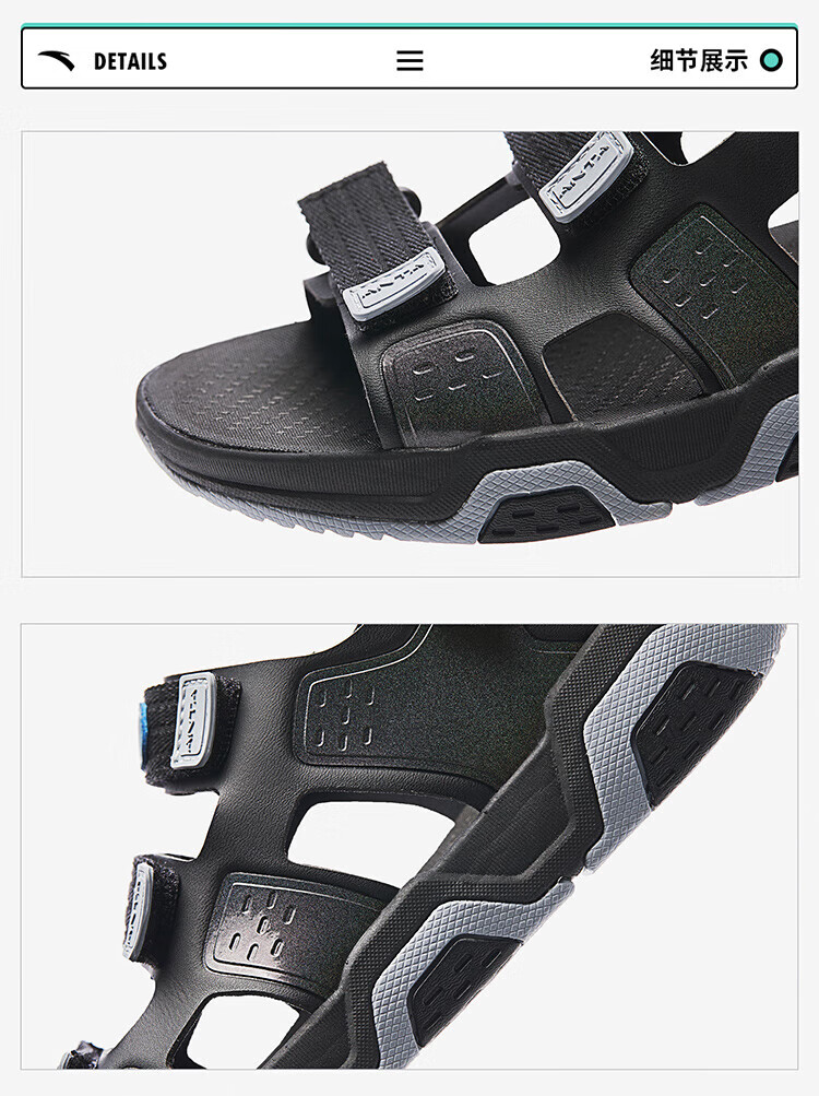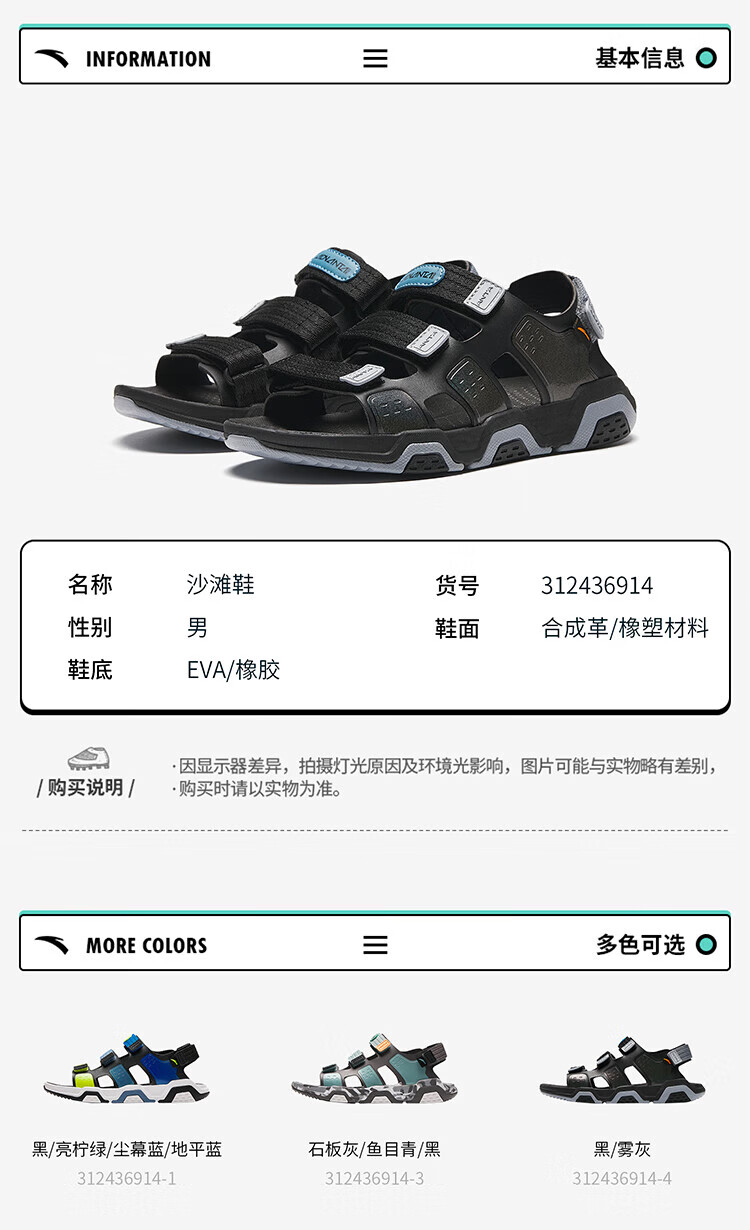 ANTA Children's Sandals Men's Beach Shoes 2024 Summer New Breathable and Comfortable Outdoor Sports Sandals Slate Gray/Fish Eye Blue/Black-3 33