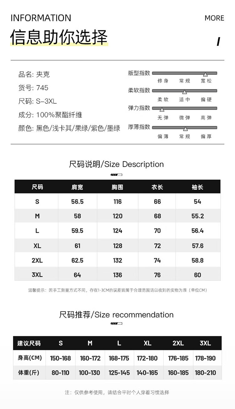 China (cm) 165 / 88-90 170 / 96-98 175 / 108-110 180 / 118-122 185 / 126-130