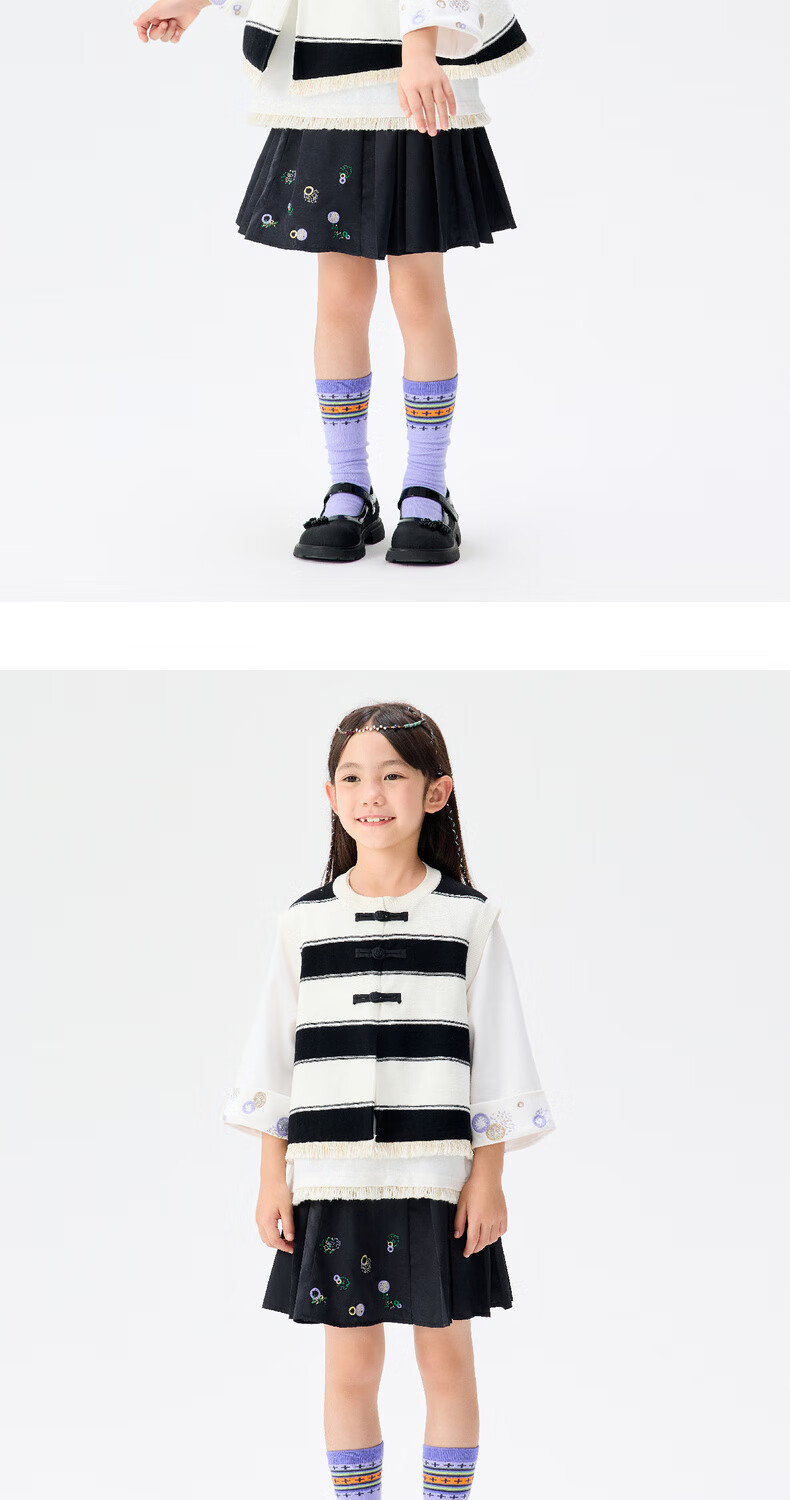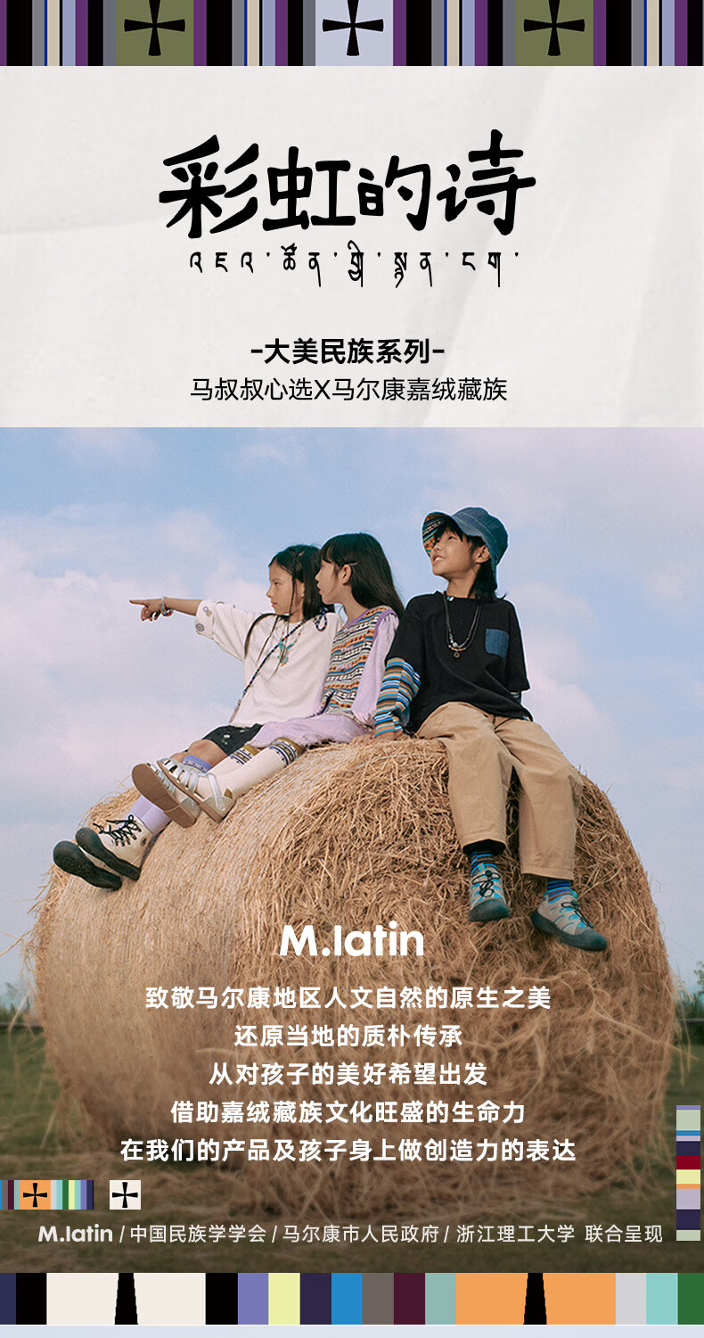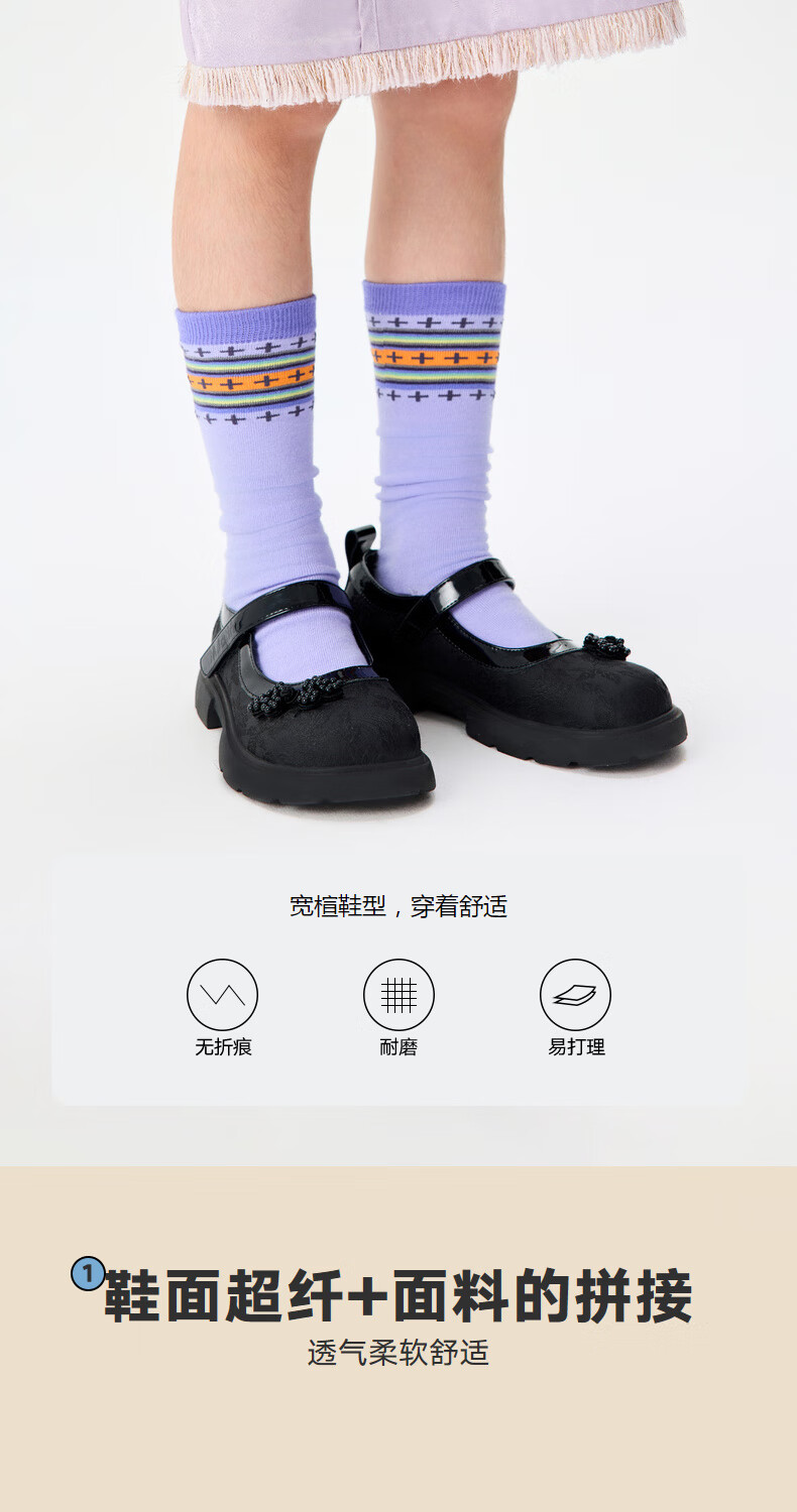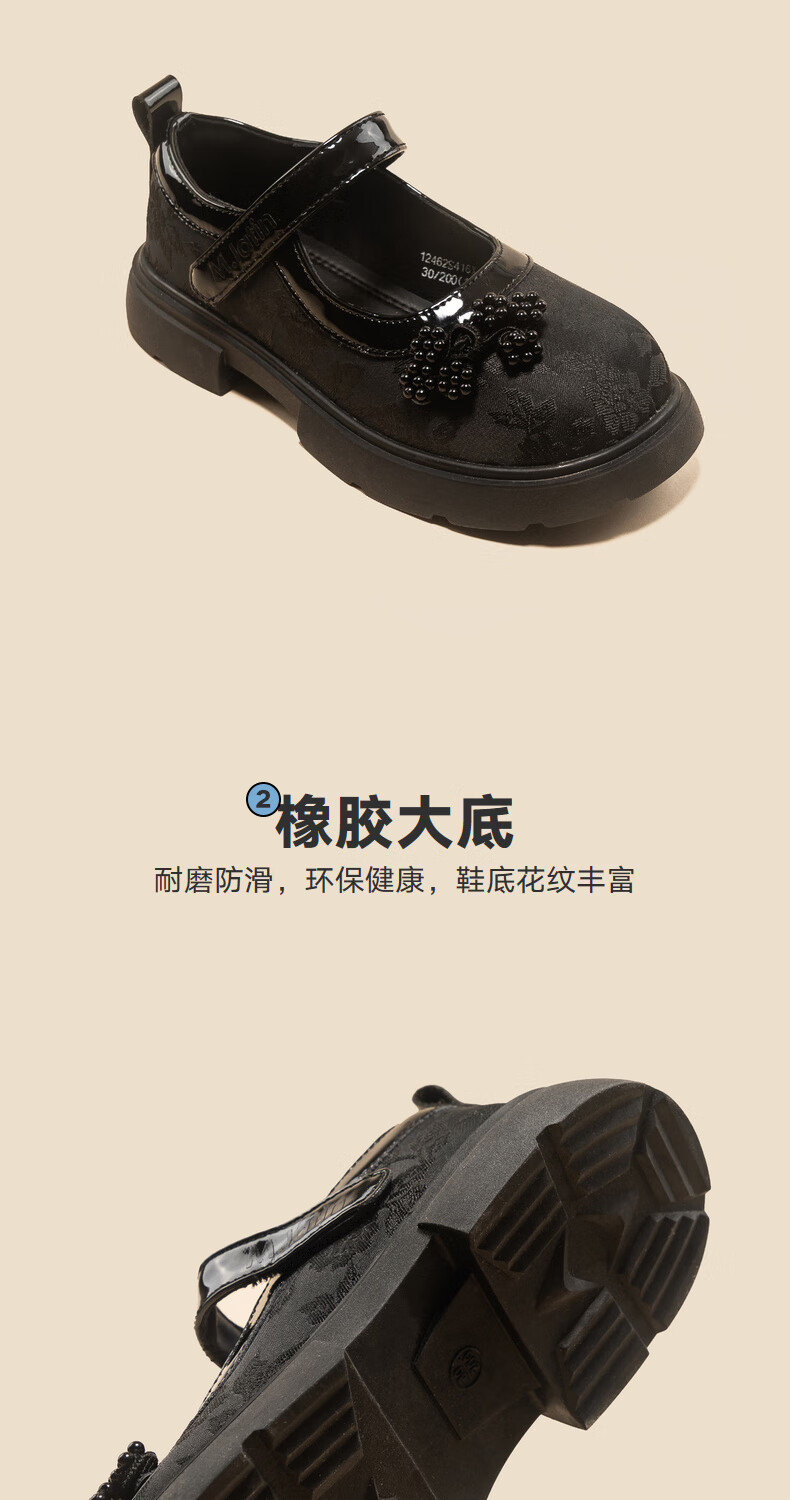 M.Latin/Rainbow's Poetry Series Maratin Children's Clothing Shoes Spring and Autumn New Style Girls' Dark Jacquard Pattern Small Leather Shoes Black Size 28