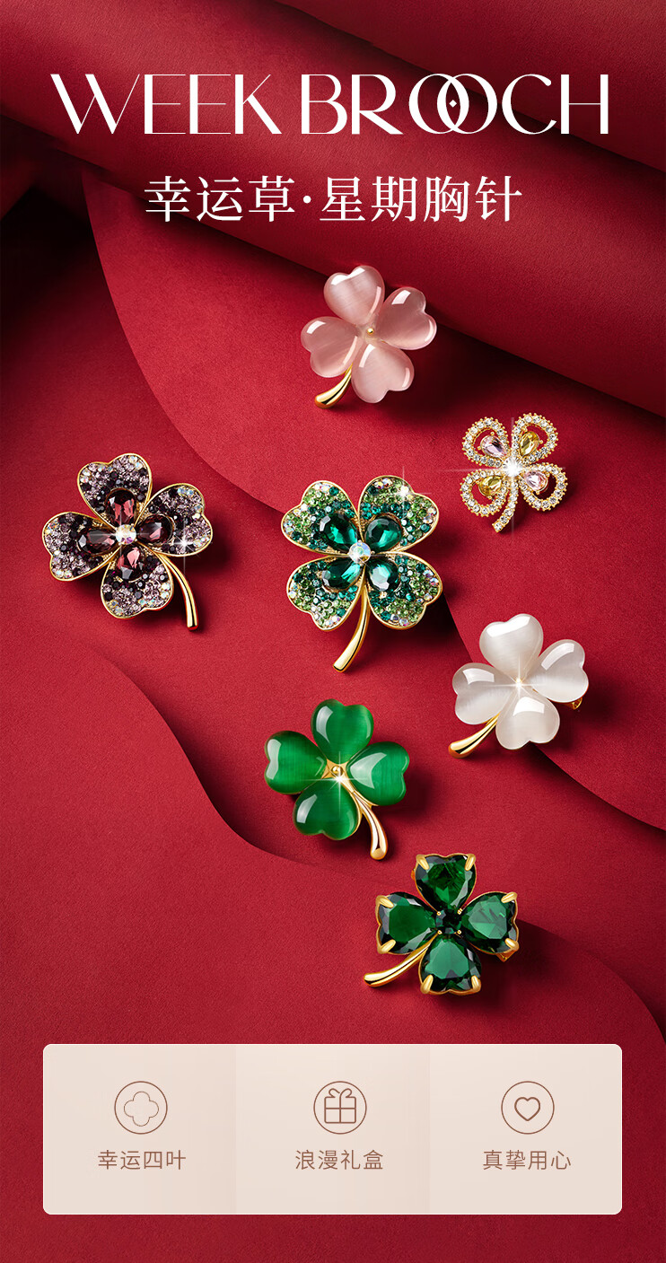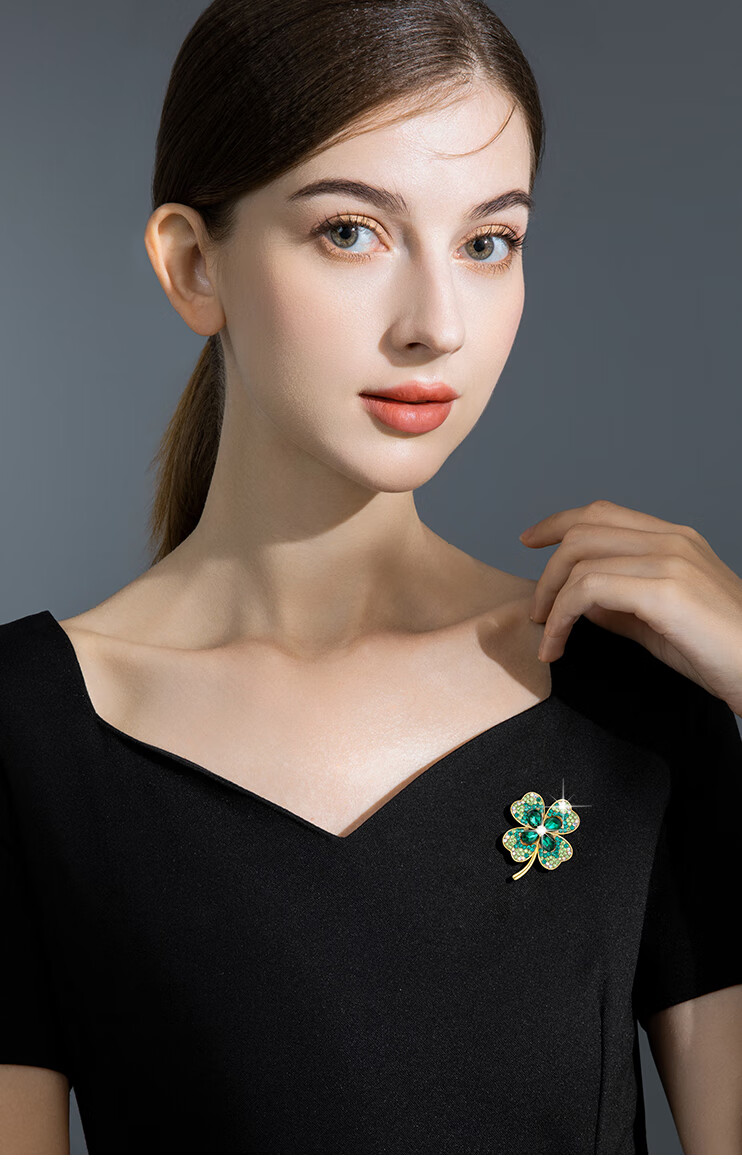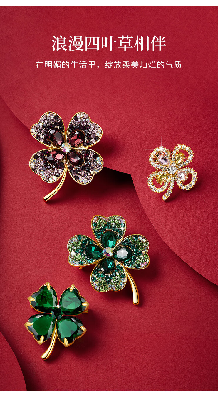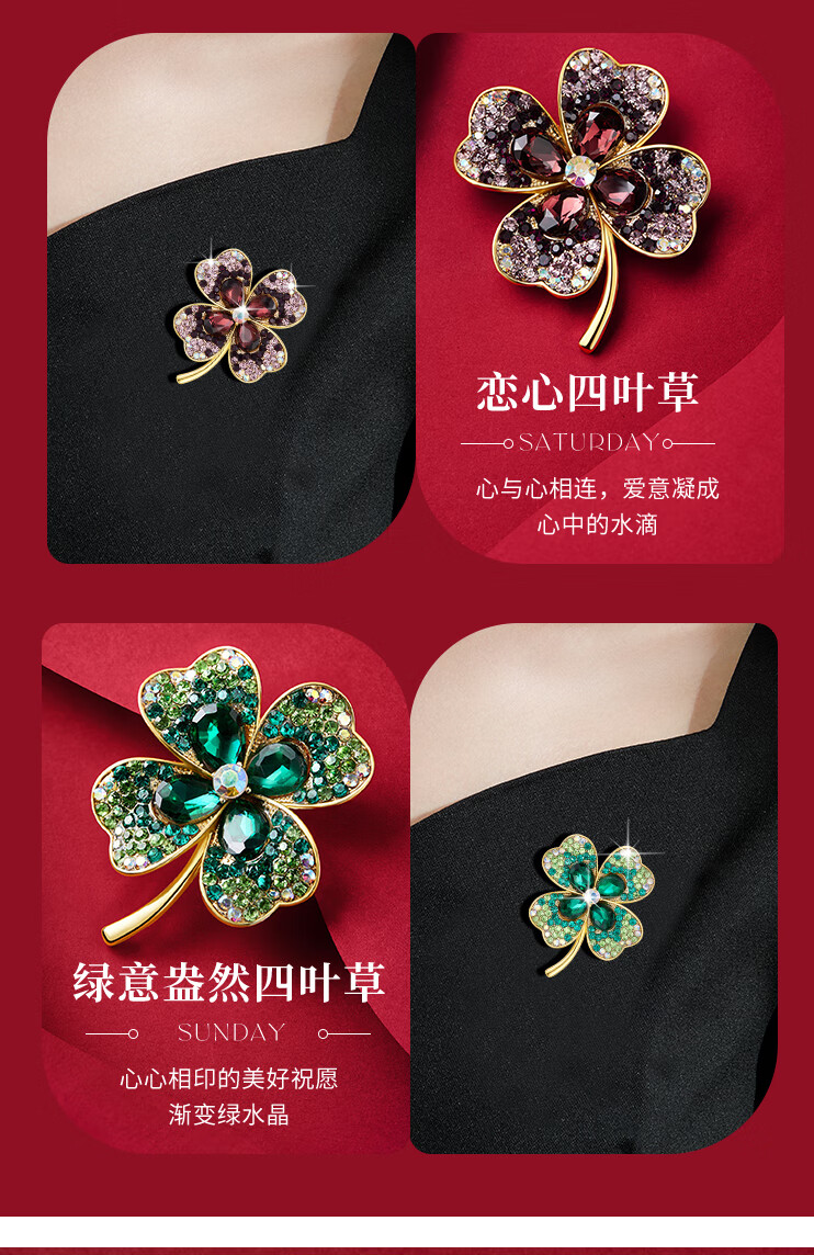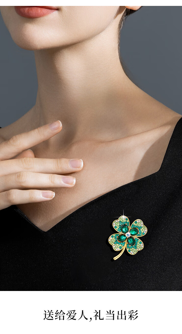 Helena (HR) light luxury four-leaf clover women's brooch fashionable high-end jewelry birthday gift for mother four-leaf clover brooch set