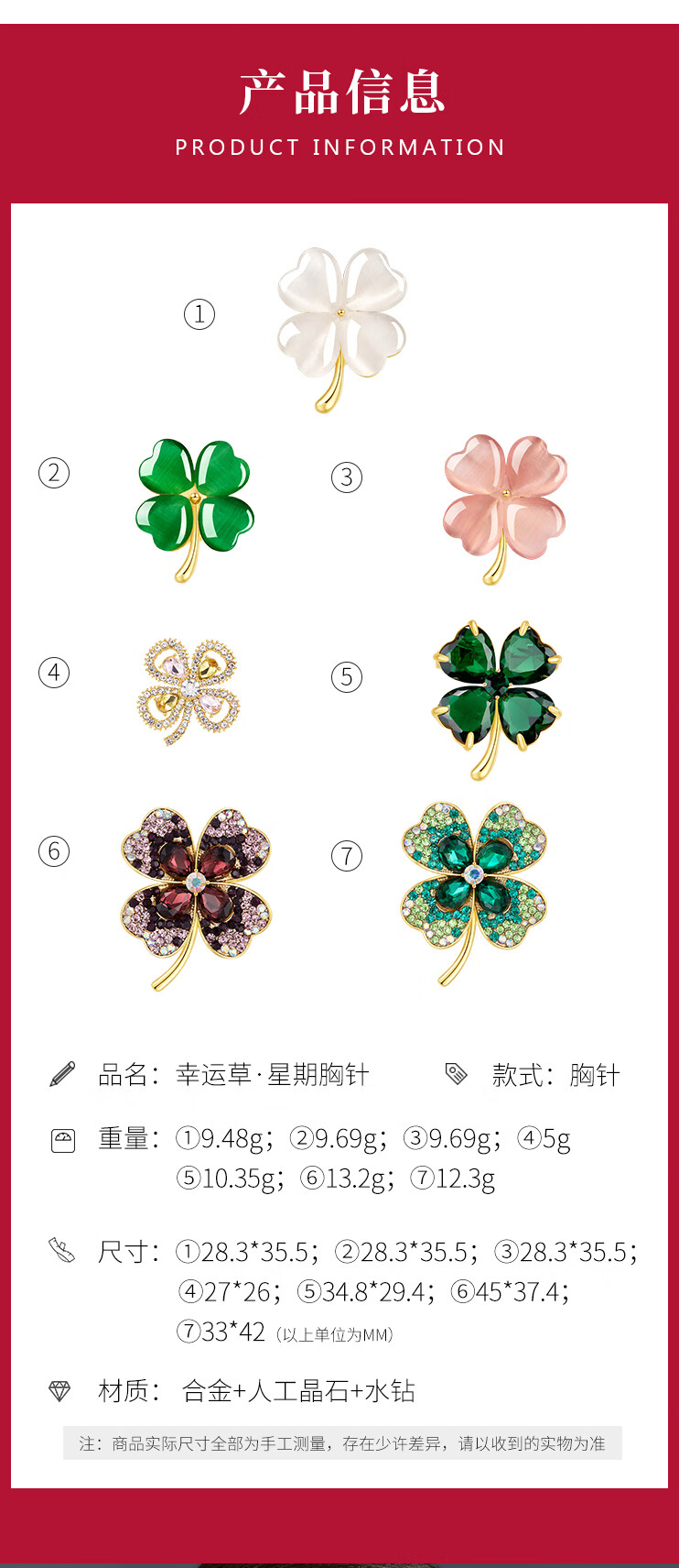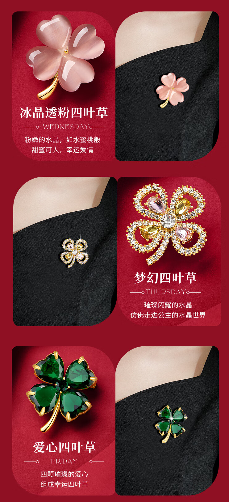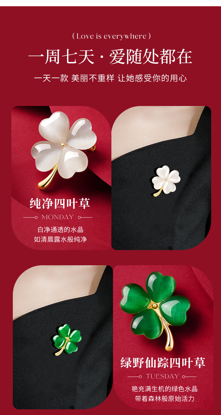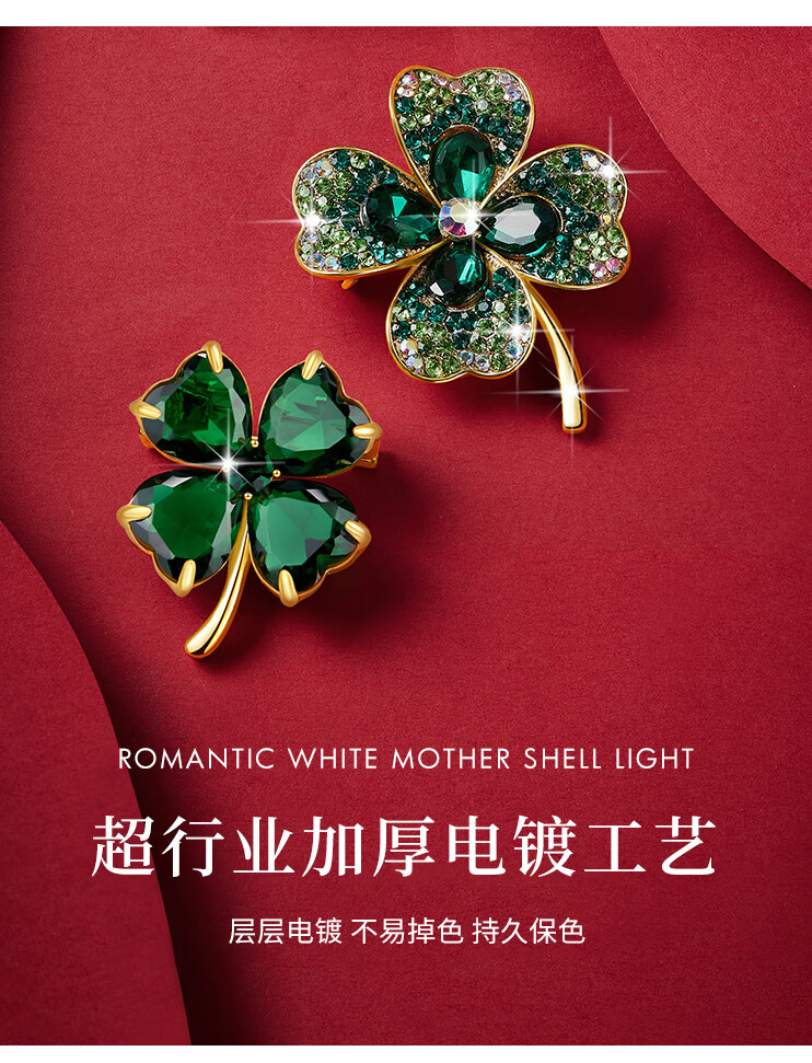 Helena (HR) light luxury four-leaf clover women's brooch fashionable high-end jewelry birthday gift for mother four-leaf clover brooch set